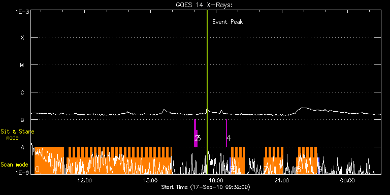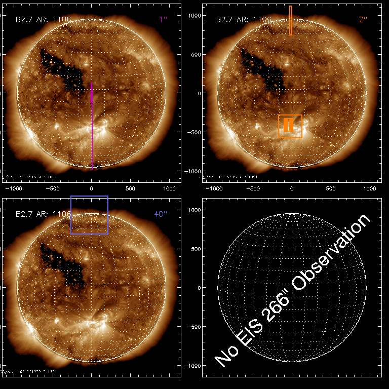 EIS Observation timeline overlay to GOES-Xray curve Code 1" 2" 40" 266" EIS Observations list for this event: STUDY ACRONYM ID DATE OBSERVED DESCRIPTION NOAA# TARGET 0 VHH_SlowARbig_1h23 | 19230 | 2010/09/17 09:43:40 | HOP126 | 1106 | Active Region TIMELINE ID DATE OBSERVED FITS FILE XCEN (+W/-E) YCEN (+N/-S) DUR ----------------------------------------------------------------------------------------------------------------- 19230 | 2010/09/17 09:43:40.000 | eis_l0_20100917_094340.fits.gz | -21.49 | -429.61 | 1h19m10s 1 HH_Flare_180x160_v2 | 19240 | 2010/09/17 11:10:13 | EIS Core Study | 1106 | Flare TIMELINE ID DATE OBSERVED FITS FILE XCEN (+W/-E) YCEN (+N/-S) DUR ----------------------------------------------------------------------------------------------------------------- 19240 | 2010/09/17 11:10:13.000 | eis_l0_20100917_111013.fits.gz | -62.97 | -409.84 | 5m47s 19240 | 2010/09/17 11:16:02.000 | eis_l0_20100917_111602.fits.gz | -62.19 | -409.77 | 5m47s 19240 | 2010/09/17 11:21:52.000 | eis_l0_20100917_112152.fits.gz | -61.34 | -409.92 | 5m46s 19240 | 2010/09/17 11:27:41.000 | eis_l0_20100917_112741.fits.gz | -60.49 | -409.77 | 5m46s 19240 | 2010/09/17 11:33:30.000 | eis_l0_20100917_113330.fits.gz | -59.64 | -409.92 | 5m46s 19240 | 2010/09/17 11:39:19.000 | eis_l0_20100917_113919.fits.gz | -58.79 | -409.84 | 5m47s 19240 | 2010/09/17 11:45:08.000 | eis_l0_20100917_114508.fits.gz | -58.02 | -409.84 | 5m47s 19240 | 2010/09/17 11:50:58.000 | eis_l0_20100917_115058.fits.gz | -57.09 | -410.00 | 5m46s 19240 | 2010/09/17 11:56:47.000 | eis_l0_20100917_115647.fits.gz | -56.32 | -410.00 | 5m47s 19240 | 2010/09/17 12:02:37.000 | eis_l0_20100917_120237.fits.gz | -55.55 | -410.07 | 5m47s 19240 | 2010/09/17 12:08:26.000 | eis_l0_20100917_120826.fits.gz | -54.70 | -409.84 | 5m47s 19240 | 2010/09/17 12:14:16.000 | eis_l0_20100917_121416.fits.gz | -53.93 | -409.84 | 5m47s 19240 | 2010/09/17 12:20:05.000 | eis_l0_20100917_122005.fits.gz | -53.08 | -409.84 | 5m47s 19240 | 2010/09/17 12:25:55.000 | eis_l0_20100917_122555.fits.gz | -52.15 | -410.07 | 5m47s 19240 | 2010/09/17 12:31:45.000 | eis_l0_20100917_123145.fits.gz | -51.30 | -410.07 | 5m46s 19240 | 2010/09/17 12:37:34.000 | eis_l0_20100917_123734.fits.gz | -50.53 | -409.92 | 5m46s 19240 | 2010/09/17 12:43:23.000 | eis_l0_20100917_124323.fits.gz | -49.68 | -409.92 | 5m46s 19240 | 2010/09/17 12:49:12.000 | eis_l0_20100917_124912.fits.gz | -48.83 | -410.00 | 5m46s 19240 | 2010/09/17 12:55:01.000 | eis_l0_20100917_125501.fits.gz | -48.06 | -409.92 | 5m46s 19240 | 2010/09/17 13:00:50.000 | eis_l0_20100917_130050.fits.gz | -47.28 | -409.84 | 5m46s 19240 | 2010/09/17 13:06:39.000 | eis_l0_20100917_130639.fits.gz | -46.28 | -409.92 | 5m47s 19240 | 2010/09/17 13:12:29.000 | eis_l0_20100917_131229.fits.gz | -45.51 | -409.84 | 5m46s 19240 | 2010/09/17 13:18:18.000 | eis_l0_20100917_131818.fits.gz | -44.58 | -409.92 | 5m47s 19240 | 2010/09/17 13:24:08.000 | eis_l0_20100917_132408.fits.gz | -43.81 | -410.00 | 5m47s 19240 | 2010/09/17 13:29:58.000 | eis_l0_20100917_132958.fits.gz | -42.96 | -410.07 | 5m46s 19240 | 2010/09/17 13:35:47.000 | eis_l0_20100917_133547.fits.gz | -42.26 | -410.00 | 5m47s 19240 | 2010/09/17 13:41:36.000 | eis_l0_20100917_134136.fits.gz | -41.34 | -410.00 | 5m47s 19240 | 2010/09/17 13:47:26.000 | eis_l0_20100917_134726.fits.gz | -40.56 | -410.00 | 5m46s 19240 | 2010/09/17 13:53:15.000 | eis_l0_20100917_135315.fits.gz | -39.71 | -410.07 | 5m46s 19240 | 2010/09/17 13:59:03.000 | eis_l0_20100917_135903.fits.gz | -38.79 | -409.92 | 5m47s 19240 | 2010/09/17 14:04:52.000 | eis_l0_20100917_140452.fits.gz | -38.01 | -410.00 | 5m47s 19240 | 2010/09/17 14:10:41.000 | eis_l0_20100917_141041.fits.gz | -37.09 | -410.07 | 5m47s 19240 | 2010/09/17 14:16:31.000 | eis_l0_20100917_141631.fits.gz | -36.31 | -409.92 | 5m46s 19240 | 2010/09/17 14:22:20.000 | eis_l0_20100917_142220.fits.gz | -35.39 | -410.00 | 5m47s 19240 | 2010/09/17 14:28:10.000 | eis_l0_20100917_142810.fits.gz | -34.62 | -410.07 | 5m47s 19240 | 2010/09/17 14:34:00.000 | eis_l0_20100917_143400.fits.gz | -33.92 | -410.00 | 5m46s 19240 | 2010/09/17 14:39:49.000 | eis_l0_20100917_143949.fits.gz | -32.99 | -409.92 | 5m47s 19240 | 2010/09/17 14:45:39.000 | eis_l0_20100917_144539.fits.gz | -32.14 | -409.92 | 5m47s 19240 | 2010/09/17 14:51:29.000 | eis_l0_20100917_145129.fits.gz | -31.22 | -409.92 | 5m46s 19240 | 2010/09/17 14:57:18.000 | eis_l0_20100917_145718.fits.gz | -30.44 | -409.92 | 5m47s 19240 | 2010/09/17 15:03:08.000 | eis_l0_20100917_150308.fits.gz | -29.67 | -410.00 | 5m46s 19240 | 2010/09/17 15:08:57.000 | eis_l0_20100917_150857.fits.gz | -28.82 | -410.07 | 5m46s 19240 | 2010/09/17 15:14:46.000 | eis_l0_20100917_151446.fits.gz | -27.97 | -410.00 | 5m46s 19240 | 2010/09/17 15:20:35.000 | eis_l0_20100917_152035.fits.gz | -27.28 | -410.00 | 5m46s 19240 | 2010/09/17 15:26:23.000 | eis_l0_20100917_152623.fits.gz | -26.27 | -410.07 | 5m47s 19240 | 2010/09/17 15:32:13.000 | eis_l0_20100917_153213.fits.gz | -25.50 | -409.92 | 5m46s 19240 | 2010/09/17 15:38:02.000 | eis_l0_20100917_153802.fits.gz | -24.65 | -410.00 | 5m47s 19240 | 2010/09/17 15:43:51.000 | eis_l0_20100917_154351.fits.gz | -23.80 | -410.07 | 5m47s 19240 | 2010/09/17 15:49:41.000 | eis_l0_20100917_154941.fits.gz | -22.95 | -409.92 | 5m46s 19240 | 2010/09/17 15:55:30.000 | eis_l0_20100917_155530.fits.gz | -22.10 | -410.07 | 2m23s 2 regcal071 | 19231 | 2010/09/17 17:00:11 | Dark exposures, CCD bottom rows (100s | | Engineering TIMELINE ID DATE OBSERVED FITS FILE XCEN (+W/-E) YCEN (+N/-S) DUR ----------------------------------------------------------------------------------------------------------------- 19231 | 2010/09/17 17:00:11.000 | eis_l0_20100917_170011.fits.gz | 11.58 | -735.15 | 3m22s 3 regcal072 | 19232 | 2010/09/17 17:05:11 | Dark exposures, top CCD rows (100s exp | | Engineering TIMELINE ID DATE OBSERVED FITS FILE XCEN (+W/-E) YCEN (+N/-S) DUR ------------------------------------------------------------------------------