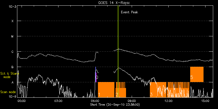 EIS Observation timeline overlay to GOES-Xray curve Code 1" 2" 40" 266" EIS Observations list for this event: STUDY ACRONYM ID DATE OBSERVED DESCRIPTION NOAA# TARGET 0 SYNOP005_A | 19258 | 2010/09/21 06:02:32 | Synop 005 | | Quiet Sun TIMELINE ID DATE OBSERVED FITS FILE XCEN (+W/-E) YCEN (+N/-S) DUR ----------------------------------------------------------------------------------------------------------------- 19258 | 2010/09/21 06:02:32.000 | eis_l0_20100921_060232.fits.gz | -19.60 | -0.35 | 1m31s 19258 | 2010/09/21 06:04:14.000 | eis_l0_20100921_060414.fits.gz | -0.10 | -0.58 | 1m30s 1 VHH_SlowARbig_1h23 | 19259 | 2010/09/21 06:14:26 | Active region monitor | 1106 | Active Region TIMELINE ID DATE OBSERVED FITS FILE XCEN (+W/-E) YCEN (+N/-S) DUR ----------------------------------------------------------------------------------------------------------------- 19259 | 2010/09/21 06:14:26.000 | eis_l0_20100921_061426.fits.gz | 799.84 | -377.84 | 1h19m10s 2 VHH_HI_BRT_SCAN_EXT | 19260 | 2010/09/21 07:40:13 | HOP126 | | Active Region TIMELINE ID DATE OBSERVED FITS FILE XCEN (+W/-E) YCEN (+N/-S) DUR ----------------------------------------------------------------------------------------------------------------- 19260 | 2010/09/21 07:40:13.000 | eis_l0_20100921_074013.fits.gz | 757.82 | -376.68 | 3m5s 19260 | 2010/09/21 07:43:48.000 | eis_l0_20100921_074348.fits.gz | 758.05 | -376.53 | 3m32s 19260 | 2010/09/21 07:47:23.000 | eis_l0_20100921_074723.fits.gz | 758.36 | -376.45 | 3m32s 19260 | 2010/09/21 07:50:58.000 | eis_l0_20100921_075058.fits.gz | 758.67 | -376.45 | 3m32s 19260 | 2010/09/21 07:54:33.000 | eis_l0_20100921_075433.fits.gz | 758.90 | -376.30 | 3m32s 19260 | 2010/09/21 07:58:08.000 | eis_l0_20100921_075808.fits.gz | 759.21 | -376.22 | 3m32s 19260 | 2010/09/21 08:01:43.000 | eis_l0_20100921_080143.fits.gz | 759.36 | -376.22 | 3m31s 19260 | 2010/09/21 08:05:17.000 | eis_l0_20100921_080517.fits.gz | 759.75 | -376.30 | 3m32s 19260 | 2010/09/21 08:08:52.000 | eis_l0_20100921_080852.fits.gz | 759.98 | -376.14 | 3m31s 19260 | 2010/09/21 08:12:26.000 | eis_l0_20100921_081226.fits.gz | 760.29 | -375.99 | 3m32s 19260 | 2010/09/21 08:16:01.000 | eis_l0_20100921_081601.fits.gz | 760.52 | -375.99 | 3m32s 19260 | 2010/09/21 08:19:36.000 | eis_l0_20100921_081936.fits.gz | 760.91 | -376.06 | 3m32s 19260 | 2010/09/21 08:23:11.000 | eis_l0_20100921_082311.fits.gz | 761.14 | -375.91 | 3m32s 19260 | 2010/09/21 08:26:46.000 | eis_l0_20100921_082646.fits.gz | 761.29 | -375.91 | 25s 19260 | 2010/09/21 08:27:39.000 | eis_l0_20100921_082739.fits.gz | 761.45 | -375.83 | 2m38s 3 VHH_SlowARbig_1h23 | 19266 | 2010/09/21 10:28:45 | Active region monitor | 1106 | Active Region TIMELINE ID DATE OBSERVED FITS FILE XCEN (+W/-E) YCEN (+N/-S) DUR ----------------------------------------------------------------------------------------------------------------- 19266 | 2010/09/21 10:28:45.000 | eis_l0_20100921_102845.fits.gz | 779.82 | -369.25 | 1h19m9s 4 VHH_HI_BRT_SCAN_EXT | 19267 | 2010/09/21 11:53:14 | HOP126 | | Active Region TIMELINE ID DATE OBSERVED FITS FILE XCEN (+W/-E) YCEN (+N/-S) DUR ----------------------------------------------------------------------------------------------------------------- 19267 | 2010/09/21 11:53:14.000 | eis_l0_20100921_115314.fits.gz | 738.10 | -368.02 | 3m32s 19267 | 2010/09/21 11:56:49.000 | eis_l0_20100921_115649.fits.gz | 738.49 | -368.09 | 3m31s 19267 | 2010/09/21 12:00:23.000 | eis_l0_20100921_120023.fits.gz | 738.72 | -368.09 | 3m32s 19267 | 2010/09/21 12:03:58.000 | eis_l0_20100921_120358.fits.gz | 739.03 | -367.86 | 3m32s 19267 | 2010/09/21 12:07:33.000 | eis_l0_20100921_120733.fits.gz | 739.18 | -367.78 | 3m32s 19267 | 2010/09/21 12:11:08.000 | eis_l0_20100921_121108.fits.gz | 739.49 | -367.71 | 3m31s 19267 | 2010/09/21 12:14:42.000 | eis_l0_20100921_121442.fits.gz | 739.88 | -367.63 | 3m32s 19267 | 2010/09/21 12:18:17.000 | eis_l0_20100921_121817.fits.gz | 740.19 | -367.63 | 3m32s 19267 | 2010/09/21 12:21:52.000 | eis_l0_20100921_122152.fits.gz | 740.42 | -367.63 | 3m32s 19267 | 2010/09/21 12:25:27.000 | eis_l0_20100921_122527.fits.gz | 740.73 | -367.55 | 3m31s 19267 | 2010/09/21 12:29:01.000 | eis_l0_20100921_122901.fits.gz | 741.04 | -367.48 | 3m33s 19267 | 2010/09/21 12:32:36.000 | eis_l0_20100921_123236.fits.gz | 741.34 | -367.48 | 3m32s 19267 | 2010/09/21 12:36:11.000 | eis_l0_20100921_123611.fits.gz | 741.58 | -367.32 | 3m32s 19267 | 2010/09/21 12:39:46.000 | eis_l0_20100921_123946.fits.gz | 741.89 | -367.32 | 3m32s 19267 | 2010/09/21 12:43:21.000 | eis_l0_20100921_124321.fits.gz | 742.27 | -367.32 | 3m31s 19267 | 2010/09/21 12:46:55.000 | eis_l0_20100921_124655.fits.gz | 742.58 | -367.40 | 3m32s 19267 | 2010/09/21 12:50:30.000 | eis_l0_20100921_125030.fits.gz | 742.73 | -367.24 | 3m32s 19267 | 2010/09/21 12:54:05.000 | eis_l0_20100921_125405.fits.gz | 743.12 | -367.17 | 3m32s 19267 | 2010/09/21 12:57:39.000 | eis_l0_20100921_125739.fits.gz | 743.35 | -367.01 | 3m32s 19267 | 2010/09/21 13:01:14.000 | eis_l0_20100921_130114.fits.gz | 743.59 | -367.09 | 3m32s 19267 | 2010/09/21 13:04:49.000 | eis_l0_20100921_130449.fits.gz | 743.89 | -366.93 | 3m32s 19267 | 2010/09/21 13:08:24.000 | eis_l0_20100921_130824.fits.gz | 744.20 | -366.93 | 3m32s 19267 | 2010/09/21 13:11:59.000 | eis_l0_20100921_131159.fits.gz | 744.51 | -366.93 | 3m32s 19267 | 2010/09/21 13:15:33.000 | eis_l0_20100921_131533.fits.gz | 744.74 | -366.78 | 3m32s 19267 | 2010/09/21 13:19:08.000 | eis_l0_20100921_131908.fits.gz | 745.13 | -366.70 | 3m32s 19267 | 2010/09/21 13:22:43.000 | eis_l0_20100921_132243.fits.gz | 745.36 | -366.70 | 3m32s 19267 | 2010/09/21 13:26:18.000 | eis_l0_20100921_132618.fits.gz | 745.67 | -366.70 | 3m31s 19267 | 2010/09/21 13:29:52.000 | eis_l0_20100921_132952.fits.gz | 745.90 | -366.55 | 3m32s 19267 | 2010/09/21 13:33:27.000 | eis_l0_20100921_133327.fits.gz | 746.21 | -366.63 | 3m32s 19267 | 2010/09/21 13:37:02.000 | eis_l0_20100921_133702.fits.gz | 746.52 | -366.47 | 3m31s 5 vhh_