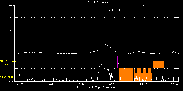 EIS Observation timeline overlay to GOES-Xray curve Code 1" 2" 40" 266" EIS Observations list for this event: STUDY ACRONYM ID DATE OBSERVED DESCRIPTION NOAA# TARGET 0 regcal074 | 19274 | 2010/09/22 06:26:12 | Dark exposures including overscan pixe | | Engineering TIMELINE ID DATE OBSERVED FITS FILE XCEN (+W/-E) YCEN (+N/-S) DUR ----------------------------------------------------------------------------------------------------------------- 19274 | 2010/09/22 06:26:12.000 | eis_l0_20100922_062612.fits.gz | 14.59 | 205.81 | 3m22s 1 VHH_SlowARbig_1h23 | 19270 | 2010/09/22 06:38:27 | Active region monitor | 1108 | Active Region TIMELINE ID DATE OBSERVED FITS FILE XCEN (+W/-E) YCEN (+N/-S) DUR ----------------------------------------------------------------------------------------------------------------- 19270 | 2010/09/22 06:38:27.000 | eis_l0_20100922_063827.fits.gz | 14.61 | -563.61 | 1h19m10s 2 VHH_HI_BRT_SCAN_EXT | 19271 | 2010/09/22 08:03:13 | HOP126 | | Active Region TIMELINE ID DATE OBSERVED FITS FILE XCEN (+W/-E) YCEN (+N/-S) DUR ----------------------------------------------------------------------------------------------------------------- 19271 | 2010/09/22 08:03:13.000 | eis_l0_20100922_080313.fits.gz | -23.41 | -563.53 | 3m32s 19271 | 2010/09/22 08:06:48.000 | eis_l0_20100922_080648.fits.gz | -22.87 | -563.45 | 3m32s 19271 | 2010/09/22 08:10:23.000 | eis_l0_20100922_081023.fits.gz | -22.40 | -563.45 | 3m32s 19271 | 2010/09/22 08:13:58.000 | eis_l0_20100922_081358.fits.gz | -22.02 | -563.61 | 3m32s 19271 | 2010/09/22 08:17:33.000 | eis_l0_20100922_081733.fits.gz | -21.63 | -563.61 | 3m32s 19271 | 2010/09/22 08:21:08.000 | eis_l0_20100922_082108.fits.gz | -21.17 | -563.53 | 3m33s 19271 | 2010/09/22 08:24:43.000 | eis_l0_20100922_082443.fits.gz | -20.63 | -563.53 | 3m32s 19271 | 2010/09/22 08:28:18.000 | eis_l0_20100922_082818.fits.gz | -20.24 | -563.61 | 3m32s 19271 | 2010/09/22 08:31:53.000 | eis_l0_20100922_083153.fits.gz | -19.78 | -563.53 | 3m32s 19271 | 2010/09/22 08:35:28.000 | eis_l0_20100922_083528.fits.gz | -19.31 | -563.61 | 3m31s 19271 | 2010/09/22 08:39:02.000 | eis_l0_20100922_083902.fits.gz | -18.93 | -563.61 | 3m32s 19271 | 2010/09/22 08:42:37.000 | eis_l0_20100922_084237.fits.gz | -18.46 | -563.38 | 3m32s 19271 | 2010/09/22 08:46:12.000 | eis_l0_20100922_084612.fits.gz | -18.00 | -563.53 | 3m32s 19271 | 2010/09/22 08:49:47.000 | eis_l0_20100922_084947.fits.gz | -17.46 | -563.61 | 3m32s 19271 | 2010/09/22 08:53:22.000 | eis_l0_20100922_085322.fits.gz | -16.99 | -563.61 | 3m31s 19271 | 2010/09/22 08:56:56.000 | eis_l0_20100922_085656.fits.gz | -16.53 | -563.61 | 3m32s 19271 | 2010/09/22 09:00:31.000 | eis_l0_20100922_090031.fits.gz | -16.15 | -563.61 | 3m32s 19271 | 2010/09/22 09:04:06.000 | eis_l0_20100922_090406.fits.gz | -15.68 | -563.53 | 3m32s 19271 | 2010/09/22 09:07:41.000 | eis_l0_20100922_090741.fits.gz | -15.22 | -563.53 | 3m32s 19271 | 2010/09/22 09:11:16.000 | eis_l0_20100922_091116.fits.gz | -14.83 | -563.53 | 3m31s 19271 | 2010/09/22 09:14:50.000 | eis_l0_20100922_091450.fits.gz | -14.37 | -563.45 | 3m32s 19271 | 2010/09/22 09:18:25.000 | eis_l0_20100922_091825.fits.gz | -13.90 | -563.53 | 3m32s 19271 | 2010/09/22 09:22:00.000 | eis_l0_20100922_092200.fits.gz | -13.44 | -563.53 | 3m32s 19271 | 2010/09/22 09:25:35.000 | eis_l0_20100922_092535.fits.gz | -12.98 | -563.53 | 3m32s 19271 | 2010/09/22 09:29:10.000 | eis_l0_20100922_092910.fits.gz | -12.51 | -563.53 | 3m32s 19271 | 2010/09/22 09:32:45.000 | eis_l0_20100922_093245.fits.gz | -12.13 | -563.53 | 3m32s 19271 | 2010/09/22 09:36:20.000 | eis_l0_20100922_093620.fits.gz | -11.66 | -563.61 | 3m31s 19271 | 2010/09/22 09:39:54.000 | eis_l0_20100922_093954.fits.gz | -11.20 | -563.45 | 3m32s 19271 | 2010/09/22 09:43:29.000 | eis_l0_20100922_094329.fits.gz | -10.74 | -563.61 | 3m32s 19271 | 2010/09/22 09:47:04.000 | eis_l0_20100922_094704.fits.gz | -10.27 | -563.61 | 3m32s 3 vhh_slowar_sas_1h6m | 19288 | 2010/09/22 09:57:13 | Chromospheric jets with SST | | Active Region TIMELINE ID DATE OBSERVED FITS FILE XCEN (+W/-E) YCEN (+N/-S) DUR ----------------------------------------------------------------------------------------------------------------- 19288 | 2010/09/22 09:57:13.000 | eis_l0_20100922_095713.fits.gz | -0.05 | -563.53 | 1h2m49s 4 PRY_slot_context_v3 | 19275 | 2010/09/22 11:22:20 | EIS Spectral Atlas Synoptic Program | 1108 | Active Region TIMELINE ID DATE OBSERVED FITS FILE XCEN (+W/-E) YCEN (+N/-S) DUR ----------------------------------------------------------------------------------------------------------------- 19275 | 2010/09/22 11:22:20.000 | eis_l0_20100922_112220.fits.gz | -19.11 | -593.45 | 2m56s : Check study information : Download file : View thumbnails For this event, also check for:
