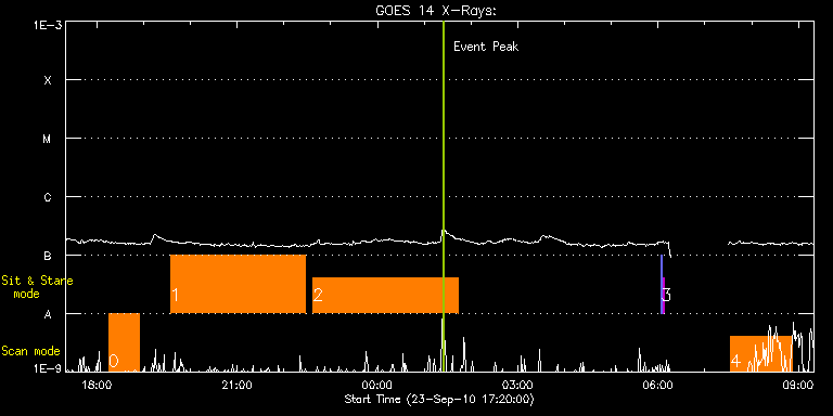 EIS Observation timeline overlay to GOES-Xray curve Code 1" 2" 40" 266" EIS Observations list for this event: STUDY ACRONYM ID DATE OBSERVED DESCRIPTION NOAA# TARGET 0 iiap_ch_ctxt_v2 | 19293 | 2010/09/23 18:15:13 | HOP 175 Nature of propagating waves in | | Coronal Hole TIMELINE ID DATE OBSERVED FITS FILE XCEN (+W/-E) YCEN (+N/-S) DUR ----------------------------------------------------------------------------------------------------------------- 19293 | 2010/09/23 18:15:13.000 | eis_l0_20100923_181513.fits.gz | -0.48 | 889.39 | 39m11s 1 iiap_ch_sns_v2 | 19294 | 2010/09/23 19:34:36 | HOP 175 Nature of propagating waves in | | Coronal Hole TIMELINE ID DATE OBSERVED FITS FILE XCEN (+W/-E) YCEN (+N/-S) DUR ----------------------------------------------------------------------------------------------------------------- 19294 | 2010/09/23 19:34:36.000 | eis_l0_20100923_193436.fits.gz | -0.40 | 889.39 | 2h53m16s 2 iiap_ch_sns_v2 | 19302 | 2010/09/23 22:37:43 | HOP 175 Nature of propagating waves in | | Coronal Hole TIMELINE ID DATE OBSERVED FITS FILE XCEN (+W/-E) YCEN (+N/-S) DUR ----------------------------------------------------------------------------------------------------------------- 19302 | 2010/09/23 22:37:43.000 | eis_l0_20100923_223743.fits.gz | 29.55 | 889.47 | 3h5m40s 3 SYNOP005_A | 19295 | 2010/09/24 06:04:20 | Synop 005 | | Quiet Sun TIMELINE ID DATE OBSERVED FITS FILE XCEN (+W/-E) YCEN (+N/-S) DUR ----------------------------------------------------------------------------------------------------------------- 19295 | 2010/09/24 06:04:20.000 | eis_l0_20100924_060420.fits.gz | -19.60 | -0.42 | 1m30s 19295 | 2010/09/24 06:06:01.000 | eis_l0_20100924_060601.fits.gz | -0.18 | -0.35 | 1m30s 4 VHH_SlowARbig_1h23 | 19296 | 2010/09/24 07:33:26 | Active region monitor | 1108 | Active Region TIMELINE ID DATE OBSERVED FITS FILE XCEN (+W/-E) YCEN (+N/-S) DUR ----------------------------------------------------------------------------------------------------------------- 19296 | 2010/09/24 07:33:26.000 | eis_l0_20100924_073326.fits.gz | 378.58 | -539.88 | 1h19m10s : Check study information : Download file : View thumbnails For this event, also check for: