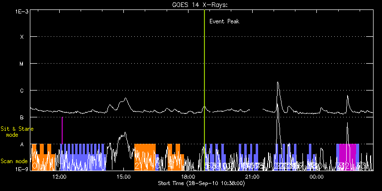 EIS Observation timeline overlay to GOES-Xray curve Code 1" 2" 40" 266" EIS Observations list for this event: STUDY ACRONYM ID DATE OBSERVED DESCRIPTION NOAA# TARGET 0 XBP_OBS_SI006 | 19337 | 2010/09/28 10:44:14 | HOP 166: Vector Magnetic Field Structu | 1109 | Quiet Sun TIMELINE ID DATE OBSERVED FITS FILE XCEN (+W/-E) YCEN (+N/-S) DUR ----------------------------------------------------------------------------------------------------------------- 19337 | 2010/09/28 10:44:14.000 | eis_l0_20100928_104414.fits.gz | -30.85 | 265.55 | 10m31s 19337 | 2010/09/28 10:54:48.000 | eis_l0_20100928_105448.fits.gz | -29.38 | 265.55 | 10m32s 19337 | 2010/09/28 11:05:23.000 | eis_l0_20100928_110523.fits.gz | -27.76 | 265.55 | 10m33s 19337 | 2010/09/28 11:15:59.000 | eis_l0_20100928_111559.fits.gz | -26.45 | 265.71 | 10m32s 19337 | 2010/09/28 11:26:34.000 | eis_l0_20100928_112634.fits.gz | -24.83 | 265.55 | 10m32s 19337 | 2010/09/28 11:37:09.000 | eis_l0_20100928_113709.fits.gz | -23.44 | 265.63 | 10m32s 1 ARdiag_sns | 19351 | 2010/09/28 12:02:20 | Flux Emergence and associated events ( | 1109 | Active Region TIMELINE ID DATE OBSERVED FITS FILE XCEN (+W/-E) YCEN (+N/-S) DUR ----------------------------------------------------------------------------------------------------------------- 19351 | 2010/09/28 12:02:20.000 | eis_l0_20100928_120220.fits.gz | 50.59 | 220.74 | 5m10s 19351 | 2010/09/28 12:07:41.000 | eis_l0_20100928_120741.fits.gz | 70.51 | 220.66 | 10s 19351 | 2010/09/28 12:08:17.000 | eis_l0_20100928_120817.fits.gz | 51.37 | 220.66 | 5m9s 19351 | 2010/09/28 12:13:32.000 | eis_l0_20100928_121332.fits.gz | 51.98 | 220.74 | 5m9s 19351 | 2010/09/28 12:18:47.000 | eis_l0_20100928_121847.fits.gz | 52.91 | 220.66 | 5m9s 19351 | 2010/09/28 12:24:02.000 | eis_l0_20100928_122402.fits.gz | 53.53 | 220.66 | 5m9s 19351 | 2010/09/28 12:29:17.000 | eis_l0_20100928_122917.fits.gz | 54.22 | 220.66 | 5m10s 19351 | 2010/09/28 12:34:32.000 | eis_l0_20100928_123432.fits.gz | 55.00 | 220.66 | 5m9s 19351 | 2010/09/28 12:39:47.000 | eis_l0_20100928_123947.fits.gz | 55.69 | 220.74 | 5m10s 19351 | 2010/09/28 12:45:02.000 | eis_l0_20100928_124502.fits.gz | 56.54 | 220.74 | 5m10s 19351 | 2010/09/28 12:50:17.000 | eis_l0_20100928_125017.fits.gz | 57.24 | 220.81 | 5m10s 19351 | 2010/09/28 12:55:32.000 | eis_l0_20100928_125532.fits.gz | 58.01 | 220.81 | 5m10s 19351 | 2010/09/28 13:00:48.000 | eis_l0_20100928_130048.fits.gz | 58.70 | 220.81 | 5m9s 19351 | 2010/09/28 13:06:03.000 | eis_l0_20100928_130603.fits.gz | 59.40 | 220.66 | 5m9s 19351 | 2010/09/28 13:11:18.000 | eis_l0_20100928_131118.fits.gz | 60.25 | 220.66 | 5m9s 19351 | 2010/09/28 13:16:33.000 | eis_l0_20100928_131633.fits.gz | 60.87 | 220.81 | 5m9s 19351 | 2010/09/28 13:21:48.000 | eis_l0_20100928_132148.fits.gz | 61.72 | 220.89 | 5m10s 19351 | 2010/09/28 13:27:03.000 | eis_l0_20100928_132703.fits.gz | 62.41 | 220.66 | 5m10s 19351 | 2010/09/28 13:32:18.000 | eis_l0_20100928_133218.fits.gz | 63.18 | 220.74 | 5m10s 19351 | 2010/09/28 13:37:33.000 | eis_l0_20100928_133733.fits.gz | 63.88 | 220.74 | 5m10s 19351 | 2010/09/28 13:42:48.000 | eis_l0_20100928_134248.fits.gz | 64.65 | 220.74 | 5m10s 19351 | 2010/09/28 13:48:03.000 | eis_l0_20100928_134803.fits.gz | 65.35 | 220.74 | 5m10s 19351 | 2010/09/28 13:53:18.000 | eis_l0_20100928_135318.fits.gz | 66.04 | 220.81 | 5m10s 19351 | 2010/09/28 13:58:34.000 | eis_l0_20100928_135834.fits.gz | 66.81 | 220.66 | 5m9s 19351 | 2010/09/28 14:03:49.000 | eis_l0_20100928_140349.fits.gz | 67.51 | 220.74 | 5m9s 2 mbps_1 | 19338 | 2010/09/28 15:30:34 | HOP 169: Hunt for MHD waves: Magneto-s | | Quiet Sun TIMELINE ID DATE OBSERVED FITS FILE XCEN (+W/-E) YCEN (+N/-S) DUR ----------------------------------------------------------------------------------------------------------------- 19338 | 2010/09/28 15:30:34.000 | eis_l0_20100928_153034.fits.gz | -3.52 | -1.26 | 45s 19338 | 2010/09/28 15:31:22.000 | eis_l0_20100928_153122.fits.gz | -3.36 | -1.26 | 45s 19338 | 2010/09/28 15:32:09.000 | eis_l0_20100928_153209.fits.gz | -3.29 | -1.26 | 46s 19338 | 2010/09/28 15:32:57.000 | eis_l0_20100928_153257.fits.gz | -3.13 | -1.34 | 45s 19338 | 2010/09/28 15:33:45.000 | eis_l0_20100928_153345.fits.gz | -2.98 | -1.34 | 45s 19338 | 2010/09/28 15:34:33.000 | eis_l0_20100928_153433.fits.gz | -2.90 | -1.41 | 45s 19338 | 2010/09/28 15:35:21.000 | eis_l0_20100928_153521.fits.gz | -2.75 | -1.26 | 45s 19338 | 2010/09/28 15:36:09.000 | eis_l0_20100928_153609.fits.gz | -2.59 | -1.34 | 45s 19338 | 2010/09/28 15:36:57.000 | eis_l0_20100928_153657.fits.gz | -2.44 | -1.41 | 45s 19338 | 2010/09/28 15:37:45.000 | eis_l0_20100928_153745.fits.gz | -2.36 | -1.41 | 45s 19338 | 2010/09/28 15:38:32.000 | eis_l0_20100928_153832.fits.gz | -2.28 | -1.26 | 45s 19338 | 2010/09/28 15:39:20.000 | eis_l0_20100928_153920.fits.gz | -2.28 | -1.26 | 45s 19338 | 2010/09/28 15:40:08.000 | eis_l0_20100928_154008.fits.gz | -1.97 | -1.26 | 45s 19338 | 2010/09/28 15:40:56.000 | eis_l0_20100928_154056.fits.gz | -1.90 | -1.41 | 45s 19338 | 2010/09/28 15:41:44.000 | eis_l0_20100928_154144.fits.gz | -1.82 | -1.26 | 45s 19338 | 2010/09/28 15:42:31.000 | eis_l0_20100928_154231.fits.gz | -1.66 | -1.41 | 45s 19338 | 2010/09/28 15:43:19.000 | eis_l0_20100928_154319.fits.gz | -1.59 | -1.26 | 45s 19338 | 2010/09/28 15:44:07.000 | eis_l0_20100928_154407.fits.gz | -1.43 | -1.34 | 45s 19338 | 2010/09/28 15:44:55.000 | eis_l0_20100928_154455.fits.gz | -1.28 | -1.34 | 45s 19338 | 2010/09/28 15:45:42.000 | eis_l0_20100928_154542.fits.gz | -1.20 | -1.18 | 46s 19338 | 2010/09/28 15:46:30.000 | eis_l0_20100928_154630.fits.gz | -1.05 | -1.34 | 45s 19338 | 2010/09/28 15:47:18.000 | eis_l0_20100928_154718.fits.gz | -0.97 | -1.18 | 45s 19338 | 2010/09/28 15:48:06.000 | eis_l0_20100928_154806.fits.gz | -0.74 | -1.34 | 45s 19338 | 2010/09/28 15:48:54.000 | eis_l0_20100928_154854.fits.gz | -0.66 | -1.49 | 45s 19338 | 2010/09/28 15:49:42.000 | eis_l0_20100928_154942.fits.gz | -0.51 | -1.26 | 45s 19338 | 2010/09/28 15:5