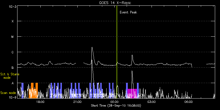 EIS Observation timeline overlay to GOES-Xray curve Code 1" 2" 40" 266" EIS Observations list for this event: STUDY ACRONYM ID DATE OBSERVED DESCRIPTION NOAA# TARGET 0 IUU_SLOT_488x512 | 19339 | 2010/09/28 16:28:56 | HOP 169: Hunt for MHD waves: Magneto-s | 1109 | Quiet Sun TIMELINE ID DATE OBSERVED FITS FILE XCEN (+W/-E) YCEN (+N/-S) DUR ----------------------------------------------------------------------------------------------------------------- 19339 | 2010/09/28 16:28:56.000 | eis_l0_20100928_162856.fits.gz | 2.01 | -1.18 | 7m56s 1 mbps_3 | 19340 | 2010/09/28 17:04:04 | HOP 169: Hunt for MHD waves: Magneto-s | | Quiet Sun TIMELINE ID DATE OBSERVED FITS FILE XCEN (+W/-E) YCEN (+N/-S) DUR ----------------------------------------------------------------------------------------------------------------- 19340 | 2010/09/28 17:04:04.000 | eis_l0_20100928_170404.fits.gz | 12.00 | -1.34 | 10m49s 19340 | 2010/09/28 17:14:55.000 | eis_l0_20100928_171455.fits.gz | 13.62 | -1.26 | 10m49s 19340 | 2010/09/28 17:25:47.000 | eis_l0_20100928_172547.fits.gz | 15.32 | -1.26 | 10m48s 19340 | 2010/09/28 17:36:38.000 | eis_l0_20100928_173638.fits.gz | 16.87 | -1.18 | 10m49s 2 full_sun_slot_scan_1 | 19353 | 2010/09/28 18:45:20 | HOP 130: Multi-temperature Full-Disk S | | Quiet Sun TIMELINE ID DATE OBSERVED FITS FILE XCEN (+W/-E) YCEN (+N/-S) DUR ----------------------------------------------------------------------------------------------------------------- 19353 | 2010/09/28 18:45:20.000 | eis_l0_20100928_184520.fits.gz | 920.76 | 185.58 | 5m27s 3 full_sun_slot_scan_1 | 19354 | 2010/09/28 18:50:52 | HOP 130: Multi-temperature Full-Disk S | 1108 | Quiet Sun TIMELINE ID DATE OBSERVED FITS FILE XCEN (+W/-E) YCEN (+N/-S) DUR ----------------------------------------------------------------------------------------------------------------- 19354 | 2010/09/28 18:50:52.000 | eis_l0_20100928_185052.fits.gz | 920.69 | -286.42 | 5m27s 4 full_sun_slot_scan_1 | 19355 | 2010/09/28 19:01:13 | HOP 130: Multi-temperature Full-Disk S | 1110 | Quiet Sun TIMELINE ID DATE OBSERVED FITS FILE XCEN (+W/-E) YCEN (+N/-S) DUR ----------------------------------------------------------------------------------------------------------------- 19355 | 2010/09/28 19:01:13.000 | eis_l0_20100928_190113.fits.gz | 452.72 | 185.50 | 5m28s 5 full_sun_slot_scan_1 | 19356 | 2010/09/28 19:06:46 | HOP 130: Multi-temperature Full-Disk S | | Quiet Sun TIMELINE ID DATE OBSERVED FITS FILE XCEN (+W/-E) YCEN (+N/-S) DUR ----------------------------------------------------------------------------------------------------------------- 19356 | 2010/09/28 19:06:46.000 | eis_l0_20100928_190646.fits.gz | 452.64 | -286.50 | 5m26s 6 full_sun_slot_scan_1 | 19357 | 2010/09/28 19:17:14 | HOP 130: Multi-temperature Full-Disk S | 1109 | Quiet Sun TIMELINE ID DATE OBSERVED FITS FILE XCEN (+W/-E) YCEN (+N/-S) DUR ----------------------------------------------------------------------------------------------------------------- 19357 | 2010/09/28 19:17:14.000 | eis_l0_20100928_191714.fits.gz | -15.40 | 185.58 | 5m27s 7 full_sun_slot_scan_1 | 19358 | 2010/09/28 19:22:46 | HOP 130: Multi-temperature Full-Disk S | | Quiet Sun TIMELINE ID DATE OBSERVED FITS FILE XCEN (+W/-E) YCEN (+N/-S) DUR ----------------------------------------------------------------------------------------------------------------- 19358 | 2010/09/28 19:22:46.000 | eis_l0_20100928_192246.fits.gz | -15.32 | -286.42 | 5m26s 8 full_sun_slot_scan_1 | 19359 | 2010/09/28 19:33:13 | HOP 130: Multi-temperature Full-Disk S | | Quiet Sun TIMELINE ID DATE OBSERVED FITS FILE XCEN (+W/-E) YCEN (+N/-S) DUR ----------------------------------------------------------------------------------------------------------------- 19359 | 2010/09/28 19:33:13.000 | eis_l0_20100928_193313.fits.gz | -483.29 | 185.50 | 5m27s 9 full_sun_slot_scan_1 | 19360 | 2010/09/28 19:38:46 | HOP 130: Multi-temperature Full-Disk S | | Quiet Sun TIMELINE ID DATE OBSERVED FITS FILE XCEN (+W/-E) YCEN (+N/-S) DUR ----------------------------------------------------------------------------------------------------------------- 19360 | 2010/09/28 19:38:46.000 | eis_l0_20100928_193846.fits.gz | -483.29 | -286.50 | 5m26s 10 full_sun_slot_scan_1 | 19361 | 2010/09/28 20:22:13 | HOP 130: Multi-temperature Full-Disk S | | Quiet Sun TIMELINE ID DATE OBSERVED FITS FILE XCEN (+W/-E) YCEN (+N/-S) DUR ----------------------------------------------------------------------------------------------------------------- 19361 | 2010/09/28 20:22:13.000 | eis_l0_20100928_202213.fits.gz | -9884.72 | -9777.20 | 5m28s 11 full_sun_slot_scan_1 | 19362 | 2010/09/28 20:27:46 | HOP 130: Multi-temperature Full-Disk S | | Quiet Sun TIMELINE ID DATE OBSERVED FITS FILE XCEN (+W/-E) YCEN (+N/-S) DUR ----------------------------------------------------------------------------------------------------------------- 19362 | 2010/09/28 20:27:46.000 | eis_l0_20100928_202746.fits.gz | -9884.72 | -10249.20 | 5m26s 12 full_sun_slot_scan_1 | 19375 | 2010/09/28 20:38:14 | HOP 130: Multi-temperature Full-Disk S | | Quiet Sun TIMELINE ID DATE OBSERVED FITS FILE XCEN (+W/-E) YCEN (+N/-S) DUR ----------------------------------------------------------------------------------------------------------------- 19375 | 2010/09/28 20:38:14.000 | eis_l0_20100928_203814.fits.gz | 733.83 | 469.63 | 5m26s 13 full_sun_slot_scan_1 | 19363 | 2010/09/28 20:48:13 | HOP 130: Multi-temperature Full-Disk S | | Quiet Sun TIMELINE ID DATE OBSERVED FITS FILE XCEN (+W/-E) YCEN (+N/-S) DUR ----------------------------------------------------------------------------------------------------------------- 19363 | 2010/09/28 20:48:13.000 | eis_l0_20100928_204813.fits.gz | 395.79 | 1032.67 | 5m28s 14 full_sun_slot_scan_1 | 19364 | 2010/09/28 20:53:46 | HOP 130: Multi-temperature Full-Disk S | | Quiet Sun TIMELINE ID DATE OBSERVED FITS FILE XCEN (+W/-E) YCEN (+N/-S) DUR -----------------------------------------------------------------