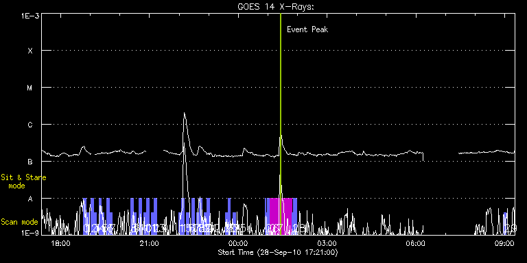 EIS Observation timeline overlay to GOES-Xray curve Code 1" 2" 40" 266" EIS Observations list for this event: STUDY ACRONYM ID DATE OBSERVED DESCRIPTION NOAA# TARGET 0 full_sun_slot_scan_1 | 19353 | 2010/09/28 18:45:20 | HOP 130: Multi-temperature Full-Disk S | | Quiet Sun TIMELINE ID DATE OBSERVED FITS FILE XCEN (+W/-E) YCEN (+N/-S) DUR ----------------------------------------------------------------------------------------------------------------- 19353 | 2010/09/28 18:45:20.000 | eis_l0_20100928_184520.fits.gz | 920.76 | 185.58 | 5m27s 1 full_sun_slot_scan_1 | 19354 | 2010/09/28 18:50:52 | HOP 130: Multi-temperature Full-Disk S | 1108 | Quiet Sun TIMELINE ID DATE OBSERVED FITS FILE XCEN (+W/-E) YCEN (+N/-S) DUR ----------------------------------------------------------------------------------------------------------------- 19354 | 2010/09/28 18:50:52.000 | eis_l0_20100928_185052.fits.gz | 920.69 | -286.42 | 5m27s 2 full_sun_slot_scan_1 | 19355 | 2010/09/28 19:01:13 | HOP 130: Multi-temperature Full-Disk S | 1110 | Quiet Sun TIMELINE ID DATE OBSERVED FITS FILE XCEN (+W/-E) YCEN (+N/-S) DUR ----------------------------------------------------------------------------------------------------------------- 19355 | 2010/09/28 19:01:13.000 | eis_l0_20100928_190113.fits.gz | 452.72 | 185.50 | 5m28s 3 full_sun_slot_scan_1 | 19356 | 2010/09/28 19:06:46 | HOP 130: Multi-temperature Full-Disk S | | Quiet Sun TIMELINE ID DATE OBSERVED FITS FILE XCEN (+W/-E) YCEN (+N/-S) DUR ----------------------------------------------------------------------------------------------------------------- 19356 | 2010/09/28 19:06:46.000 | eis_l0_20100928_190646.fits.gz | 452.64 | -286.50 | 5m26s 4 full_sun_slot_scan_1 | 19357 | 2010/09/28 19:17:14 | HOP 130: Multi-temperature Full-Disk S | 1109 | Quiet Sun TIMELINE ID DATE OBSERVED FITS FILE XCEN (+W/-E) YCEN (+N/-S) DUR ----------------------------------------------------------------------------------------------------------------- 19357 | 2010/09/28 19:17:14.000 | eis_l0_20100928_191714.fits.gz | -15.40 | 185.58 | 5m27s 5 full_sun_slot_scan_1 | 19358 | 2010/09/28 19:22:46 | HOP 130: Multi-temperature Full-Disk S | | Quiet Sun TIMELINE ID DATE OBSERVED FITS FILE XCEN (+W/-E) YCEN (+N/-S) DUR ----------------------------------------------------------------------------------------------------------------- 19358 | 2010/09/28 19:22:46.000 | eis_l0_20100928_192246.fits.gz | -15.32 | -286.42 | 5m26s 6 full_sun_slot_scan_1 | 19359 | 2010/09/28 19:33:13 | HOP 130: Multi-temperature Full-Disk S | | Quiet Sun TIMELINE ID DATE OBSERVED FITS FILE XCEN (+W/-E) YCEN (+N/-S) DUR ----------------------------------------------------------------------------------------------------------------- 19359 | 2010/09/28 19:33:13.000 | eis_l0_20100928_193313.fits.gz | -483.29 | 185.50 | 5m27s 7 full_sun_slot_scan_1 | 19360 | 2010/09/28 19:38:46 | HOP 130: Multi-temperature Full-Disk S | | Quiet Sun TIMELINE ID DATE OBSERVED FITS FILE XCEN (+W/-E) YCEN (+N/-S) DUR ----------------------------------------------------------------------------------------------------------------- 19360 | 2010/09/28 19:38:46.000 | eis_l0_20100928_193846.fits.gz | -483.29 | -286.50 | 5m26s 8 full_sun_slot_scan_1 | 19361 | 2010/09/28 20:22:13 | HOP 130: Multi-temperature Full-Disk S | | Quiet Sun TIMELINE ID DATE OBSERVED FITS FILE XCEN (+W/-E) YCEN (+N/-S) DUR ----------------------------------------------------------------------------------------------------------------- 19361 | 2010/09/28 20:22:13.000 | eis_l0_20100928_202213.fits.gz | -9884.72 | -9777.20 | 5m28s 9 full_sun_slot_scan_1 | 19362 | 2010/09/28 20:27:46 | HOP 130: Multi-temperature Full-Disk S | | Quiet Sun TIMELINE ID DATE OBSERVED FITS FILE XCEN (+W/-E) YCEN (+N/-S) DUR ----------------------------------------------------------------------------------------------------------------- 19362 | 2010/09/28 20:27:46.000 | eis_l0_20100928_202746.fits.gz | -9884.72 | -10249.20 | 5m26s 10 full_sun_slot_scan_1 | 19375 | 2010/09/28 20:38:14 | HOP 130: Multi-temperature Full-Disk S | | Quiet Sun TIMELINE ID DATE OBSERVED FITS FILE XCEN (+W/-E) YCEN (+N/-S) DUR ----------------------------------------------------------------------------------------------------------------- 19375 | 2010/09/28 20:38:14.000 | eis_l0_20100928_203814.fits.gz | 733.83 | 469.63 | 5m26s 11 full_sun_slot_scan_1 | 19363 | 2010/09/28 20:48:13 | HOP 130: Multi-temperature Full-Disk S | | Quiet Sun TIMELINE ID DATE OBSERVED FITS FILE XCEN (+W/-E) YCEN (+N/-S) DUR ----------------------------------------------------------------------------------------------------------------- 19363 | 2010/09/28 20:48:13.000 | eis_l0_20100928_204813.fits.gz | 395.79 | 1032.67 | 5m28s 12 full_sun_slot_scan_1 | 19364 | 2010/09/28 20:53:46 | HOP 130: Multi-temperature Full-Disk S | | Quiet Sun TIMELINE ID DATE OBSERVED FITS FILE XCEN (+W/-E) YCEN (+N/-S) DUR ----------------------------------------------------------------------------------------------------------------- 19364 | 2010/09/28 20:53:46.000 | eis_l0_20100928_205346.fits.gz | 395.87 | 560.60 | 5m26s 13 full_sun_slot_scan_1 | 19365 | 2010/09/28 21:04:13 | HOP 130: Multi-temperature Full-Disk S | | Quiet Sun TIMELINE ID DATE OBSERVED FITS FILE XCEN (+W/-E) YCEN (+N/-S) DUR ----------------------------------------------------------------------------------------------------------------- 19365 | 2010/09/28 21:04:13.000 | eis_l0_20100928_210413.fits.gz | -15.32 | 1126.61 | 5m28s 14 full_sun_slot_scan_1 | 19366 | 2010/09/28 21:09:46 | HOP 130: Multi-temperature Full-Disk S | | Quiet Sun TIMELINE ID DATE OBSERVED FITS FILE XCEN (+W/-E) YCEN (+N/-S) DUR ----------------------------------------------------------------------------------------------------------------- 19366 | 2010/09/28 21:09:46.000 | eis_l0_20100928_210946.fits.gz | -15.32 | 654.53 | 5m26s 15 full_sun_slot_scan_1 | 19367 | 2010/09/28 21:59:13 | HOP 130: Multi-temperature Full-Disk S | | Quiet Sun TIM