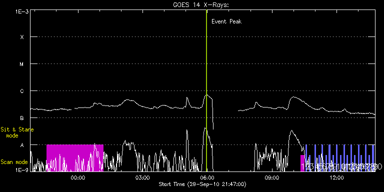 EIS Observation timeline overlay to GOES-Xray curve Code 1" 2" 40" 266" EIS Observations list for this event: STUDY ACRONYM ID DATE OBSERVED DESCRIPTION NOAA# TARGET 0 HPW018AR300x400_30s2 | 19352 | 2010/09/29 22:32:26 | Wide Field Active Region Scan | 1110 | Active Region TIMELINE ID DATE OBSERVED FITS FILE XCEN (+W/-E) YCEN (+N/-S) DUR ----------------------------------------------------------------------------------------------------------------- 19352 | 2010/09/29 22:32:26.000 | eis_l0_20100929_223226.fits.gz | 357.07 | 239.04 | 2h38m21s 1 SK_DEEP_5x512_SLIT1 | 19382 | 2010/09/30 10:19:13 | HOP 79: Synoptic Irradiance Scans (T. | | Quiet Sun TIMELINE ID DATE OBSERVED FITS FILE XCEN (+W/-E) YCEN (+N/-S) DUR ----------------------------------------------------------------------------------------------------------------- 19382 | 2010/09/30 10:19:13.000 | eis_l0_20100930_101913.fits.gz | -9869.50 | -9963.20 | 10m8s 2 PRY_slot_contextLITE | 19383 | 2010/09/30 10:33:34 | HOP 79: Synoptic Irradiance Scans (T. | | Active Region TIMELINE ID DATE OBSERVED FITS FILE XCEN (+W/-E) YCEN (+N/-S) DUR ----------------------------------------------------------------------------------------------------------------- 19383 | 2010/09/30 10:33:34.000 | eis_l0_20100930_103334.fits.gz | -718.28 | -15.49 | 2m56s 3 PRY_slot_contextLITE | 19419 | 2010/09/30 10:43:41 | HOP 79: Synoptic Irradiance Scans (T. | | Active Region TIMELINE ID DATE OBSERVED FITS FILE XCEN (+W/-E) YCEN (+N/-S) DUR ----------------------------------------------------------------------------------------------------------------- 19419 | 2010/09/30 10:43:41.000 | eis_l0_20100930_104341.fits.gz | -519.21 | -15.56 | 2m56s 4 PRY_slot_contextLITE | 19390 | 2010/09/30 10:58:13 | HOP 79: Synoptic Irradiance Scans (T. | | Active Region TIMELINE ID DATE OBSERVED FITS FILE XCEN (+W/-E) YCEN (+N/-S) DUR ----------------------------------------------------------------------------------------------------------------- 19390 | 2010/09/30 10:58:13.000 | eis_l0_20100930_105813.fits.gz | -320.07 | -15.56 | 2m56s 5 PRY_slot_contextLITE | 19420 | 2010/09/30 11:09:13 | HOP 79: Synoptic Irradiance Scans (T. | | Active Region TIMELINE ID DATE OBSERVED FITS FILE XCEN (+W/-E) YCEN (+N/-S) DUR ----------------------------------------------------------------------------------------------------------------- 19420 | 2010/09/30 11:09:13.000 | eis_l0_20100930_110913.fits.gz | -121.07 | -15.56 | 2m57s 6 PRY_slot_contextLITE | 19411 | 2010/09/30 11:18:13 | HOP 79: Synoptic Irradiance Scans (T. | | Active Region TIMELINE ID DATE OBSERVED FITS FILE XCEN (+W/-E) YCEN (+N/-S) DUR ----------------------------------------------------------------------------------------------------------------- 19411 | 2010/09/30 11:18:13.000 | eis_l0_20100930_111813.fits.gz | 77.92 | -15.56 | 2m57s 7 PRY_slot_contextLITE | 19421 | 2010/09/30 11:29:13 | HOP 79: Synoptic Irradiance Scans (T. | | Active Region TIMELINE ID DATE OBSERVED FITS FILE XCEN (+W/-E) YCEN (+N/-S) DUR ----------------------------------------------------------------------------------------------------------------- 19421 | 2010/09/30 11:29:13.000 | eis_l0_20100930_112913.fits.gz | 276.98 | -15.64 | 2m57s 8 PRY_slot_contextLITE | 19412 | 2010/09/30 11:38:14 | HOP 79: Synoptic Irradiance Scans (T. | | Active Region TIMELINE ID DATE OBSERVED FITS FILE XCEN (+W/-E) YCEN (+N/-S) DUR ----------------------------------------------------------------------------------------------------------------- 19412 | 2010/09/30 11:38:14.000 | eis_l0_20100930_113814.fits.gz | 476.20 | -15.49 | 2m56s 9 PRY_slot_contextLITE | 19422 | 2010/09/30 11:49:13 | HOP 79: Synoptic Irradiance Scans (T. | | Active Region TIMELINE ID DATE OBSERVED FITS FILE XCEN (+W/-E) YCEN (+N/-S) DUR ----------------------------------------------------------------------------------------------------------------- 19422 | 2010/09/30 11:49:13.000 | eis_l0_20100930_114913.fits.gz | 675.19 | -15.64 | 2m57s 10 PRY_slot_contextLITE | 19413 | 2010/09/30 11:58:13 | HOP 79: Synoptic Irradiance Scans (T. | | Active Region TIMELINE ID DATE OBSERVED FITS FILE XCEN (+W/-E) YCEN (+N/-S) DUR ----------------------------------------------------------------------------------------------------------------- 19413 | 2010/09/30 11:58:13.000 | eis_l0_20100930_115813.fits.gz | 874.34 | -15.64 | 2m57s 11 PRY_slot_contextLITE | 19429 | 2010/09/30 12:09:13 | HOP 79: Synoptic Irradiance Scans (T. | | Active Region TIMELINE ID DATE OBSERVED FITS FILE XCEN (+W/-E) YCEN (+N/-S) DUR ----------------------------------------------------------------------------------------------------------------- 19429 | 2010/09/30 12:09:13.000 | eis_l0_20100930_120913.fits.gz | 874.18 | -15.49 | 2m57s 12 PRY_slot_contextLITE | 19423 | 2010/09/30 12:19:13 | HOP 79: Synoptic Irradiance Scans (T. | | Active Region TIMELINE ID DATE OBSERVED FITS FILE XCEN (+W/-E) YCEN (+N/-S) DUR ----------------------------------------------------------------------------------------------------------------- 19423 | 2010/09/30 12:19:13.000 | eis_l0_20100930_121913.fits.gz | -9884.72 | -9963.20 | 2m56s 13 PRY_slot_contextLITE | 19414 | 2010/09/30 12:28:13 | HOP 79: Synoptic Irradiance Scans (T. | 1111 | Active Region TIMELINE ID DATE OBSERVED FITS FILE XCEN (+W/-E) YCEN (+N/-S) DUR ----------------------------------------------------------------------------------------------------------------- 19414 | 2010/09/30 12:28:13.000 | eis_l0_20100930_122813.fits.gz | -776.75 | 166.90 | 2m57s 14 PRY_slot_contextLITE | 19424 | 2010/09/30 12:39:13 | HOP 79: Synoptic Irradiance Scans (T. | 1111 | Active Region TIMELINE ID DATE OBSERVED FITS FILE XCEN (+W/-E) YCEN (+N/-S) DUR ----------------------------------------------------------------------------------------------------------------- 19424 | 2010/09/30 12:39:13.000 | eis_l0_20100930_123913.fits.gz | -598.47 | 145.27 | 2m57s 15 PRY_slot_contextLITE | 19415 | 2010/09/30 12:48:13 | HOP 79: Synoptic Irradian