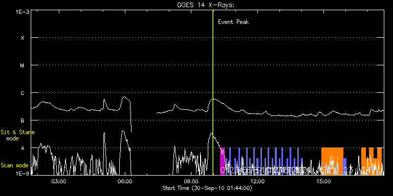 EIS Observation timeline overlay to GOES-Xray curve Code 1" 2" 40" 266" EIS Observations list for this event: STUDY ACRONYM ID DATE OBSERVED DESCRIPTION NOAA# TARGET 0 SK_DEEP_5x512_SLIT1 | 19382 | 2010/09/30 10:19:13 | HOP 79: Synoptic Irradiance Scans (T. | | Quiet Sun TIMELINE ID DATE OBSERVED FITS FILE XCEN (+W/-E) YCEN (+N/-S) DUR ----------------------------------------------------------------------------------------------------------------- 19382 | 2010/09/30 10:19:13.000 | eis_l0_20100930_101913.fits.gz | -9869.50 | -9963.20 | 10m8s 1 PRY_slot_contextLITE | 19383 | 2010/09/30 10:33:34 | HOP 79: Synoptic Irradiance Scans (T. | | Active Region TIMELINE ID DATE OBSERVED FITS FILE XCEN (+W/-E) YCEN (+N/-S) DUR ----------------------------------------------------------------------------------------------------------------- 19383 | 2010/09/30 10:33:34.000 | eis_l0_20100930_103334.fits.gz | -718.28 | -15.49 | 2m56s 2 PRY_slot_contextLITE | 19419 | 2010/09/30 10:43:41 | HOP 79: Synoptic Irradiance Scans (T. | | Active Region TIMELINE ID DATE OBSERVED FITS FILE XCEN (+W/-E) YCEN (+N/-S) DUR ----------------------------------------------------------------------------------------------------------------- 19419 | 2010/09/30 10:43:41.000 | eis_l0_20100930_104341.fits.gz | -519.21 | -15.56 | 2m56s 3 PRY_slot_contextLITE | 19390 | 2010/09/30 10:58:13 | HOP 79: Synoptic Irradiance Scans (T. | | Active Region TIMELINE ID DATE OBSERVED FITS FILE XCEN (+W/-E) YCEN (+N/-S) DUR ----------------------------------------------------------------------------------------------------------------- 19390 | 2010/09/30 10:58:13.000 | eis_l0_20100930_105813.fits.gz | -320.07 | -15.56 | 2m56s 4 PRY_slot_contextLITE | 19420 | 2010/09/30 11:09:13 | HOP 79: Synoptic Irradiance Scans (T. | | Active Region TIMELINE ID DATE OBSERVED FITS FILE XCEN (+W/-E) YCEN (+N/-S) DUR ----------------------------------------------------------------------------------------------------------------- 19420 | 2010/09/30 11:09:13.000 | eis_l0_20100930_110913.fits.gz | -121.07 | -15.56 | 2m57s 5 PRY_slot_contextLITE | 19411 | 2010/09/30 11:18:13 | HOP 79: Synoptic Irradiance Scans (T. | | Active Region TIMELINE ID DATE OBSERVED FITS FILE XCEN (+W/-E) YCEN (+N/-S) DUR ----------------------------------------------------------------------------------------------------------------- 19411 | 2010/09/30 11:18:13.000 | eis_l0_20100930_111813.fits.gz | 77.92 | -15.56 | 2m57s 6 PRY_slot_contextLITE | 19421 | 2010/09/30 11:29:13 | HOP 79: Synoptic Irradiance Scans (T. | | Active Region TIMELINE ID DATE OBSERVED FITS FILE XCEN (+W/-E) YCEN (+N/-S) DUR ----------------------------------------------------------------------------------------------------------------- 19421 | 2010/09/30 11:29:13.000 | eis_l0_20100930_112913.fits.gz | 276.98 | -15.64 | 2m57s 7 PRY_slot_contextLITE | 19412 | 2010/09/30 11:38:14 | HOP 79: Synoptic Irradiance Scans (T. | | Active Region TIMELINE ID DATE OBSERVED FITS FILE XCEN (+W/-E) YCEN (+N/-S) DUR ----------------------------------------------------------------------------------------------------------------- 19412 | 2010/09/30 11:38:14.000 | eis_l0_20100930_113814.fits.gz | 476.20 | -15.49 | 2m56s 8 PRY_slot_contextLITE | 19422 | 2010/09/30 11:49:13 | HOP 79: Synoptic Irradiance Scans (T. | | Active Region TIMELINE ID DATE OBSERVED FITS FILE XCEN (+W/-E) YCEN (+N/-S) DUR ----------------------------------------------------------------------------------------------------------------- 19422 | 2010/09/30 11:49:13.000 | eis_l0_20100930_114913.fits.gz | 675.19 | -15.64 | 2m57s 9 PRY_slot_contextLITE | 19413 | 2010/09/30 11:58:13 | HOP 79: Synoptic Irradiance Scans (T. | | Active Region TIMELINE ID DATE OBSERVED FITS FILE XCEN (+W/-E) YCEN (+N/-S) DUR ----------------------------------------------------------------------------------------------------------------- 19413 | 2010/09/30 11:58:13.000 | eis_l0_20100930_115813.fits.gz | 874.34 | -15.64 | 2m57s 10 PRY_slot_contextLITE | 19429 | 2010/09/30 12:09:13 | HOP 79: Synoptic Irradiance Scans (T. | | Active Region TIMELINE ID DATE OBSERVED FITS FILE XCEN (+W/-E) YCEN (+N/-S) DUR ----------------------------------------------------------------------------------------------------------------- 19429 | 2010/09/30 12:09:13.000 | eis_l0_20100930_120913.fits.gz | 874.18 | -15.49 | 2m57s 11 PRY_slot_contextLITE | 19423 | 2010/09/30 12:19:13 | HOP 79: Synoptic Irradiance Scans (T. | | Active Region TIMELINE ID DATE OBSERVED FITS FILE XCEN (+W/-E) YCEN (+N/-S) DUR ----------------------------------------------------------------------------------------------------------------- 19423 | 2010/09/30 12:19:13.000 | eis_l0_20100930_121913.fits.gz | -9884.72 | -9963.20 | 2m56s 12 PRY_slot_contextLITE | 19414 | 2010/09/30 12:28:13 | HOP 79: Synoptic Irradiance Scans (T. | 1111 | Active Region TIMELINE ID DATE OBSERVED FITS FILE XCEN (+W/-E) YCEN (+N/-S) DUR ----------------------------------------------------------------------------------------------------------------- 19414 | 2010/09/30 12:28:13.000 | eis_l0_20100930_122813.fits.gz | -776.75 | 166.90 | 2m57s 13 PRY_slot_contextLITE | 19424 | 2010/09/30 12:39:13 | HOP 79: Synoptic Irradiance Scans (T. | 1111 | Active Region TIMELINE ID DATE OBSERVED FITS FILE XCEN (+W/-E) YCEN (+N/-S) DUR ----------------------------------------------------------------------------------------------------------------- 19424 | 2010/09/30 12:39:13.000 | eis_l0_20100930_123913.fits.gz | -598.47 | 145.27 | 2m57s 14 PRY_slot_contextLITE | 19415 | 2010/09/30 12:48:13 | HOP 79: Synoptic Irradiance Scans (T. | 1111 | Active Region TIMELINE ID DATE OBSERVED FITS FILE XCEN (+W/-E) YCEN (+N/-S) DUR ----------------------------------------------------------------------------------------------------------------- 19415 | 2010/09/30 12:48:13.000 | eis_l0_20100930_124813.fits.gz | -414.46 | 131.90 | 2m57s 15 PRY_slot_contextLITE | 19425 | 2010/09/30 12:59:13 | HOP 79: Synoptic Ir