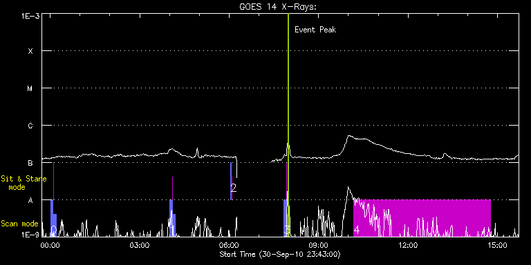 EIS Observation timeline overlay to GOES-Xray curve Code 1" 2" 40" 266" EIS Observations list for this event: STUDY ACRONYM ID DATE OBSERVED DESCRIPTION NOAA# TARGET 0 ARdiag_sns | 19440 | 2010/10/01 00:00:40 | Flux Emergence (Lucie Green) | 1110 | Active Region TIMELINE ID DATE OBSERVED FITS FILE XCEN (+W/-E) YCEN (+N/-S) DUR ----------------------------------------------------------------------------------------------------------------- 19440 | 2010/10/01 00:00:40.000 | eis_l0_20101001_000040.fits.gz | 728.05 | 237.50 | 5m10s 19440 | 2010/10/01 00:06:01.000 | eis_l0_20101001_000601.fits.gz | 747.66 | 237.65 | 10s 19440 | 2010/10/01 00:06:37.000 | eis_l0_20101001_000637.fits.gz | 728.59 | 237.58 | 5m10s 1 ARdiag_sns | 19441 | 2010/10/01 04:00:13 | Flux Emergence (Lucie Green) | 1110 | Active Region TIMELINE ID DATE OBSERVED FITS FILE XCEN (+W/-E) YCEN (+N/-S) DUR ----------------------------------------------------------------------------------------------------------------- 19441 | 2010/10/01 04:00:13.000 | eis_l0_20101001_040013.fits.gz | 747.29 | 241.05 | 5m10s 19441 | 2010/10/01 04:05:34.000 | eis_l0_20101001_040534.fits.gz | 767.05 | 241.05 | 10s 19441 | 2010/10/01 04:06:10.000 | eis_l0_20101001_040610.fits.gz | 747.91 | 241.05 | 5m10s 2 SYNOP005_A | 19432 | 2010/10/01 06:02:40 | | | Quiet Sun TIMELINE ID DATE OBSERVED FITS FILE XCEN (+W/-E) YCEN (+N/-S) DUR ----------------------------------------------------------------------------------------------------------------- 19432 | 2010/10/01 06:02:40.000 | eis_l0_20101001_060240.fits.gz | -19.68 | -0.58 | 1m30s 19432 | 2010/10/01 06:04:21.000 | eis_l0_20101001_060421.fits.gz | -0.10 | -0.50 | 1m30s 3 ARdiag_sns | 19442 | 2010/10/01 07:50:33 | Flux Emergence (Lucie Green) | 1110 | Active Region TIMELINE ID DATE OBSERVED FITS FILE XCEN (+W/-E) YCEN (+N/-S) DUR ----------------------------------------------------------------------------------------------------------------- 19442 | 2010/10/01 07:50:33.000 | eis_l0_20101001_075033.fits.gz | 764.98 | 244.30 | 5m10s 19442 | 2010/10/01 07:55:54.000 | eis_l0_20101001_075554.fits.gz | 784.43 | 244.53 | 10s 19442 | 2010/10/01 07:56:30.000 | eis_l0_20101001_075630.fits.gz | 765.36 | 244.45 | 5m9s 4 SK_CH_DIAG_320x384 | 19392 | 2010/10/01 10:10:20 | HOP 81: Polar Monitoring Campaign duri | | Coronal Hole TIMELINE ID DATE OBSERVED FITS FILE XCEN (+W/-E) YCEN (+N/-S) DUR ----------------------------------------------------------------------------------------------------------------- 19392 | 2010/10/01 10:10:20.000 | eis_l0_20101001_101020.fits.gz | -10.97 | 924.39 | 4h35m37s : Check study information : Download file : View thumbnails For this event, also check for:
