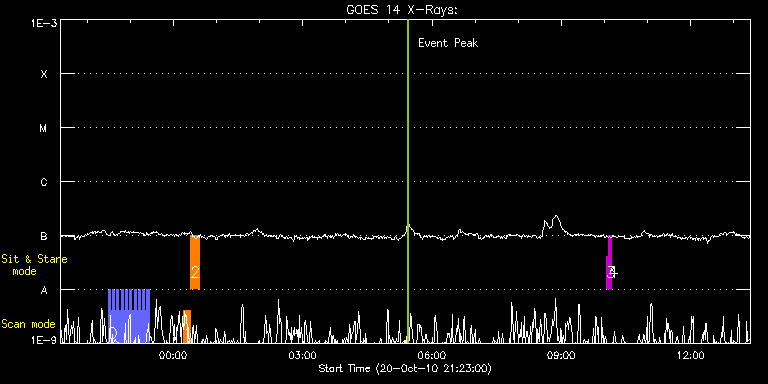 EIS Observation timeline overlay to GOES-Xray curve Code 1" 2" 40" 266" EIS Observations list for this event: STUDY ACRONYM ID DATE OBSERVED DESCRIPTION NOAA# TARGET 0 PRY_slot_context_v3 | 19633 | 2010/10/20 22:29:13 | ar091216-02 AR dynamics and CME watch | 1113 | Active Region TIMELINE ID DATE OBSERVED FITS FILE XCEN (+W/-E) YCEN (+N/-S) DUR ----------------------------------------------------------------------------------------------------------------- 19633 | 2010/10/20 22:29:13.000 | eis_l0_20101020_222913.fits.gz | 203.60 | 195.71 | 2m56s 19633 | 2010/10/20 22:32:13.000 | eis_l0_20101020_223213.fits.gz | 204.06 | 195.55 | 2m56s 19633 | 2010/10/20 22:35:13.000 | eis_l0_20101020_223513.fits.gz | 204.45 | 195.71 | 2m57s 19633 | 2010/10/20 22:38:14.000 | eis_l0_20101020_223814.fits.gz | 204.83 | 195.71 | 2m57s 19633 | 2010/10/20 22:41:15.000 | eis_l0_20101020_224115.fits.gz | 205.30 | 195.63 | 2m56s 19633 | 2010/10/20 22:44:16.000 | eis_l0_20101020_224416.fits.gz | 205.76 | 195.63 | 2m56s 19633 | 2010/10/20 22:47:16.000 | eis_l0_20101020_224716.fits.gz | 206.22 | 195.71 | 2m56s 19633 | 2010/10/20 22:50:17.000 | eis_l0_20101020_225017.fits.gz | 206.53 | 195.71 | 2m56s 19633 | 2010/10/20 22:53:17.000 | eis_l0_20101020_225317.fits.gz | 207.00 | 195.79 | 2m56s 19633 | 2010/10/20 22:56:17.000 | eis_l0_20101020_225617.fits.gz | 207.46 | 195.86 | 2m57s 19633 | 2010/10/20 22:59:18.000 | eis_l0_20101020_225918.fits.gz | 207.92 | 195.71 | 2m56s 19633 | 2010/10/20 23:02:18.000 | eis_l0_20101020_230218.fits.gz | 208.31 | 195.79 | 2m56s 19633 | 2010/10/20 23:05:18.000 | eis_l0_20101020_230518.fits.gz | 208.77 | 195.86 | 2m56s 19633 | 2010/10/20 23:08:18.000 | eis_l0_20101020_230818.fits.gz | 209.24 | 195.79 | 2m57s 19633 | 2010/10/20 23:11:19.000 | eis_l0_20101020_231119.fits.gz | 209.62 | 195.86 | 2m56s 19633 | 2010/10/20 23:14:19.000 | eis_l0_20101020_231419.fits.gz | 210.09 | 195.71 | 2m57s 19633 | 2010/10/20 23:17:20.000 | eis_l0_20101020_231720.fits.gz | 210.47 | 195.79 | 2m56s 19633 | 2010/10/20 23:20:20.000 | eis_l0_20101020_232020.fits.gz | 210.86 | 195.86 | 2m56s 19633 | 2010/10/20 23:23:20.000 | eis_l0_20101020_232320.fits.gz | 211.24 | 195.94 | 2m57s 1 madj_ar | 19634 | 2010/10/21 00:14:11 | Test and Calibration Studies (AR targe | | Active Region TIMELINE ID DATE OBSERVED FITS FILE XCEN (+W/-E) YCEN (+N/-S) DUR ----------------------------------------------------------------------------------------------------------------- 19634 | 2010/10/21 00:14:11.000 | eis_l0_20101021_001411.fits.gz | 233.24 | 196.10 | 9m42s 2 madj_ar_sns_15m | 19635 | 2010/10/21 00:24:24 | Test and Calibration Studies (AR targe | | Active Region TIMELINE ID DATE OBSERVED FITS FILE XCEN (+W/-E) YCEN (+N/-S) DUR ----------------------------------------------------------------------------------------------------------------- 19635 | 2010/10/21 00:24:24.000 | eis_l0_20101021_002424.fits.gz | 234.79 | 196.17 | 12m37s 3 regcal071 | 19636 | 2010/10/21 10:02:13 | Dark exposures, CCD bottom rows (100s | | Engineering TIMELINE ID DATE OBSERVED FITS FILE XCEN (+W/-E) YCEN (+N/-S) DUR ----------------------------------------------------------------------------------------------------------------- 19636 | 2010/10/21 10:02:13.000 | eis_l0_20101021_100213.fits.gz | -150.03 | 497.57 | 3m21s 4 regcal072 | 19637 | 2010/10/21 10:06:01 | Dark exposures, top CCD rows (100s exp | | Engineering TIMELINE ID DATE OBSERVED FITS FILE XCEN (+W/-E) YCEN (+N/-S) DUR ----------------------------------------------------------------------------------------------------------------- 19637 | 2010/10/21 10:06:01.000 | eis_l0_20101021_100601.fits.gz | -149.79 | 1008.49 | 3m22s : Check study information : Download file : View thumbnails For this event, also check for: