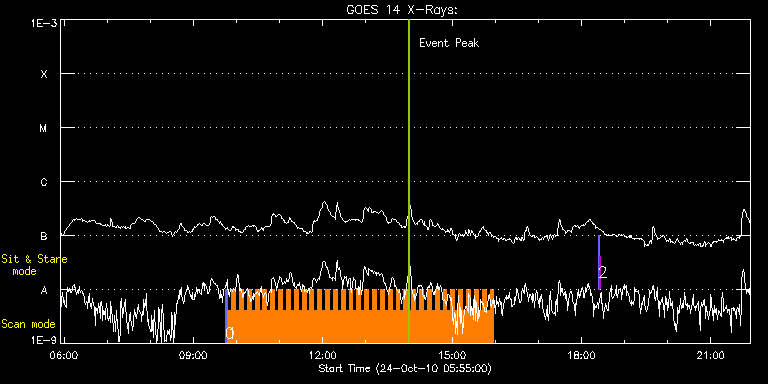 EIS Observation timeline overlay to GOES-Xray curve Code 1" 2" 40" 266" EIS Observations list for this event: STUDY ACRONYM ID DATE OBSERVED DESCRIPTION NOAA# TARGET 0 PRY_slot_context_v3 | 19660 | 2010/10/24 09:44:19 | Active Region 11118 context | 1117 | Active Region TIMELINE ID DATE OBSERVED FITS FILE XCEN (+W/-E) YCEN (+N/-S) DUR ----------------------------------------------------------------------------------------------------------------- 19660 | 2010/10/24 09:44:19.000 | eis_l0_20101024_094419.fits.gz | -238.97 | 274.04 | 2m57s 1 IUU_SCAN_STEPS_002 | 19661 | 2010/10/24 09:47:41 | Active region 11118 dynamics | | Active Region TIMELINE ID DATE OBSERVED FITS FILE XCEN (+W/-E) YCEN (+N/-S) DUR ----------------------------------------------------------------------------------------------------------------- 19661 | 2010/10/24 09:47:41.000 | eis_l0_20101024_094741.fits.gz | -67.77 | 123.96 | 5m23s 19661 | 2010/10/24 09:53:08.000 | eis_l0_20101024_095308.fits.gz | -66.99 | 123.89 | 5m23s 19661 | 2010/10/24 09:58:35.000 | eis_l0_20101024_095835.fits.gz | -66.14 | 123.89 | 5m23s 19661 | 2010/10/24 10:04:01.000 | eis_l0_20101024_100401.fits.gz | -65.53 | 123.89 | 5m24s 19661 | 2010/10/24 10:09:28.000 | eis_l0_20101024_100928.fits.gz | -64.83 | 123.81 | 5m24s 19661 | 2010/10/24 10:14:55.000 | eis_l0_20101024_101455.fits.gz | -64.06 | 123.65 | 5m23s 19661 | 2010/10/24 10:20:22.000 | eis_l0_20101024_102022.fits.gz | -63.21 | 123.73 | 5m23s 19661 | 2010/10/24 10:25:49.000 | eis_l0_20101024_102549.fits.gz | -62.51 | 123.65 | 5m23s 19661 | 2010/10/24 10:31:15.000 | eis_l0_20101024_103115.fits.gz | -61.74 | 123.65 | 5m24s 19661 | 2010/10/24 10:36:43.000 | eis_l0_20101024_103643.fits.gz | -60.97 | 123.65 | 5m23s 19661 | 2010/10/24 10:42:09.000 | eis_l0_20101024_104209.fits.gz | -60.27 | 123.65 | 5m24s 19661 | 2010/10/24 10:47:36.000 | eis_l0_20101024_104736.fits.gz | -59.58 | 123.65 | 5m24s 19661 | 2010/10/24 10:53:03.000 | eis_l0_20101024_105303.fits.gz | -58.80 | 123.65 | 5m23s 19661 | 2010/10/24 10:58:30.000 | eis_l0_20101024_105830.fits.gz | -58.11 | 123.65 | 5m23s 19661 | 2010/10/24 11:03:56.000 | eis_l0_20101024_110356.fits.gz | -57.41 | 123.73 | 5m24s 19661 | 2010/10/24 11:09:23.000 | eis_l0_20101024_110923.fits.gz | -56.56 | 123.65 | 5m24s 19661 | 2010/10/24 11:14:50.000 | eis_l0_20101024_111450.fits.gz | -55.95 | 123.73 | 5m23s 19661 | 2010/10/24 11:20:17.000 | eis_l0_20101024_112017.fits.gz | -55.17 | 123.65 | 5m23s 19661 | 2010/10/24 11:25:44.000 | eis_l0_20101024_112544.fits.gz | -54.48 | 123.73 | 5m23s 19661 | 2010/10/24 11:31:10.000 | eis_l0_20101024_113110.fits.gz | -53.78 | 123.73 | 5m24s 19661 | 2010/10/24 11:36:37.000 | eis_l0_20101024_113637.fits.gz | -52.93 | 123.58 | 5m24s 19661 | 2010/10/24 11:42:04.000 | eis_l0_20101024_114204.fits.gz | -52.24 | 123.65 | 5m23s 19661 | 2010/10/24 11:47:31.000 | eis_l0_20101024_114731.fits.gz | -51.47 | 123.50 | 5m23s 19661 | 2010/10/24 11:52:57.000 | eis_l0_20101024_115257.fits.gz | -50.69 | 123.58 | 5m24s 19661 | 2010/10/24 11:58:24.000 | eis_l0_20101024_115824.fits.gz | -50.08 | 123.58 | 5m24s 19661 | 2010/10/24 12:03:51.000 | eis_l0_20101024_120351.fits.gz | -49.23 | 123.50 | 5m23s 19661 | 2010/10/24 12:09:18.000 | eis_l0_20101024_120918.fits.gz | -48.53 | 123.50 | 5m23s 19661 | 2010/10/24 12:14:45.000 | eis_l0_20101024_121445.fits.gz | -47.76 | 123.35 | 5m1s 19661 | 2010/10/24 12:20:33.000 | eis_l0_20101024_122033.fits.gz | -46.99 | 123.58 | 5m2s 19661 | 2010/10/24 12:25:38.000 | eis_l0_20101024_122538.fits.gz | -46.44 | 123.50 | 5m24s 19661 | 2010/10/24 12:31:05.000 | eis_l0_20101024_123105.fits.gz | -45.60 | 123.50 | 5m23s 19661 | 2010/10/24 12:36:32.000 | eis_l0_20101024_123632.fits.gz | -44.82 | 123.35 | 5m23s 19661 | 2010/10/24 12:41:58.000 | eis_l0_20101024_124158.fits.gz | -44.05 | 123.42 | 5m24s 19661 | 2010/10/24 12:47:25.000 | eis_l0_20101024_124725.fits.gz | -43.36 | 123.35 | 5m24s 19661 | 2010/10/24 12:52:52.000 | eis_l0_20101024_125252.fits.gz | -42.66 | 123.35 | 5m23s 19661 | 2010/10/24 12:58:19.000 | eis_l0_20101024_125819.fits.gz | -41.89 | 123.42 | 5m23s 19661 | 2010/10/24 13:03:46.000 | eis_l0_20101024_130346.fits.gz | -41.19 | 123.42 | 5m23s 19661 | 2010/10/24 13:09:12.000 | eis_l0_20101024_130912.fits.gz | -40.42 | 123.42 | 5m24s 19661 | 2010/10/24 13:14:39.000 | eis_l0_20101024_131439.fits.gz | -39.57 | 123.35 | 5m24s 19661 | 2010/10/24 13:20:06.000 | eis_l0_20101024_132006.fits.gz | -38.95 | 123.27 | 5m23s 19661 | 2010/10/24 13:25:33.000 | eis_l0_20101024_132533.fits.gz | -38.26 | 123.35 | 5m23s 19661 | 2010/10/24 13:30:59.000 | eis_l0_20101024_133059.fits.gz | -37.48 | 123.27 | 5m24s 19661 | 2010/10/24 13:36:26.000 | eis_l0_20101024_133626.fits.gz | -36.56 | 123.19 | 5m24s 19661 | 2010/10/24 13:41:53.000 | eis_l0_20101024_134153.fits.gz | -35.94 | 123.35 | 5m23s 19661 | 2010/10/24 13:47:20.000 | eis_l0_20101024_134720.fits.gz | -35.17 | 123.19 | 5m23s 19661 | 2010/10/24 13:52:47.000 | eis_l0_20101024_135247.fits.gz | -34.39 | 123.19 | 5m23s 19661 | 2010/10/24 13:58:13.000 | eis_l0_20101024_135813.fits.gz | -33.78 | 123.27 | 5m24s 19661 | 2010/10/24 14:03:40.000 | eis_l0_20101024_140340.fits.gz | -32.93 | 123.11 | 5m24s 19661 | 2010/10/24 14:09:07.000 | eis_l0_20101024_140907.fits.gz | -32.31 | 123.19 | 5m23s 19661 | 2010/10/24 14:14:34.000 | eis_l0_20101024_141434.fits.gz | -31.46 | 123.19 | 5m23s 19661 | 2010/10/24 14:20:00.000 | eis_l0_20101024_142000.fits.gz | -30.76 | 123.27 | 5m24s 19661 | 2010/10/24 14:25:27.000 | eis_l0_20101024_142527.fits.gz | -29.99 | 123.19 | 5m24s 19661 | 2010/10/24 14:30:54.000 | eis_l0_20101024_143054.fits.gz | -29.30 | 123.35 | 5m23s 19661 | 2010/10/24 14:36:21.000 | eis_l0_20101024_143621.fits.gz | -28.45 | 123.19 | 5m23s 19661 | 2010/10/24 14:41:48.000 | eis_l0_20101024_144148.fits.gz | -27.75 | 123.27 | 5m23s 19661 | 2010/10/24 14:47:14.000 | eis_l0_20101024_144714.fits.gz | -27.06 | 123.19 | 5m24s 19661 | 2010/10/24 14:52:41.000 | eis_l0_20101024_145241.fits.gz | -26.28 | 123.11 