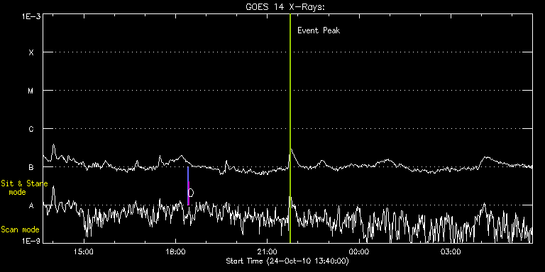 EIS Observation timeline overlay to GOES-Xray curve Code 1" 2" 40" 266" EIS Observations list for this event: STUDY ACRONYM ID DATE OBSERVED DESCRIPTION NOAA# TARGET 0 SYNOP005_A | 19665 | 2010/10/24 18:23:19 | Sensitivity monitoring during XRT syno | | Quiet Sun TIMELINE ID DATE OBSERVED FITS FILE XCEN (+W/-E) YCEN (+N/-S) DUR ----------------------------------------------------------------------------------------------------------------- 19665 | 2010/10/24 18:23:19.000 | eis_l0_20101024_182319.fits.gz | -19.44 | -100.65 | 1m30s 19665 | 2010/10/24 18:25:00.000 | eis_l0_20101024_182500.fits.gz | -0.02 | -100.58 | 1m30s : Check study information : Download file : View thumbnails For this event, also check for: