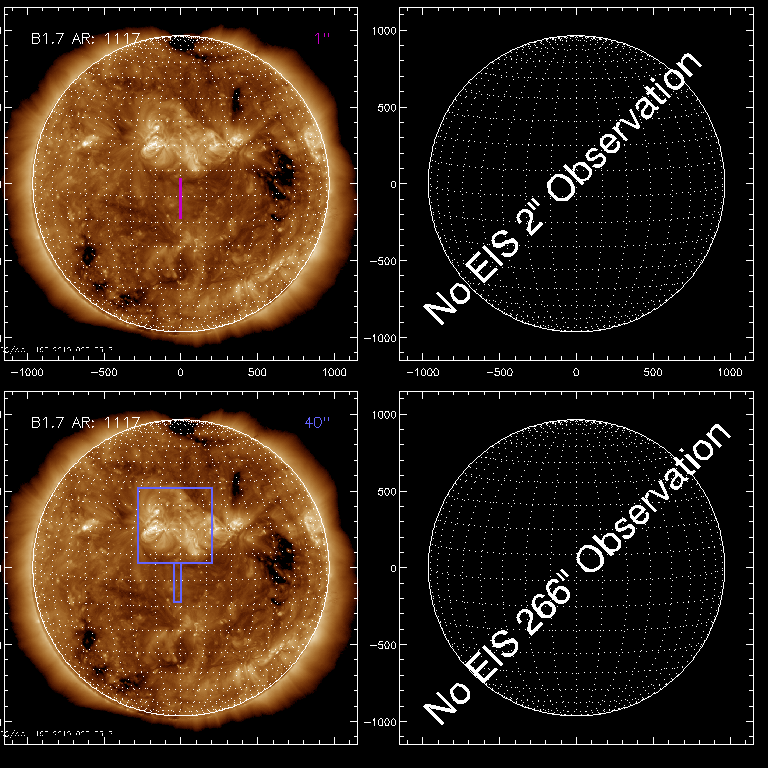 EIS Observation timeline overlay to GOES-Xray curve Code 1" 2" 40" 266" EIS Observations list for this event: STUDY ACRONYM ID DATE OBSERVED DESCRIPTION NOAA# TARGET 0 SYNOP005_A | 19669 | 2010/10/25 05:55:33 | Sensitivity monitoring during XRT syno | | Quiet Sun TIMELINE ID DATE OBSERVED FITS FILE XCEN (+W/-E) YCEN (+N/-S) DUR ----------------------------------------------------------------------------------------------------------------- 19669 | 2010/10/25 05:55:33.000 | eis_l0_20101025_055533.fits.gz | -19.44 | -100.58 | 1m30s 19669 | 2010/10/25 05:57:14.000 | eis_l0_20101025_055714.fits.gz | -0.02 | -100.42 | 1m30s 1 PRY_slot_context_v3 | 19667 | 2010/10/25 10:20:32 | Active Region 11118. Transient brighte | 1117 | Active Region TIMELINE ID DATE OBSERVED FITS FILE XCEN (+W/-E) YCEN (+N/-S) DUR ----------------------------------------------------------------------------------------------------------------- 19667 | 2010/10/25 10:20:32.000 | eis_l0_20101025_102032.fits.gz | -34.65 | 272.03 | 2m56s : Check study information : Download file : View thumbnails For this event, also check for: