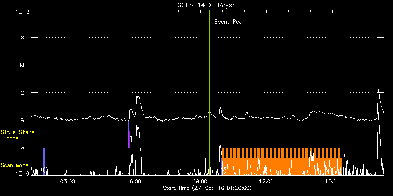 EIS Observation timeline overlay to GOES-Xray curve Code 1" 2" 40" 266" EIS Observations list for this event: STUDY ACRONYM ID DATE OBSERVED DESCRIPTION NOAA# TARGET 0 PRY_slot_context_v3 | 19682 | 2010/10/27 01:52:56 | Active Region 11117. Transient brighte | 1117 | Active Region TIMELINE ID DATE OBSERVED FITS FILE XCEN (+W/-E) YCEN (+N/-S) DUR ----------------------------------------------------------------------------------------------------------------- 19682 | 2010/10/27 01:52:56.000 | eis_l0_20101027_015256.fits.gz | 211.86 | 263.84 | 2m56s 1 SYNOP005_A | 19676 | 2010/10/27 05:46:13 | Sensitivity monitoring during XRT syno | | Quiet Sun TIMELINE ID DATE OBSERVED FITS FILE XCEN (+W/-E) YCEN (+N/-S) DUR ----------------------------------------------------------------------------------------------------------------- 19676 | 2010/10/27 05:46:13.000 | eis_l0_20101027_054613.fits.gz | -69.44 | -50.42 | 1m30s 19676 | 2010/10/27 05:47:54.000 | eis_l0_20101027_054754.fits.gz | -49.94 | -50.42 | 1m30s 2 PRY_slot_context_v3 | 19677 | 2010/10/27 09:55:33 | Active Region 11117 context | 1117 | Active Region TIMELINE ID DATE OBSERVED FITS FILE XCEN (+W/-E) YCEN (+N/-S) DUR ----------------------------------------------------------------------------------------------------------------- 19677 | 2010/10/27 09:55:33.000 | eis_l0_20101027_095533.fits.gz | 278.22 | 266.00 | 2m57s 3 IUU_SCAN_STEPS_002 | 19678 | 2010/10/27 09:58:55 | Active Region 11117 dynamics | | Active Region TIMELINE ID DATE OBSERVED FITS FILE XCEN (+W/-E) YCEN (+N/-S) DUR ----------------------------------------------------------------------------------------------------------------- 19678 | 2010/10/27 09:58:55.000 | eis_l0_20101027_095855.fits.gz | 317.71 | 199.00 | 5m23s 19678 | 2010/10/27 10:04:22.000 | eis_l0_20101027_100422.fits.gz | 318.40 | 199.08 | 5m23s 19678 | 2010/10/27 10:09:49.000 | eis_l0_20101027_100949.fits.gz | 319.18 | 199.16 | 5m23s 19678 | 2010/10/27 10:15:16.000 | eis_l0_20101027_101516.fits.gz | 319.95 | 199.00 | 5m23s 19678 | 2010/10/27 10:20:42.000 | eis_l0_20101027_102042.fits.gz | 320.72 | 199.08 | 5m24s 19678 | 2010/10/27 10:26:09.000 | eis_l0_20101027_102609.fits.gz | 321.34 | 199.08 | 5m24s 19678 | 2010/10/27 10:31:36.000 | eis_l0_20101027_103136.fits.gz | 322.11 | 199.31 | 5m23s 19678 | 2010/10/27 10:37:02.000 | eis_l0_20101027_103702.fits.gz | 322.81 | 199.16 | 5m24s 19678 | 2010/10/27 10:42:29.000 | eis_l0_20101027_104229.fits.gz | 323.58 | 199.00 | 5m24s 19678 | 2010/10/27 10:47:56.000 | eis_l0_20101027_104756.fits.gz | 324.35 | 199.16 | 5m23s 19678 | 2010/10/27 10:53:23.000 | eis_l0_20101027_105323.fits.gz | 325.05 | 199.16 | 5m23s 19678 | 2010/10/27 10:58:50.000 | eis_l0_20101027_105850.fits.gz | 325.74 | 199.16 | 5m24s 19678 | 2010/10/27 11:04:17.000 | eis_l0_20101027_110417.fits.gz | 326.59 | 199.24 | 5m23s 19678 | 2010/10/27 11:09:44.000 | eis_l0_20101027_110944.fits.gz | 327.21 | 199.39 | 5m23s 19678 | 2010/10/27 11:15:11.000 | eis_l0_20101027_111511.fits.gz | 327.91 | 199.31 | 5m23s 19678 | 2010/10/27 11:20:37.000 | eis_l0_20101027_112037.fits.gz | 328.76 | 199.47 | 5m24s 19678 | 2010/10/27 11:26:04.000 | eis_l0_20101027_112604.fits.gz | 329.53 | 199.39 | 5m24s 19678 | 2010/10/27 11:31:31.000 | eis_l0_20101027_113131.fits.gz | 330.15 | 199.62 | 5m23s 19678 | 2010/10/27 11:36:58.000 | eis_l0_20101027_113658.fits.gz | 330.92 | 199.54 | 5m23s 19678 | 2010/10/27 11:42:24.000 | eis_l0_20101027_114224.fits.gz | 331.69 | 199.54 | 5m24s 19678 | 2010/10/27 11:47:51.000 | eis_l0_20101027_114751.fits.gz | 332.46 | 199.54 | 5m24s 19678 | 2010/10/27 11:53:18.000 | eis_l0_20101027_115318.fits.gz | 333.16 | 199.54 | 5m23s 19678 | 2010/10/27 11:58:45.000 | eis_l0_20101027_115845.fits.gz | 333.85 | 199.62 | 5m23s 19678 | 2010/10/27 12:04:12.000 | eis_l0_20101027_120412.fits.gz | 334.63 | 199.62 | 5m23s 19678 | 2010/10/27 12:09:38.000 | eis_l0_20101027_120938.fits.gz | 335.32 | 199.62 | 5m24s 19678 | 2010/10/27 12:15:05.000 | eis_l0_20101027_121505.fits.gz | 336.09 | 199.70 | 5m24s 19678 | 2010/10/27 12:20:32.000 | eis_l0_20101027_122032.fits.gz | 336.79 | 199.62 | 5m24s 19678 | 2010/10/27 12:25:59.000 | eis_l0_20101027_122559.fits.gz | 337.48 | 199.78 | 5m23s 19678 | 2010/10/27 12:31:25.000 | eis_l0_20101027_123125.fits.gz | 338.33 | 199.78 | 5m24s 19678 | 2010/10/27 12:36:52.000 | eis_l0_20101027_123652.fits.gz | 339.03 | 199.85 | 5m24s 19678 | 2010/10/27 12:42:19.000 | eis_l0_20101027_124219.fits.gz | 339.80 | 199.70 | 5m23s 19678 | 2010/10/27 12:47:46.000 | eis_l0_20101027_124746.fits.gz | 340.50 | 199.93 | 5m23s 19678 | 2010/10/27 12:53:13.000 | eis_l0_20101027_125313.fits.gz | 341.19 | 199.93 | 5m23s 19678 | 2010/10/27 12:58:39.000 | eis_l0_20101027_125839.fits.gz | 341.96 | 199.93 | 5m24s 19678 | 2010/10/27 13:04:06.000 | eis_l0_20101027_130406.fits.gz | 342.74 | 200.01 | 5m23s 19678 | 2010/10/27 13:09:33.000 | eis_l0_20101027_130933.fits.gz | 343.36 | 200.09 | 5m23s 19678 | 2010/10/27 13:15:00.000 | eis_l0_20101027_131500.fits.gz | 344.13 | 200.09 | 5m23s 19678 | 2010/10/27 13:20:26.000 | eis_l0_20101027_132026.fits.gz | 344.90 | 200.09 | 5m24s 19678 | 2010/10/27 13:25:53.000 | eis_l0_20101027_132553.fits.gz | 345.67 | 200.01 | 5m24s 19678 | 2010/10/27 13:31:20.000 | eis_l0_20101027_133120.fits.gz | 346.29 | 200.09 | 5m23s 19678 | 2010/10/27 13:36:47.000 | eis_l0_20101027_133647.fits.gz | 347.06 | 200.09 | 5m23s 19678 | 2010/10/27 13:42:13.000 | eis_l0_20101027_134213.fits.gz | 347.84 | 200.01 | 5m24s 19678 | 2010/10/27 13:47:40.000 | eis_l0_20101027_134740.fits.gz | 348.53 | 200.16 | 5m24s 19678 | 2010/10/27 13:53:07.000 | eis_l0_20101027_135307.fits.gz | 349.30 | 200.24 | 5m23s 19678 | 2010/10/27 13:58:34.000 | eis_l0_20101027_135834.fits.gz | 349.92 | 200.24 | 5m23s 19678 | 2010/10/27 14:04:01.000 | eis_l0_20101027_140401.fits.gz | 350.69 | 200.32 | 5m23s 19678 | 2010/10/27 14:09:27.000 | eis_l0_20101027_140927.fits.gz | 351.54 | 200.24 | 5m24s 19678 | 2010/10/27 14:14:54.000 | eis_l0_20101027_1414