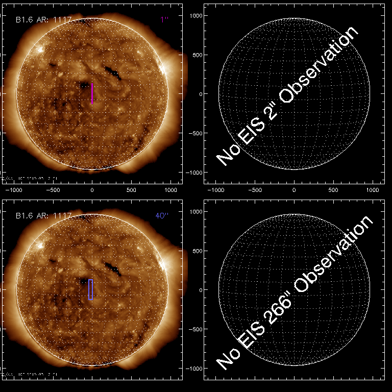 EIS Observation timeline overlay to GOES-Xray curve Code 1" 2" 40" 266" EIS Observations list for this event: STUDY ACRONYM ID DATE OBSERVED DESCRIPTION NOAA# TARGET 0 SYNOP005_A | 19712 | 2010/10/31 18:06:13 | | | Quiet Sun TIMELINE ID DATE OBSERVED FITS FILE XCEN (+W/-E) YCEN (+N/-S) DUR ----------------------------------------------------------------------------------------------------------------- 19712 | 2010/10/31 18:06:13.000 | eis_l0_20101031_180613.fits.gz | -19.60 | -0.58 | 1m31s 19712 | 2010/10/31 18:07:55.000 | eis_l0_20101031_180755.fits.gz | -0.02 | -0.58 | 1m30s : Check study information : Download file : View thumbnails For this event, also check for:
