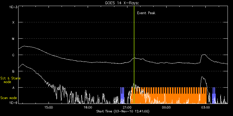 EIS Observation timeline overlay to GOES-Xray curve Code 1" 2" 40" 266" EIS Observations list for this event: STUDY ACRONYM ID DATE OBSERVED DESCRIPTION NOAA# TARGET 0 PRY_slot_context_v3 | 19725 | 2010/11/03 20:30:13 | Active region studies | 1120 | Active Region TIMELINE ID DATE OBSERVED FITS FILE XCEN (+W/-E) YCEN (+N/-S) DUR ----------------------------------------------------------------------------------------------------------------- 19725 | 2010/11/03 20:30:13.000 | eis_l0_20101103_203013.fits.gz | -305.62 | 534.83 | 2m57s 19725 | 2010/11/03 20:33:14.000 | eis_l0_20101103_203314.fits.gz | -305.23 | 534.98 | 2m56s 19725 | 2010/11/03 20:36:14.000 | eis_l0_20101103_203614.fits.gz | -305.00 | 534.90 | 2m57s 19725 | 2010/11/03 20:39:15.000 | eis_l0_20101103_203915.fits.gz | -304.61 | 534.90 | 2m56s 19725 | 2010/11/03 20:42:15.000 | eis_l0_20101103_204215.fits.gz | -304.38 | 534.90 | 2m57s 1 IUU_SCAN_STEPS_002 | 19724 | 2010/11/03 21:15:34 | Active region studies | 1120 | Active Region TIMELINE ID DATE OBSERVED FITS FILE XCEN (+W/-E) YCEN (+N/-S) DUR ----------------------------------------------------------------------------------------------------------------- 19724 | 2010/11/03 21:15:34.000 | eis_l0_20101103_211534.fits.gz | -287.01 | 534.75 | 5m23s 19724 | 2010/11/03 21:21:01.000 | eis_l0_20101103_212101.fits.gz | -286.47 | 534.83 | 5m23s 19724 | 2010/11/03 21:26:27.000 | eis_l0_20101103_212627.fits.gz | -285.85 | 534.75 | 5m24s 19724 | 2010/11/03 21:31:54.000 | eis_l0_20101103_213154.fits.gz | -285.23 | 534.75 | 5m24s 19724 | 2010/11/03 21:37:21.000 | eis_l0_20101103_213721.fits.gz | -284.77 | 534.83 | 5m23s 19724 | 2010/11/03 21:42:48.000 | eis_l0_20101103_214248.fits.gz | -284.00 | 534.75 | 5m23s 19724 | 2010/11/03 21:48:14.000 | eis_l0_20101103_214814.fits.gz | -283.61 | 534.67 | 5m2s 19724 | 2010/11/03 21:53:41.000 | eis_l0_20101103_215341.fits.gz | -282.92 | 534.67 | 5m24s 19724 | 2010/11/03 21:59:08.000 | eis_l0_20101103_215908.fits.gz | -282.38 | 534.83 | 5m23s 19724 | 2010/11/03 22:04:35.000 | eis_l0_20101103_220435.fits.gz | -281.76 | 534.75 | 5m23s 19724 | 2010/11/03 22:10:02.000 | eis_l0_20101103_221002.fits.gz | -281.30 | 534.75 | 5m23s 19724 | 2010/11/03 22:15:28.000 | eis_l0_20101103_221528.fits.gz | -280.60 | 534.67 | 5m24s 19724 | 2010/11/03 22:20:55.000 | eis_l0_20101103_222055.fits.gz | -280.14 | 534.75 | 5m24s 19724 | 2010/11/03 22:26:22.000 | eis_l0_20101103_222622.fits.gz | -279.44 | 534.83 | 5m23s 19724 | 2010/11/03 22:31:49.000 | eis_l0_20101103_223149.fits.gz | -278.75 | 534.59 | 5m23s 19724 | 2010/11/03 22:37:15.000 | eis_l0_20101103_223715.fits.gz | -278.28 | 534.75 | 5m24s 19724 | 2010/11/03 22:42:42.000 | eis_l0_20101103_224242.fits.gz | -277.74 | 534.75 | 5m24s 19724 | 2010/11/03 22:48:09.000 | eis_l0_20101103_224809.fits.gz | -277.05 | 534.67 | 5m23s 19724 | 2010/11/03 22:53:36.000 | eis_l0_20101103_225336.fits.gz | -276.58 | 534.67 | 5m23s 19724 | 2010/11/03 22:59:02.000 | eis_l0_20101103_225902.fits.gz | -275.89 | 534.75 | 5m24s 19724 | 2010/11/03 23:04:51.000 | eis_l0_20101103_230451.fits.gz | -275.35 | 534.59 | 5m2s 19724 | 2010/11/03 23:09:56.000 | eis_l0_20101103_230956.fits.gz | -274.73 | 534.52 | 5m24s 19724 | 2010/11/03 23:15:23.000 | eis_l0_20101103_231523.fits.gz | -274.19 | 534.52 | 5m23s 19724 | 2010/11/03 23:20:50.000 | eis_l0_20101103_232050.fits.gz | -273.57 | 534.52 | 5m23s 19724 | 2010/11/03 23:26:16.000 | eis_l0_20101103_232616.fits.gz | -273.03 | 534.59 | 5m24s 19724 | 2010/11/03 23:31:43.000 | eis_l0_20101103_233143.fits.gz | -272.33 | 534.59 | 5m24s 19724 | 2010/11/03 23:37:10.000 | eis_l0_20101103_233710.fits.gz | -271.72 | 534.52 | 5m23s 19724 | 2010/11/03 23:42:37.000 | eis_l0_20101103_234237.fits.gz | -271.25 | 534.52 | 5m23s 19724 | 2010/11/03 23:48:04.000 | eis_l0_20101103_234804.fits.gz | -270.64 | 534.52 | 5m23s 19724 | 2010/11/03 23:53:30.000 | eis_l0_20101103_235330.fits.gz | -270.10 | 534.44 | 5m24s 19724 | 2010/11/03 23:58:57.000 | eis_l0_20101103_235857.fits.gz | -269.48 | 534.67 | 5m23s 19724 | 2010/11/04 00:04:24.000 | eis_l0_20101104_000424.fits.gz | -268.86 | 534.59 | 5m23s 19724 | 2010/11/04 00:09:51.000 | eis_l0_20101104_000951.fits.gz | -268.32 | 534.44 | 5m23s 19724 | 2010/11/04 00:15:17.000 | eis_l0_20101104_001517.fits.gz | -267.70 | 534.59 | 5m24s 19724 | 2010/11/04 00:20:44.000 | eis_l0_20101104_002044.fits.gz | -267.08 | 534.52 | 5m23s 19724 | 2010/11/04 00:26:11.000 | eis_l0_20101104_002611.fits.gz | -266.46 | 534.52 | 5m23s 19724 | 2010/11/04 00:31:38.000 | eis_l0_20101104_003138.fits.gz | -265.92 | 534.44 | 5m23s 19724 | 2010/11/04 00:37:05.000 | eis_l0_20101104_003705.fits.gz | -265.30 | 534.44 | 5m23s 19724 | 2010/11/04 00:42:31.000 | eis_l0_20101104_004231.fits.gz | -264.77 | 534.36 | 5m24s 19724 | 2010/11/04 00:47:58.000 | eis_l0_20101104_004758.fits.gz | -264.22 | 534.44 | 5m24s 19724 | 2010/11/04 00:53:25.000 | eis_l0_20101104_005325.fits.gz | -263.53 | 534.44 | 5m23s 19724 | 2010/11/04 00:58:52.000 | eis_l0_20101104_005852.fits.gz | -262.99 | 534.36 | 5m23s 19724 | 2010/11/04 01:04:18.000 | eis_l0_20101104_010418.fits.gz | -262.45 | 534.28 | 5m24s 19724 | 2010/11/04 01:09:45.000 | eis_l0_20101104_010945.fits.gz | -261.83 | 534.36 | 5m24s 19724 | 2010/11/04 01:15:12.000 | eis_l0_20101104_011512.fits.gz | -261.21 | 534.44 | 5m23s 19724 | 2010/11/04 01:20:39.000 | eis_l0_20101104_012039.fits.gz | -260.67 | 534.28 | 5m23s 19724 | 2010/11/04 01:26:05.000 | eis_l0_20101104_012605.fits.gz | -260.05 | 534.28 | 5m24s 19724 | 2010/11/04 01:31:32.000 | eis_l0_20101104_013132.fits.gz | -259.51 | 534.36 | 5m24s 19724 | 2010/11/04 01:36:59.000 | eis_l0_20101104_013659.fits.gz | -258.74 | 534.44 | 5m24s 19724 | 2010/11/04 01:42:26.000 | eis_l0_20101104_014226.fits.gz | -258.28 | 534.36 | 5m23s 19724 | 2010/11/04 01:47:52.000 | eis_l0_20101104_014752.fits.gz | -257.73 | 534.44 | 5m24s 19724 | 2010/11/04 01:53:19.000 | eis_l0_20101104_015319.fits.gz | -257.04 | 534.36 | 5m24s 19724 | 2010/11/04 01:58:46.000 | e