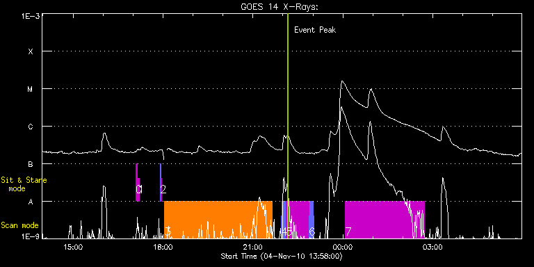 EIS Observation timeline overlay to GOES-Xray curve