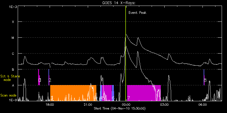 EIS Observation timeline overlay to GOES-Xray curve
