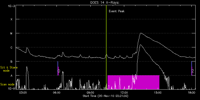 EIS Observation timeline overlay to GOES-Xray curve Code 1" 2" 40" 266" EIS Observations list for this event: STUDY ACRONYM ID DATE OBSERVED DESCRIPTION NOAA# TARGET 0 SYNOP005_A | 19741 | 2010/11/05 06:05:19 | | | Quiet Sun TIMELINE ID DATE OBSERVED FITS FILE XCEN (+W/-E) YCEN (+N/-S) DUR ----------------------------------------------------------------------------------------------------------------- 19741 | 2010/11/05 06:05:19.000 | eis_l0_20101105_060519.fits.gz | -19.52 | -0.50 | 1m30s 19741 | 2010/11/05 06:07:00.000 | eis_l0_20101105_060700.fits.gz | -0.02 | -0.50 | 1m30s 1 SK_CH_DIAG_320x384 | 19731 | 2010/11/05 10:31:39 | HOP81: Polar Monitoring Campaign durin | | Coronal Hole TIMELINE ID DATE OBSERVED FITS FILE XCEN (+W/-E) YCEN (+N/-S) DUR ----------------------------------------------------------------------------------------------------------------- 19731 | 2010/11/05 10:31:39.000 | eis_l0_20101105_103139.fits.gz | 0.23 | -940.37 | 4h35m38s 2 SYNOP005_A | 19742 | 2010/11/05 17:59:33 | | | Quiet Sun TIMELINE ID DATE OBSERVED FITS FILE XCEN (+W/-E) YCEN (+N/-S) DUR ----------------------------------------------------------------------------------------------------------------- 19742 | 2010/11/05 17:59:33.000 | eis_l0_20101105_175933.fits.gz | -19.68 | -0.35 | 1m30s 19742 | 2010/11/05 18:01:13.000 | eis_l0_20101105_180113.fits.gz | -0.02 | -0.42 | 1m30s : Check study information : Download file : View thumbnails For this event, also check for: