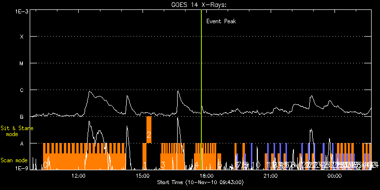 EIS Observation timeline overlay to GOES-Xray curve Code 1" 2" 40" 266" EIS Observations list for this event: STUDY ACRONYM ID DATE OBSERVED DESCRIPTION NOAA# TARGET 0 HH_Flare_180x160_v2 | 19781 | 2010/11/10 10:20:14 | Flare hunting | 1121 | Flare TIMELINE ID DATE OBSERVED FITS FILE XCEN (+W/-E) YCEN (+N/-S) DUR ----------------------------------------------------------------------------------------------------------------- 19781 | 2010/11/10 10:20:14.000 | eis_l0_20101110_102014.fits.gz | -176.18 | -406.13 | 5m47s 19781 | 2010/11/10 10:26:03.000 | eis_l0_20101110_102603.fits.gz | -175.25 | -406.20 | 5m47s 19781 | 2010/11/10 10:31:53.000 | eis_l0_20101110_103153.fits.gz | -174.48 | -406.20 | 5m46s 19781 | 2010/11/10 10:37:42.000 | eis_l0_20101110_103742.fits.gz | -173.71 | -406.28 | 5m47s 19781 | 2010/11/10 10:43:32.000 | eis_l0_20101110_104332.fits.gz | -172.86 | -406.20 | 5m46s 19781 | 2010/11/10 10:49:21.000 | eis_l0_20101110_104921.fits.gz | -171.93 | -406.28 | 5m46s 19781 | 2010/11/10 10:55:10.000 | eis_l0_20101110_105510.fits.gz | -171.31 | -406.28 | 5m46s 19781 | 2010/11/10 11:00:59.000 | eis_l0_20101110_110059.fits.gz | -170.39 | -406.20 | 5m46s 19781 | 2010/11/10 11:06:48.000 | eis_l0_20101110_110648.fits.gz | -169.54 | -406.28 | 5m46s 19781 | 2010/11/10 11:12:37.000 | eis_l0_20101110_111237.fits.gz | -168.76 | -406.36 | 5m46s 19781 | 2010/11/10 11:18:26.000 | eis_l0_20101110_111826.fits.gz | -167.99 | -406.36 | 5m47s 19781 | 2010/11/10 11:24:16.000 | eis_l0_20101110_112416.fits.gz | -167.06 | -406.36 | 5m46s 19781 | 2010/11/10 11:30:05.000 | eis_l0_20101110_113005.fits.gz | -166.29 | -406.28 | 5m46s 19781 | 2010/11/10 11:35:54.000 | eis_l0_20101110_113554.fits.gz | -165.52 | -406.36 | 5m47s 19781 | 2010/11/10 11:41:44.000 | eis_l0_20101110_114144.fits.gz | -164.59 | -406.28 | 5m47s 19781 | 2010/11/10 11:47:33.000 | eis_l0_20101110_114733.fits.gz | -163.90 | -406.20 | 5m47s 19781 | 2010/11/10 11:53:22.000 | eis_l0_20101110_115322.fits.gz | -163.05 | -406.20 | 5m47s 19781 | 2010/11/10 11:59:12.000 | eis_l0_20101110_115912.fits.gz | -162.20 | -406.28 | 5m46s 19781 | 2010/11/10 12:05:00.000 | eis_l0_20101110_120500.fits.gz | -161.35 | -406.20 | 5m47s 19781 | 2010/11/10 12:10:49.000 | eis_l0_20101110_121049.fits.gz | -160.57 | -406.28 | 5m47s 19781 | 2010/11/10 12:16:38.000 | eis_l0_20101110_121638.fits.gz | -159.73 | -406.36 | 5m47s 19781 | 2010/11/10 12:22:28.000 | eis_l0_20101110_122228.fits.gz | -158.95 | -406.44 | 5m46s 19781 | 2010/11/10 12:28:17.000 | eis_l0_20101110_122817.fits.gz | -158.18 | -406.28 | 5m47s 19781 | 2010/11/10 12:34:07.000 | eis_l0_20101110_123407.fits.gz | -157.41 | -406.20 | 5m46s 19781 | 2010/11/10 12:39:56.000 | eis_l0_20101110_123956.fits.gz | -156.56 | -406.28 | 5m47s 19781 | 2010/11/10 12:45:46.000 | eis_l0_20101110_124546.fits.gz | -155.55 | -406.44 | 5m46s 19781 | 2010/11/10 12:51:35.000 | eis_l0_20101110_125135.fits.gz | -154.78 | -406.36 | 5m47s 19781 | 2010/11/10 12:57:25.000 | eis_l0_20101110_125725.fits.gz | -154.01 | -406.36 | 5m46s 19781 | 2010/11/10 13:03:13.000 | eis_l0_20101110_130313.fits.gz | -153.16 | -406.36 | 5m47s 19781 | 2010/11/10 13:09:03.000 | eis_l0_20101110_130903.fits.gz | -152.23 | -406.28 | 5m46s 19781 | 2010/11/10 13:14:51.000 | eis_l0_20101110_131451.fits.gz | -151.46 | -406.36 | 5m47s 19781 | 2010/11/10 13:20:40.000 | eis_l0_20101110_132040.fits.gz | -150.69 | -406.28 | 5m47s 19781 | 2010/11/10 13:26:30.000 | eis_l0_20101110_132630.fits.gz | -149.91 | -406.20 | 5m46s 19781 | 2010/11/10 13:32:19.000 | eis_l0_20101110_133219.fits.gz | -148.99 | -406.44 | 5m47s 19781 | 2010/11/10 13:38:08.000 | eis_l0_20101110_133808.fits.gz | -148.14 | -406.28 | 5m47s 19781 | 2010/11/10 13:43:58.000 | eis_l0_20101110_134358.fits.gz | -147.44 | -406.20 | 5m47s 19781 | 2010/11/10 13:49:48.000 | eis_l0_20101110_134948.fits.gz | -146.59 | -406.28 | 5m46s 19781 | 2010/11/10 13:55:37.000 | eis_l0_20101110_135537.fits.gz | -145.82 | -406.28 | 5m46s 19781 | 2010/11/10 14:01:26.000 | eis_l0_20101110_140126.fits.gz | -144.97 | -406.36 | 5m46s 19781 | 2010/11/10 14:07:15.000 | eis_l0_20101110_140715.fits.gz | -144.12 | -406.36 | 5m46s 1 madj_ar | 19774 | 2010/11/10 15:00:14 | HOP0174 Ellerman Bombs and Emerging Fl | 1121 | Active Region TIMELINE ID DATE OBSERVED FITS FILE XCEN (+W/-E) YCEN (+N/-S) DUR ----------------------------------------------------------------------------------------------------------------- 19774 | 2010/11/10 15:00:14.000 | eis_l0_20101110_150014.fits.gz | -135.38 | -406.44 | 9m42s 2 madj_ar_sns_15m | 19775 | 2010/11/10 15:11:14 | HOP0174 Ellerman Bombs and Emerging Fl | | Active Region TIMELINE ID DATE OBSERVED FITS FILE XCEN (+W/-E) YCEN (+N/-S) DUR ----------------------------------------------------------------------------------------------------------------- 19775 | 2010/11/10 15:11:14.000 | eis_l0_20101110_151114.fits.gz | -133.84 | -406.28 | 12m36s 3 madj_ar_small | 19776 | 2010/11/10 15:50:14 | HOP0174 Ellerman Bombs and Emerging Fl | 1121 | Active Region TIMELINE ID DATE OBSERVED FITS FILE XCEN (+W/-E) YCEN (+N/-S) DUR ----------------------------------------------------------------------------------------------------------------- 19776 | 2010/11/10 15:50:14.000 | eis_l0_20101110_155014.fits.gz | -128.27 | -406.36 | 3m18s 19776 | 2010/11/10 15:53:35.000 | eis_l0_20101110_155335.fits.gz | -127.81 | -406.44 | 3m19s 19776 | 2010/11/10 15:56:57.000 | eis_l0_20101110_155657.fits.gz | -127.35 | -406.28 | 3m18s 19776 | 2010/11/10 16:00:18.000 | eis_l0_20101110_160018.fits.gz | -126.88 | -406.36 | 3m19s 19776 | 2010/11/10 16:03:40.000 | eis_l0_20101110_160340.fits.gz | -126.34 | -406.36 | 3m18s 19776 | 2010/11/10 16:07:01.000 | eis_l0_20101110_160701.fits.gz | -125.96 | -406.36 | 3m18s 19776 | 2010/11/10 16:10:22.000 | eis_l0_20101110_161022.fits.gz | -125.42 | -406.36 | 3m19s 19776 | 2010/11/10 16:13:44.000 | eis_l0_20101110_161344.fits.gz | -124.95 | -406.28 | 3m18s 19776 | 2010/11/10 16:17:05.000 | eis_l0_20101110_161705.fi