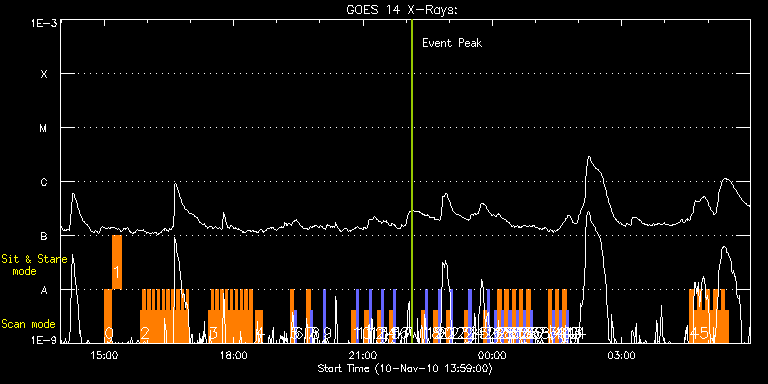 EIS Observation timeline overlay to GOES-Xray curve Code 1" 2" 40" 266" EIS Observations list for this event: STUDY ACRONYM ID DATE OBSERVED DESCRIPTION NOAA# TARGET 0 madj_ar | 19774 | 2010/11/10 15:00:14 | HOP0174 Ellerman Bombs and Emerging Fl | 1121 | Active Region TIMELINE ID DATE OBSERVED FITS FILE XCEN (+W/-E) YCEN (+N/-S) DUR ----------------------------------------------------------------------------------------------------------------- 19774 | 2010/11/10 15:00:14.000 | eis_l0_20101110_150014.fits.gz | -135.38 | -406.44 | 9m42s 1 madj_ar_sns_15m | 19775 | 2010/11/10 15:11:14 | HOP0174 Ellerman Bombs and Emerging Fl | | Active Region TIMELINE ID DATE OBSERVED FITS FILE XCEN (+W/-E) YCEN (+N/-S) DUR ----------------------------------------------------------------------------------------------------------------- 19775 | 2010/11/10 15:11:14.000 | eis_l0_20101110_151114.fits.gz | -133.84 | -406.28 | 12m36s 2 madj_ar_small | 19776 | 2010/11/10 15:50:14 | HOP0174 Ellerman Bombs and Emerging Fl | 1121 | Active Region TIMELINE ID DATE OBSERVED FITS FILE XCEN (+W/-E) YCEN (+N/-S) DUR ----------------------------------------------------------------------------------------------------------------- 19776 | 2010/11/10 15:50:14.000 | eis_l0_20101110_155014.fits.gz | -128.27 | -406.36 | 3m18s 19776 | 2010/11/10 15:53:35.000 | eis_l0_20101110_155335.fits.gz | -127.81 | -406.44 | 3m19s 19776 | 2010/11/10 15:56:57.000 | eis_l0_20101110_155657.fits.gz | -127.35 | -406.28 | 3m18s 19776 | 2010/11/10 16:00:18.000 | eis_l0_20101110_160018.fits.gz | -126.88 | -406.36 | 3m19s 19776 | 2010/11/10 16:03:40.000 | eis_l0_20101110_160340.fits.gz | -126.34 | -406.36 | 3m18s 19776 | 2010/11/10 16:07:01.000 | eis_l0_20101110_160701.fits.gz | -125.96 | -406.36 | 3m18s 19776 | 2010/11/10 16:10:22.000 | eis_l0_20101110_161022.fits.gz | -125.42 | -406.36 | 3m19s 19776 | 2010/11/10 16:13:44.000 | eis_l0_20101110_161344.fits.gz | -124.95 | -406.28 | 3m18s 19776 | 2010/11/10 16:17:05.000 | eis_l0_20101110_161705.fits.gz | -124.49 | -406.36 | 3m19s 19776 | 2010/11/10 16:20:27.000 | eis_l0_20101110_162027.fits.gz | -123.95 | -406.51 | 3m18s 19776 | 2010/11/10 16:23:48.000 | eis_l0_20101110_162348.fits.gz | -123.49 | -406.44 | 3m18s 19776 | 2010/11/10 16:27:10.000 | eis_l0_20101110_162710.fits.gz | -123.10 | -406.44 | 3m18s 19776 | 2010/11/10 16:30:31.000 | eis_l0_20101110_163031.fits.gz | -122.56 | -406.36 | 3m19s 19776 | 2010/11/10 16:33:53.000 | eis_l0_20101110_163353.fits.gz | -122.17 | -406.44 | 3m18s 19776 | 2010/11/10 16:37:14.000 | eis_l0_20101110_163714.fits.gz | -121.63 | -406.36 | 3m19s 19776 | 2010/11/10 16:40:36.000 | eis_l0_20101110_164036.fits.gz | -121.17 | -406.44 | 3m19s 19776 | 2010/11/10 16:43:58.000 | eis_l0_20101110_164358.fits.gz | -120.63 | -406.36 | 3m18s 19776 | 2010/11/10 16:47:19.000 | eis_l0_20101110_164719.fits.gz | -120.24 | -406.28 | 3m19s 19776 | 2010/11/10 16:50:41.000 | eis_l0_20101110_165041.fits.gz | -119.70 | -406.28 | 3m18s 19776 | 2010/11/10 16:54:02.000 | eis_l0_20101110_165402.fits.gz | -119.24 | -406.28 | 3m19s 3 madj_ar_small | 19777 | 2010/11/10 17:25:14 | HOP0174 Ellerman Bombs and Emerging Fl | 1121 | Active Region TIMELINE ID DATE OBSERVED FITS FILE XCEN (+W/-E) YCEN (+N/-S) DUR ----------------------------------------------------------------------------------------------------------------- 19777 | 2010/11/10 17:25:14.000 | eis_l0_20101110_172514.fits.gz | -114.83 | -406.44 | 3m18s 19777 | 2010/11/10 17:28:35.000 | eis_l0_20101110_172835.fits.gz | -114.37 | -406.36 | 3m19s 19777 | 2010/11/10 17:31:57.000 | eis_l0_20101110_173157.fits.gz | -113.83 | -406.51 | 3m18s 19777 | 2010/11/10 17:35:18.000 | eis_l0_20101110_173518.fits.gz | -113.36 | -406.28 | 3m18s 19777 | 2010/11/10 17:38:39.000 | eis_l0_20101110_173839.fits.gz | -112.90 | -406.36 | 3m19s 19777 | 2010/11/10 17:42:01.000 | eis_l0_20101110_174201.fits.gz | -112.44 | -406.44 | 3m18s 19777 | 2010/11/10 17:45:22.000 | eis_l0_20101110_174522.fits.gz | -111.97 | -406.51 | 3m18s 19777 | 2010/11/10 17:48:44.000 | eis_l0_20101110_174844.fits.gz | -111.43 | -406.44 | 3m18s 19777 | 2010/11/10 17:52:05.000 | eis_l0_20101110_175205.fits.gz | -110.97 | -406.44 | 3m19s 19777 | 2010/11/10 17:55:27.000 | eis_l0_20101110_175527.fits.gz | -110.51 | -406.36 | 3m19s 19777 | 2010/11/10 17:58:49.000 | eis_l0_20101110_175849.fits.gz | -110.12 | -406.36 | 3m18s 19777 | 2010/11/10 18:02:10.000 | eis_l0_20101110_180210.fits.gz | -109.58 | -406.28 | 3m19s 19777 | 2010/11/10 18:05:32.000 | eis_l0_20101110_180532.fits.gz | -109.12 | -406.28 | 3m19s 19777 | 2010/11/10 18:08:54.000 | eis_l0_20101110_180854.fits.gz | -108.65 | -406.36 | 3m18s 19777 | 2010/11/10 18:12:15.000 | eis_l0_20101110_181215.fits.gz | -108.11 | -406.28 | 3m18s 19777 | 2010/11/10 18:15:36.000 | eis_l0_20101110_181536.fits.gz | -107.57 | -406.44 | 3m19s 19777 | 2010/11/10 18:18:58.000 | eis_l0_20101110_181858.fits.gz | -107.18 | -406.44 | 3m19s 19777 | 2010/11/10 18:22:20.000 | eis_l0_20101110_182220.fits.gz | -106.64 | -406.36 | 3m18s 4 madj_ar | 19778 | 2010/11/10 18:30:14 | HOP0174 Ellerman Bombs and Emerging Fl | 1121 | Active Region TIMELINE ID DATE OBSERVED FITS FILE XCEN (+W/-E) YCEN (+N/-S) DUR ----------------------------------------------------------------------------------------------------------------- 19778 | 2010/11/10 18:30:14.000 | eis_l0_20101110_183014.fits.gz | -105.56 | -406.28 | 9m41s 5 SK_DEEP_10x512_SLIT2 | 19784 | 2010/11/10 19:18:20 | | | Quiet Sun TIMELINE ID DATE OBSERVED FITS FILE XCEN (+W/-E) YCEN (+N/-S) DUR ----------------------------------------------------------------------------------------------------------------- 19784 | 2010/11/10 19:18:20.000 | eis_l0_20101110_191820.fits.gz | -9869.98 | -9963.20 | 5m7s 6 PRY_slot_contextLITE | 19785 | 2010/11/10 19:24:21 | | | Active Region TIMELINE ID DATE OBSERVED FITS FILE XCEN (+W/-E) YCEN (+N/-S) DUR -------------------------------------------------------------------------------------------------------