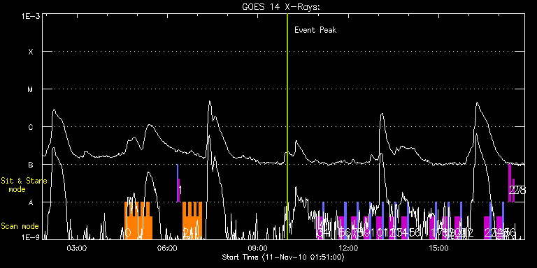 EIS Observation timeline overlay to GOES-Xray curve