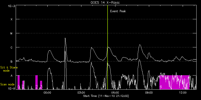 EIS Observation timeline overlay to GOES-Xray curve Code 1" 2" 40" 266" EIS Observations list for this event: STUDY ACRONYM ID DATE OBSERVED DESCRIPTION NOAA# TARGET 0 SK_DEEP_5x512_SLIT1 | 19858 | 2010/11/11 21:21:20 | | | Quiet Sun TIMELINE ID DATE OBSERVED FITS FILE XCEN (+W/-E) YCEN (+N/-S) DUR ----------------------------------------------------------------------------------------------------------------- 19858 | 2010/11/11 21:21:20.000 | eis_l0_20101111_212120.fits.gz | -11.22 | 629.61 | 10m8s 1 SK_DEEP_5x512_SLIT1 | 19860 | 2010/11/11 21:46:41 | | | Quiet Sun TIMELINE ID DATE OBSERVED FITS FILE XCEN (+W/-E) YCEN (+N/-S) DUR ----------------------------------------------------------------------------------------------------------------- 19860 | 2010/11/11 21:46:41.000 | eis_l0_20101111_214641.fits.gz | -11.07 | 729.57 | 10m8s 2 SK_DEEP_5x512_SLIT1 | 19862 | 2010/11/11 22:56:40 | | | Quiet Sun TIMELINE ID DATE OBSERVED FITS FILE XCEN (+W/-E) YCEN (+N/-S) DUR ----------------------------------------------------------------------------------------------------------------- 19862 | 2010/11/11 22:56:40.000 | eis_l0_20101111_225640.fits.gz | -11.22 | 829.84 | 10m8s 3 SK_DEEP_5x512_SLIT1 | 19864 | 2010/11/11 23:21:14 | | | Quiet Sun TIMELINE ID DATE OBSERVED FITS FILE XCEN (+W/-E) YCEN (+N/-S) DUR ----------------------------------------------------------------------------------------------------------------- 19864 | 2010/11/11 23:21:14.000 | eis_l0_20101111_232114.fits.gz | -11.30 | 929.64 | 10m8s 4 HPW018AR300x400_30s2 | 19875 | 2010/11/12 09:56:14 | AR large scan | 1123 | Active Region TIMELINE ID DATE OBSERVED FITS FILE XCEN (+W/-E) YCEN (+N/-S) DUR ----------------------------------------------------------------------------------------------------------------- 19875 | 2010/11/12 09:56:14.000 | eis_l0_20101112_095614.fits.gz | -90.98 | -391.93 | 2h38m21s : Check study information : Download file : View thumbnails For this event, also check for: