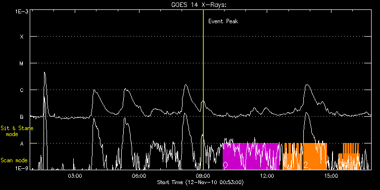 EIS Observation timeline overlay to GOES-Xray curve Code 1" 2" 40" 266" EIS Observations list for this event: STUDY ACRONYM ID DATE OBSERVED DESCRIPTION NOAA# TARGET 0 HPW018AR300x400_30s2 | 19875 | 2010/11/12 09:56:14 | AR large scan | 1123 | Active Region TIMELINE ID DATE OBSERVED FITS FILE XCEN (+W/-E) YCEN (+N/-S) DUR ----------------------------------------------------------------------------------------------------------------- 19875 | 2010/11/12 09:56:14.000 | eis_l0_20101112_095614.fits.gz | -90.98 | -391.93 | 2h38m21s 1 IUU_SCAN_STEPS_002 | 19876 | 2010/11/12 12:44:26 | AR fast scan | | Active Region TIMELINE ID DATE OBSERVED FITS FILE XCEN (+W/-E) YCEN (+N/-S) DUR ----------------------------------------------------------------------------------------------------------------- 19876 | 2010/11/12 12:44:26.000 | eis_l0_20101112_124426.fits.gz | -11.84 | -391.70 | 5m24s 19876 | 2010/11/12 12:49:53.000 | eis_l0_20101112_124953.fits.gz | -11.23 | -391.62 | 5m24s 19876 | 2010/11/12 12:55:20.000 | eis_l0_20101112_125520.fits.gz | -10.45 | -391.62 | 5m24s 19876 | 2010/11/12 13:00:47.000 | eis_l0_20101112_130047.fits.gz | -9.53 | -391.70 | 5m24s 19876 | 2010/11/12 13:06:14.000 | eis_l0_20101112_130614.fits.gz | -8.83 | -391.62 | 5m24s 19876 | 2010/11/12 13:11:41.000 | eis_l0_20101112_131141.fits.gz | -8.06 | -391.70 | 5m23s 19876 | 2010/11/12 13:17:08.000 | eis_l0_20101112_131708.fits.gz | -7.29 | -391.46 | 5m23s 19876 | 2010/11/12 13:22:34.000 | eis_l0_20101112_132234.fits.gz | -6.59 | -391.54 | 5m24s 19876 | 2010/11/12 13:28:01.000 | eis_l0_20101112_132801.fits.gz | -5.74 | -391.46 | 5m24s 19876 | 2010/11/12 13:33:28.000 | eis_l0_20101112_133328.fits.gz | -5.05 | -391.62 | 5m23s 2 NNK_SNS_WAVE_PROP_v1 | 19881 | 2010/11/12 13:42:13 | AR sit-and-stare obs. with 3 slit loca | | Active Region TIMELINE ID DATE OBSERVED FITS FILE XCEN (+W/-E) YCEN (+N/-S) DUR ----------------------------------------------------------------------------------------------------------------- 19881 | 2010/11/12 13:42:13.000 | eis_l0_20101112_134213.fits.gz | 5.25 | -331.46 | 1m4s 19881 | 2010/11/12 13:43:20.000 | eis_l0_20101112_134320.fits.gz | 5.41 | -331.62 | 1m3s 19881 | 2010/11/12 13:44:27.000 | eis_l0_20101112_134427.fits.gz | 5.48 | -331.62 | 1m3s 19881 | 2010/11/12 13:45:33.000 | eis_l0_20101112_134533.fits.gz | 5.79 | -331.62 | 1m4s 19881 | 2010/11/12 13:46:40.000 | eis_l0_20101112_134640.fits.gz | 5.79 | -331.70 | 1m3s 19881 | 2010/11/12 13:47:47.000 | eis_l0_20101112_134747.fits.gz | 6.02 | -331.54 | 1m3s 19881 | 2010/11/12 13:48:53.000 | eis_l0_20101112_134853.fits.gz | 6.18 | -331.62 | 1m4s 19881 | 2010/11/12 13:50:00.000 | eis_l0_20101112_135000.fits.gz | 6.33 | -331.62 | 1m3s 19881 | 2010/11/12 13:51:07.000 | eis_l0_20101112_135107.fits.gz | 6.49 | -331.70 | 1m3s 19881 | 2010/11/12 13:52:13.000 | eis_l0_20101112_135213.fits.gz | 6.57 | -331.54 | 1m4s 19881 | 2010/11/12 13:53:20.000 | eis_l0_20101112_135320.fits.gz | 6.72 | -331.62 | 1m3s 19881 | 2010/11/12 13:54:27.000 | eis_l0_20101112_135427.fits.gz | 6.95 | -331.54 | 1m3s 19881 | 2010/11/12 13:55:33.000 | eis_l0_20101112_135533.fits.gz | 7.18 | -331.46 | 1m4s 19881 | 2010/11/12 13:56:40.000 | eis_l0_20101112_135640.fits.gz | 7.18 | -331.46 | 1m4s 19881 | 2010/11/12 13:57:47.000 | eis_l0_20101112_135747.fits.gz | 7.49 | -331.54 | 1m3s 19881 | 2010/11/12 13:58:53.000 | eis_l0_20101112_135853.fits.gz | 7.49 | -331.54 | 1m4s 19881 | 2010/11/12 14:00:00.000 | eis_l0_20101112_140000.fits.gz | 7.72 | -331.62 | 1m4s 19881 | 2010/11/12 14:01:07.000 | eis_l0_20101112_140107.fits.gz | 7.96 | -331.70 | 1m3s 19881 | 2010/11/12 14:02:13.000 | eis_l0_20101112_140213.fits.gz | 8.03 | -331.54 | 1m4s 19881 | 2010/11/12 14:03:20.000 | eis_l0_20101112_140320.fits.gz | 8.11 | -331.46 | 1m4s 19881 | 2010/11/12 14:04:27.000 | eis_l0_20101112_140427.fits.gz | 8.34 | -331.54 | 1m3s 19881 | 2010/11/12 14:05:33.000 | eis_l0_20101112_140533.fits.gz | 8.57 | -331.62 | 1m4s 19881 | 2010/11/12 14:06:40.000 | eis_l0_20101112_140640.fits.gz | 8.65 | -331.62 | 1m4s 19881 | 2010/11/12 14:07:47.000 | eis_l0_20101112_140747.fits.gz | 8.81 | -331.62 | 1m3s 19881 | 2010/11/12 14:08:53.000 | eis_l0_20101112_140853.fits.gz | 8.96 | -331.54 | 1m4s 19881 | 2010/11/12 14:10:00.000 | eis_l0_20101112_141000.fits.gz | 9.11 | -331.70 | 1m3s 19881 | 2010/11/12 14:11:06.000 | eis_l0_20101112_141106.fits.gz | 9.27 | -331.46 | 1m4s 19881 | 2010/11/12 14:12:13.000 | eis_l0_20101112_141213.fits.gz | 9.42 | -331.62 | 1m3s 19881 | 2010/11/12 14:13:20.000 | eis_l0_20101112_141320.fits.gz | 9.58 | -331.54 | 1m3s 19881 | 2010/11/12 14:14:26.000 | eis_l0_20101112_141426.fits.gz | 9.81 | -331.62 | 1m4s 19881 | 2010/11/12 14:15:33.000 | eis_l0_20101112_141533.fits.gz | 9.89 | -331.54 | 1m4s 19881 | 2010/11/12 14:16:40.000 | eis_l0_20101112_141640.fits.gz | 10.12 | -331.46 | 1m3s 19881 | 2010/11/12 14:17:46.000 | eis_l0_20101112_141746.fits.gz | 10.20 | -331.54 | 1m4s 19881 | 2010/11/12 14:18:53.000 | eis_l0_20101112_141853.fits.gz | 10.35 | -331.54 | 1m3s 19881 | 2010/11/12 14:20:00.000 | eis_l0_20101112_142000.fits.gz | 10.58 | -331.46 | 1m3s 19881 | 2010/11/12 14:21:06.000 | eis_l0_20101112_142106.fits.gz | 10.66 | -331.54 | 1m4s 19881 | 2010/11/12 14:22:13.000 | eis_l0_20101112_142213.fits.gz | 10.89 | -331.54 | 1m3s 19881 | 2010/11/12 14:23:19.000 | eis_l0_20101112_142319.fits.gz | 10.97 | -331.39 | 1m4s 19881 | 2010/11/12 14:24:26.000 | eis_l0_20101112_142426.fits.gz | 11.20 | -331.46 | 1m3s 19881 | 2010/11/12 14:25:32.000 | eis_l0_20101112_142532.fits.gz | 11.28 | -331.46 | 1m4s 19881 | 2010/11/12 14:26:39.000 | eis_l0_20101112_142639.fits.gz | 11.43 | -331.54 | 1m4s 19881 | 2010/11/12 14:27:46.000 | eis_l0_20101112_142746.fits.gz | 11.66 | -331.54 | 1m3s 19881 | 2010/11/12 14:28:52.000 | eis_l0_20101112_142852.fits.gz | 11.74 | -331.46 | 1m4s 19881 | 2010/11/12 14:29:59.000 | eis_l0_20101112_142959.fits.gz | 11.97 | -331.46 | 1m3s 19881 | 2010/11/12 14:31:06.000 | eis_l0_20101112_143106.fits.gz | 12