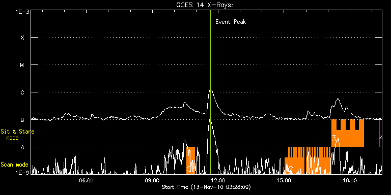 EIS Observation timeline overlay to GOES-Xray curve Code 1" 2" 40" 266" EIS Observations list for this event: STUDY ACRONYM ID DATE OBSERVED DESCRIPTION NOAA# TARGET 0 Hunter_loop_fe8 | 19892 | 2010/11/13 10:33:44 | Bright point trigger for AR loop footp | 1123 | Active Region TIMELINE ID DATE OBSERVED FITS FILE XCEN (+W/-E) YCEN (+N/-S) DUR ----------------------------------------------------------------------------------------------------------------- 19892 | 2010/11/13 10:33:44.000 | eis_l0_20101113_103344.fits.gz | 256.53 | -426.45 | 22m39s 1 madj_ar | 19884 | 2010/11/13 15:02:13 | HOP 174 - Ellerman bombs and emerging | | Active Region TIMELINE ID DATE OBSERVED FITS FILE XCEN (+W/-E) YCEN (+N/-S) DUR ----------------------------------------------------------------------------------------------------------------- 19884 | 2010/11/13 15:02:13.000 | eis_l0_20101113_150213.fits.gz | 262.37 | -427.60 | 9m42s 2 madj_ar_small | 19885 | 2010/11/13 15:12:00 | HOP 174 - Ellerman bombs and emerging | | Active Region TIMELINE ID DATE OBSERVED FITS FILE XCEN (+W/-E) YCEN (+N/-S) DUR ----------------------------------------------------------------------------------------------------------------- 19885 | 2010/11/13 15:12:00.000 | eis_l0_20101113_151200.fits.gz | 263.68 | -427.68 | 3m19s 19885 | 2010/11/13 15:15:22.000 | eis_l0_20101113_151522.fits.gz | 264.07 | -427.68 | 3m18s 19885 | 2010/11/13 15:18:43.000 | eis_l0_20101113_151843.fits.gz | 264.45 | -427.60 | 3m18s 19885 | 2010/11/13 15:22:05.000 | eis_l0_20101113_152205.fits.gz | 265.07 | -427.60 | 3m18s 19885 | 2010/11/13 15:25:26.000 | eis_l0_20101113_152526.fits.gz | 265.46 | -427.60 | 3m18s 19885 | 2010/11/13 15:28:47.000 | eis_l0_20101113_152847.fits.gz | 265.84 | -427.52 | 3m19s 19885 | 2010/11/13 15:32:09.000 | eis_l0_20101113_153209.fits.gz | 266.31 | -427.45 | 3m18s 19885 | 2010/11/13 15:35:30.000 | eis_l0_20101113_153530.fits.gz | 266.85 | -427.68 | 3m19s 19885 | 2010/11/13 15:38:52.000 | eis_l0_20101113_153852.fits.gz | 267.31 | -427.45 | 3m18s 19885 | 2010/11/13 15:42:13.000 | eis_l0_20101113_154213.fits.gz | 267.70 | -427.45 | 3m19s 19885 | 2010/11/13 15:45:35.000 | eis_l0_20101113_154535.fits.gz | 268.24 | -427.52 | 3m19s 19885 | 2010/11/13 15:48:57.000 | eis_l0_20101113_154857.fits.gz | 268.70 | -427.60 | 3m18s 19885 | 2010/11/13 15:52:18.000 | eis_l0_20101113_155218.fits.gz | 269.01 | -427.45 | 3m19s 19885 | 2010/11/13 16:00:59.000 | eis_l0_20101113_160059.fits.gz | 270.25 | -427.52 | 1m22s 19885 | 2010/11/13 16:02:24.000 | eis_l0_20101113_160224.fits.gz | 270.40 | -427.60 | 3m18s 19885 | 2010/11/13 16:05:45.000 | eis_l0_20101113_160545.fits.gz | 270.86 | -427.52 | 3m19s 19885 | 2010/11/13 16:09:07.000 | eis_l0_20101113_160907.fits.gz | 271.33 | -427.45 | 3m19s 19885 | 2010/11/13 16:12:29.000 | eis_l0_20101113_161229.fits.gz | 271.79 | -427.45 | 3m19s 19885 | 2010/11/13 16:15:51.000 | eis_l0_20101113_161551.fits.gz | 272.18 | -427.37 | 3m18s 19885 | 2010/11/13 16:19:12.000 | eis_l0_20101113_161912.fits.gz | 272.72 | -427.45 | 3m18s 19885 | 2010/11/13 16:22:33.000 | eis_l0_20101113_162233.fits.gz | 273.11 | -427.45 | 3m19s 19885 | 2010/11/13 16:25:55.000 | eis_l0_20101113_162555.fits.gz | 273.65 | -427.60 | 3m18s 19885 | 2010/11/13 16:29:16.000 | eis_l0_20101113_162916.fits.gz | 273.95 | -427.29 | 3m19s 19885 | 2010/11/13 16:32:38.000 | eis_l0_20101113_163238.fits.gz | 274.49 | -427.37 | 3m18s 19885 | 2010/11/13 16:35:59.000 | eis_l0_20101113_163559.fits.gz | 274.96 | -427.45 | 3m19s 19885 | 2010/11/13 16:39:21.000 | eis_l0_20101113_163921.fits.gz | 275.35 | -427.37 | 3m19s 19885 | 2010/11/13 16:42:43.000 | eis_l0_20101113_164243.fits.gz | 275.81 | -427.37 | 3m18s 19885 | 2010/11/13 16:46:04.000 | eis_l0_20101113_164604.fits.gz | 276.35 | -427.45 | 3m18s 19885 | 2010/11/13 16:49:25.000 | eis_l0_20101113_164925.fits.gz | 276.66 | -427.37 | 3m19s 19885 | 2010/11/13 16:52:47.000 | eis_l0_20101113_165247.fits.gz | 277.20 | -427.37 | 3m18s 19885 | 2010/11/13 16:56:08.000 | eis_l0_20101113_165608.fits.gz | 277.66 | -427.29 | 3m19s 19885 | 2010/11/13 16:59:30.000 | eis_l0_20101113_165930.fits.gz | 277.97 | -427.14 | 3m18s 19885 | 2010/11/13 17:02:52.000 | eis_l0_20101113_170252.fits.gz | 278.51 | -427.45 | 3m18s 19885 | 2010/11/13 17:06:13.000 | eis_l0_20101113_170613.fits.gz | 278.98 | -427.22 | 3m19s 3 madj_ar_sns_15m | 19886 | 2010/11/13 17:09:36 | HOP 174 - Ellerman bombs and emerging | | Active Region TIMELINE ID DATE OBSERVED FITS FILE XCEN (+W/-E) YCEN (+N/-S) DUR ----------------------------------------------------------------------------------------------------------------- 19886 | 2010/11/13 17:09:36.000 | eis_l0_20101113_170936.fits.gz | 279.44 | -427.22 | 12m37s 19886 | 2010/11/13 17:22:16.000 | eis_l0_20101113_172216.fits.gz | 281.14 | -427.22 | 12m37s 19886 | 2010/11/13 17:34:56.000 | eis_l0_20101113_173456.fits.gz | 282.76 | -427.14 | 12m36s 19886 | 2010/11/13 17:47:35.000 | eis_l0_20101113_174735.fits.gz | 284.54 | -427.14 | 12m37s 19886 | 2010/11/13 18:00:15.000 | eis_l0_20101113_180015.fits.gz | 286.23 | -427.06 | 12m35s 19886 | 2010/11/13 18:12:53.000 | eis_l0_20101113_181253.fits.gz | 287.93 | -427.14 | 12m36s 19886 | 2010/11/13 18:25:31.000 | eis_l0_20101113_182531.fits.gz | 289.56 | -426.98 | 12m37s 4 SYNOP005_A | 19887 | 2010/11/13 19:19:20 | EIS synoptic study | | Quiet Sun TIMELINE ID DATE OBSERVED FITS FILE XCEN (+W/-E) YCEN (+N/-S) DUR ----------------------------------------------------------------------------------------------------------------- 19887 | 2010/11/13 19:19:20.000 | eis_l0_20101113_191920.fits.gz | -19.68 | -0.27 | 1m30s 19887 | 2010/11/13 19:21:01.000 | eis_l0_20101113_192101.fits.gz | -0.10 | -0.42 | 1m30s : Check study information : Download file : View thumbnails For this event, also check for: