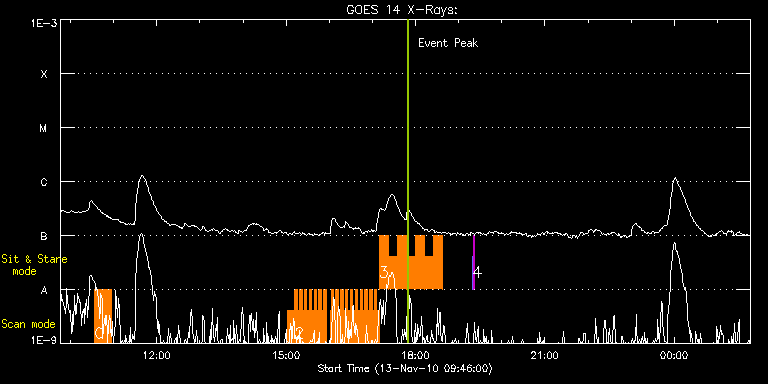 EIS Observation timeline overlay to GOES-Xray curve Code 1" 2" 40" 266" EIS Observations list for this event: STUDY ACRONYM ID DATE OBSERVED DESCRIPTION NOAA# TARGET 0 Hunter_loop_fe8 | 19892 | 2010/11/13 10:33:44 | Bright point trigger for AR loop footp | 1123 | Active Region TIMELINE ID DATE OBSERVED FITS FILE XCEN (+W/-E) YCEN (+N/-S) DUR ----------------------------------------------------------------------------------------------------------------- 19892 | 2010/11/13 10:33:44.000 | eis_l0_20101113_103344.fits.gz | 256.53 | -426.45 | 22m39s 1 madj_ar | 19884 | 2010/11/13 15:02:13 | HOP 174 - Ellerman bombs and emerging | | Active Region TIMELINE ID DATE OBSERVED FITS FILE XCEN (+W/-E) YCEN (+N/-S) DUR ----------------------------------------------------------------------------------------------------------------- 19884 | 2010/11/13 15:02:13.000 | eis_l0_20101113_150213.fits.gz | 262.37 | -427.60 | 9m42s 2 madj_ar_small | 19885 | 2010/11/13 15:12:00 | HOP 174 - Ellerman bombs and emerging | | Active Region TIMELINE ID DATE OBSERVED FITS FILE XCEN (+W/-E) YCEN (+N/-S) DUR ----------------------------------------------------------------------------------------------------------------- 19885 | 2010/11/13 15:12:00.000 | eis_l0_20101113_151200.fits.gz | 263.68 | -427.68 | 3m19s 19885 | 2010/11/13 15:15:22.000 | eis_l0_20101113_151522.fits.gz | 264.07 | -427.68 | 3m18s 19885 | 2010/11/13 15:18:43.000 | eis_l0_20101113_151843.fits.gz | 264.45 | -427.60 | 3m18s 19885 | 2010/11/13 15:22:05.000 | eis_l0_20101113_152205.fits.gz | 265.07 | -427.60 | 3m18s 19885 | 2010/11/13 15:25:26.000 | eis_l0_20101113_152526.fits.gz | 265.46 | -427.60 | 3m18s 19885 | 2010/11/13 15:28:47.000 | eis_l0_20101113_152847.fits.gz | 265.84 | -427.52 | 3m19s 19885 | 2010/11/13 15:32:09.000 | eis_l0_20101113_153209.fits.gz | 266.31 | -427.45 | 3m18s 19885 | 2010/11/13 15:35:30.000 | eis_l0_20101113_153530.fits.gz | 266.85 | -427.68 | 3m19s 19885 | 2010/11/13 15:38:52.000 | eis_l0_20101113_153852.fits.gz | 267.31 | -427.45 | 3m18s 19885 | 2010/11/13 15:42:13.000 | eis_l0_20101113_154213.fits.gz | 267.70 | -427.45 | 3m19s 19885 | 2010/11/13 15:45:35.000 | eis_l0_20101113_154535.fits.gz | 268.24 | -427.52 | 3m19s 19885 | 2010/11/13 15:48:57.000 | eis_l0_20101113_154857.fits.gz | 268.70 | -427.60 | 3m18s 19885 | 2010/11/13 15:52:18.000 | eis_l0_20101113_155218.fits.gz | 269.01 | -427.45 | 3m19s 19885 | 2010/11/13 16:00:59.000 | eis_l0_20101113_160059.fits.gz | 270.25 | -427.52 | 1m22s 19885 | 2010/11/13 16:02:24.000 | eis_l0_20101113_160224.fits.gz | 270.40 | -427.60 | 3m18s 19885 | 2010/11/13 16:05:45.000 | eis_l0_20101113_160545.fits.gz | 270.86 | -427.52 | 3m19s 19885 | 2010/11/13 16:09:07.000 | eis_l0_20101113_160907.fits.gz | 271.33 | -427.45 | 3m19s 19885 | 2010/11/13 16:12:29.000 | eis_l0_20101113_161229.fits.gz | 271.79 | -427.45 | 3m19s 19885 | 2010/11/13 16:15:51.000 | eis_l0_20101113_161551.fits.gz | 272.18 | -427.37 | 3m18s 19885 | 2010/11/13 16:19:12.000 | eis_l0_20101113_161912.fits.gz | 272.72 | -427.45 | 3m18s 19885 | 2010/11/13 16:22:33.000 | eis_l0_20101113_162233.fits.gz | 273.11 | -427.45 | 3m19s 19885 | 2010/11/13 16:25:55.000 | eis_l0_20101113_162555.fits.gz | 273.65 | -427.60 | 3m18s 19885 | 2010/11/13 16:29:16.000 | eis_l0_20101113_162916.fits.gz | 273.95 | -427.29 | 3m19s 19885 | 2010/11/13 16:32:38.000 | eis_l0_20101113_163238.fits.gz | 274.49 | -427.37 | 3m18s 19885 | 2010/11/13 16:35:59.000 | eis_l0_20101113_163559.fits.gz | 274.96 | -427.45 | 3m19s 19885 | 2010/11/13 16:39:21.000 | eis_l0_20101113_163921.fits.gz | 275.35 | -427.37 | 3m19s 19885 | 2010/11/13 16:42:43.000 | eis_l0_20101113_164243.fits.gz | 275.81 | -427.37 | 3m18s 19885 | 2010/11/13 16:46:04.000 | eis_l0_20101113_164604.fits.gz | 276.35 | -427.45 | 3m18s 19885 | 2010/11/13 16:49:25.000 | eis_l0_20101113_164925.fits.gz | 276.66 | -427.37 | 3m19s 19885 | 2010/11/13 16:52:47.000 | eis_l0_20101113_165247.fits.gz | 277.20 | -427.37 | 3m18s 19885 | 2010/11/13 16:56:08.000 | eis_l0_20101113_165608.fits.gz | 277.66 | -427.29 | 3m19s 19885 | 2010/11/13 16:59:30.000 | eis_l0_20101113_165930.fits.gz | 277.97 | -427.14 | 3m18s 19885 | 2010/11/13 17:02:52.000 | eis_l0_20101113_170252.fits.gz | 278.51 | -427.45 | 3m18s 19885 | 2010/11/13 17:06:13.000 | eis_l0_20101113_170613.fits.gz | 278.98 | -427.22 | 3m19s 3 madj_ar_sns_15m | 19886 | 2010/11/13 17:09:36 | HOP 174 - Ellerman bombs and emerging | | Active Region TIMELINE ID DATE OBSERVED FITS FILE XCEN (+W/-E) YCEN (+N/-S) DUR ----------------------------------------------------------------------------------------------------------------- 19886 | 2010/11/13 17:09:36.000 | eis_l0_20101113_170936.fits.gz | 279.44 | -427.22 | 12m37s 19886 | 2010/11/13 17:22:16.000 | eis_l0_20101113_172216.fits.gz | 281.14 | -427.22 | 12m37s 19886 | 2010/11/13 17:34:56.000 | eis_l0_20101113_173456.fits.gz | 282.76 | -427.14 | 12m36s 19886 | 2010/11/13 17:47:35.000 | eis_l0_20101113_174735.fits.gz | 284.54 | -427.14 | 12m37s 19886 | 2010/11/13 18:00:15.000 | eis_l0_20101113_180015.fits.gz | 286.23 | -427.06 | 12m35s 19886 | 2010/11/13 18:12:53.000 | eis_l0_20101113_181253.fits.gz | 287.93 | -427.14 | 12m36s 19886 | 2010/11/13 18:25:31.000 | eis_l0_20101113_182531.fits.gz | 289.56 | -426.98 | 12m37s 4 SYNOP005_A | 19887 | 2010/11/13 19:19:20 | EIS synoptic study | | Quiet Sun TIMELINE ID DATE OBSERVED FITS FILE XCEN (+W/-E) YCEN (+N/-S) DUR ----------------------------------------------------------------------------------------------------------------- 19887 | 2010/11/13 19:19:20.000 | eis_l0_20101113_191920.fits.gz | -19.68 | -0.27 | 1m30s 19887 | 2010/11/13 19:21:01.000 | eis_l0_20101113_192101.fits.gz | -0.10 | -0.42 | 1m30s : Check study information : Download file : View thumbnails For this event, also check for: