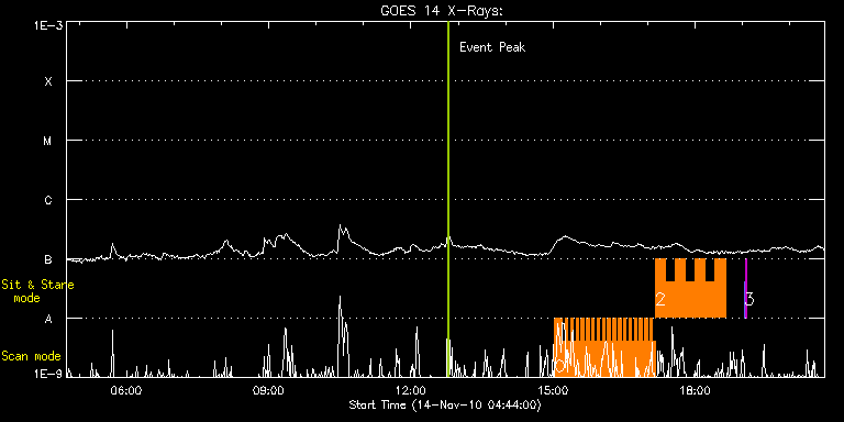 EIS Observation timeline overlay to GOES-Xray curve Code 1" 2" 40" 266" EIS Observations list for this event: STUDY ACRONYM ID DATE OBSERVED DESCRIPTION NOAA# TARGET 0 madj_ar | 19888 | 2010/11/14 15:02:19 | HOP 174 - Ellerman bombs and emerging | | Active Region TIMELINE ID DATE OBSERVED FITS FILE XCEN (+W/-E) YCEN (+N/-S) DUR ----------------------------------------------------------------------------------------------------------------- 19888 | 2010/11/14 15:02:19.000 | eis_l0_20101114_150219.fits.gz | 183.65 | 157.78 | 9m42s 1 madj_ar_small | 19889 | 2010/11/14 15:12:05 | HOP 174 - Ellerman bombs and emerging | | Active Region TIMELINE ID DATE OBSERVED FITS FILE XCEN (+W/-E) YCEN (+N/-S) DUR ----------------------------------------------------------------------------------------------------------------- 19889 | 2010/11/14 15:12:05.000 | eis_l0_20101114_151205.fits.gz | 185.27 | 157.86 | 3m19s 19889 | 2010/11/14 15:15:27.000 | eis_l0_20101114_151527.fits.gz | 185.74 | 157.78 | 3m18s 19889 | 2010/11/14 15:18:48.000 | eis_l0_20101114_151848.fits.gz | 186.20 | 157.78 | 3m19s 19889 | 2010/11/14 15:22:10.000 | eis_l0_20101114_152210.fits.gz | 186.74 | 157.70 | 3m18s 19889 | 2010/11/14 15:25:31.000 | eis_l0_20101114_152531.fits.gz | 187.21 | 157.70 | 3m18s 19889 | 2010/11/14 15:28:53.000 | eis_l0_20101114_152853.fits.gz | 187.67 | 157.93 | 3m18s 19889 | 2010/11/14 15:32:14.000 | eis_l0_20101114_153214.fits.gz | 188.29 | 157.78 | 3m19s 19889 | 2010/11/14 15:35:36.000 | eis_l0_20101114_153536.fits.gz | 188.67 | 157.86 | 3m18s 19889 | 2010/11/14 15:38:57.000 | eis_l0_20101114_153857.fits.gz | 189.21 | 157.93 | 3m18s 19889 | 2010/11/14 15:42:18.000 | eis_l0_20101114_154218.fits.gz | 189.68 | 157.93 | 3m19s 19889 | 2010/11/14 15:45:40.000 | eis_l0_20101114_154540.fits.gz | 190.22 | 157.86 | 3m19s 19889 | 2010/11/14 15:49:02.000 | eis_l0_20101114_154902.fits.gz | 190.76 | 157.86 | 3m18s 19889 | 2010/11/14 15:52:23.000 | eis_l0_20101114_155223.fits.gz | 191.22 | 158.09 | 3m19s 19889 | 2010/11/14 15:55:45.000 | eis_l0_20101114_155545.fits.gz | 191.69 | 157.86 | 3m18s 19889 | 2010/11/14 15:59:06.000 | eis_l0_20101114_155906.fits.gz | 192.30 | 158.01 | 3m19s 19889 | 2010/11/14 16:02:28.000 | eis_l0_20101114_160228.fits.gz | 192.77 | 157.78 | 3m18s 19889 | 2010/11/14 16:05:49.000 | eis_l0_20101114_160549.fits.gz | 193.31 | 157.93 | 3m19s 19889 | 2010/11/14 16:09:11.000 | eis_l0_20101114_160911.fits.gz | 193.69 | 158.01 | 3m18s 19889 | 2010/11/14 16:12:32.000 | eis_l0_20101114_161232.fits.gz | 194.31 | 158.01 | 3m18s 19889 | 2010/11/14 16:15:54.000 | eis_l0_20101114_161554.fits.gz | 194.70 | 158.01 | 3m18s 19889 | 2010/11/14 16:19:15.000 | eis_l0_20101114_161915.fits.gz | 195.24 | 158.09 | 3m19s 19889 | 2010/11/14 16:22:37.000 | eis_l0_20101114_162237.fits.gz | 195.78 | 158.01 | 3m18s 19889 | 2010/11/14 16:25:58.000 | eis_l0_20101114_162558.fits.gz | 196.24 | 158.09 | 3m18s 19889 | 2010/11/14 16:29:19.000 | eis_l0_20101114_162919.fits.gz | 196.71 | 158.09 | 3m19s 19889 | 2010/11/14 16:32:41.000 | eis_l0_20101114_163241.fits.gz | 197.25 | 158.17 | 3m19s 19889 | 2010/11/14 16:36:03.000 | eis_l0_20101114_163603.fits.gz | 197.79 | 158.17 | 3m18s 19889 | 2010/11/14 16:39:24.000 | eis_l0_20101114_163924.fits.gz | 198.25 | 158.01 | 3m18s 19889 | 2010/11/14 16:42:45.000 | eis_l0_20101114_164245.fits.gz | 198.79 | 158.09 | 3m19s 19889 | 2010/11/14 16:46:07.000 | eis_l0_20101114_164607.fits.gz | 199.26 | 158.01 | 3m19s 19889 | 2010/11/14 16:49:29.000 | eis_l0_20101114_164929.fits.gz | 199.80 | 158.01 | 3m18s 19889 | 2010/11/14 16:52:50.000 | eis_l0_20101114_165250.fits.gz | 200.26 | 158.09 | 3m19s 19889 | 2010/11/14 16:56:12.000 | eis_l0_20101114_165612.fits.gz | 200.80 | 158.17 | 3m18s 19889 | 2010/11/14 16:59:33.000 | eis_l0_20101114_165933.fits.gz | 201.26 | 158.09 | 3m18s 19889 | 2010/11/14 17:02:54.000 | eis_l0_20101114_170254.fits.gz | 201.80 | 158.09 | 3m19s 19889 | 2010/11/14 17:06:16.000 | eis_l0_20101114_170616.fits.gz | 202.27 | 158.17 | 3m18s 2 madj_ar_sns_15m | 19890 | 2010/11/14 17:09:38 | HOP 174 - Ellerman bombs and emerging | | Active Region TIMELINE ID DATE OBSERVED FITS FILE XCEN (+W/-E) YCEN (+N/-S) DUR ----------------------------------------------------------------------------------------------------------------- 19890 | 2010/11/14 17:09:38.000 | eis_l0_20101114_170938.fits.gz | 202.73 | 158.17 | 12m37s 19890 | 2010/11/14 17:22:17.000 | eis_l0_20101114_172217.fits.gz | 204.66 | 158.24 | 12m36s 19890 | 2010/11/14 17:34:56.000 | eis_l0_20101114_173456.fits.gz | 206.52 | 158.24 | 12m36s 19890 | 2010/11/14 17:47:35.000 | eis_l0_20101114_174735.fits.gz | 208.45 | 158.32 | 12m37s 19890 | 2010/11/14 18:00:15.000 | eis_l0_20101114_180015.fits.gz | 210.30 | 158.40 | 12m36s 19890 | 2010/11/14 18:12:54.000 | eis_l0_20101114_181254.fits.gz | 212.23 | 158.40 | 12m36s 19890 | 2010/11/14 18:25:32.000 | eis_l0_20101114_182532.fits.gz | 214.09 | 158.32 | 12m37s 3 SYNOP005_A | 19891 | 2010/11/14 19:02:19 | EIS synoptic study | | Quiet Sun TIMELINE ID DATE OBSERVED FITS FILE XCEN (+W/-E) YCEN (+N/-S) DUR ----------------------------------------------------------------------------------------------------------------- 19891 | 2010/11/14 19:02:19.000 | eis_l0_20101114_190219.fits.gz | -19.52 | -0.50 | 1m30s 19891 | 2010/11/14 19:04:00.000 | eis_l0_20101114_190400.fits.gz | -0.10 | -0.58 | 1m30s : Check study information : Download file : View thumbnails For this event, also check for: