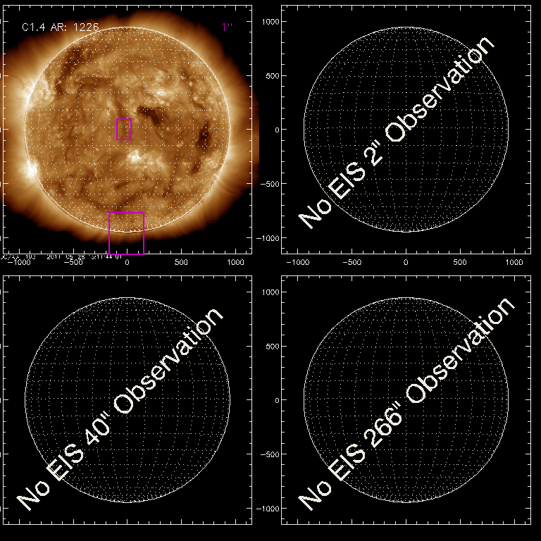 EIS Observation timeline overlay to GOES-Xray curve Code 1" 2" 40" 266" EIS Observations list for this event: STUDY ACRONYM ID DATE OBSERVED DESCRIPTION NOAA# TARGET 0 SK_CH_DIAG_320x384 | 22417 | 2011/05/28 11:10:28 | HOP-81 | | Coronal Hole TIMELINE ID DATE OBSERVED FITS FILE XCEN (+W/-E) YCEN (+N/-S) DUR ----------------------------------------------------------------------------------------------------------------- 22417 | 2011/05/28 11:10:28.000 | eis_l0_20110528_111028.fits.gz | -6.80 | -965.01 | 4h35m37s 1 SYNOP006 | 22418 | 2011/05/28 17:53:41 | Synop006 | | Quiet Sun TIMELINE ID DATE OBSERVED FITS FILE XCEN (+W/-E) YCEN (+N/-S) DUR ----------------------------------------------------------------------------------------------------------------- 22418 | 2011/05/28 17:53:41.000 | eis_l0_20110528_175341.fits.gz | -30.05 | -0.42 | 3h15m34s : Check study information : Download file : View thumbnails For this event, also check for: