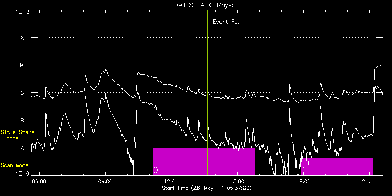 EIS Observation timeline overlay to GOES-Xray curve