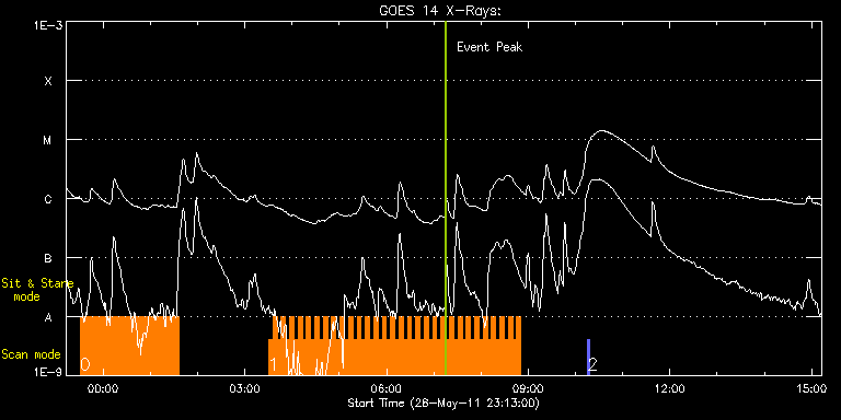 EIS Observation timeline overlay to GOES-Xray curve Code 1" 2" 40" 266" EIS Observations list for this event: STUDY ACRONYM ID DATE OBSERVED DESCRIPTION NOAA# TARGET 0 cam_ar_limb_lite_v2 | 22421 | 2011/05/28 23:30:27 | AR obsevation at the east limb | | Active Region TIMELINE ID DATE OBSERVED FITS FILE XCEN (+W/-E) YCEN (+N/-S) DUR ----------------------------------------------------------------------------------------------------------------- 22421 | 2011/05/28 23:30:27.000 | eis_l0_20110528_233027.fits.gz | -901.23 | 386.20 | 2h6m1s 1 HH_Flare+AR_180x152 | 22422 | 2011/05/29 03:30:13 | AR observations | | Flare TIMELINE ID DATE OBSERVED FITS FILE XCEN (+W/-E) YCEN (+N/-S) DUR ----------------------------------------------------------------------------------------------------------------- 22422 | 2011/05/29 03:30:13.000 | eis_l0_20110529_033013.fits.gz | -903.41 | 386.74 | 5m19s 22422 | 2011/05/29 03:35:35.000 | eis_l0_20110529_033535.fits.gz | -903.11 | 386.74 | 5m17s 22422 | 2011/05/29 03:40:55.000 | eis_l0_20110529_034055.fits.gz | -902.87 | 386.82 | 5m17s 22422 | 2011/05/29 03:46:15.000 | eis_l0_20110529_034615.fits.gz | -902.64 | 386.82 | 5m18s 22422 | 2011/05/29 03:51:35.000 | eis_l0_20110529_035135.fits.gz | -902.33 | 386.82 | 5m18s 22422 | 2011/05/29 03:56:55.000 | eis_l0_20110529_035655.fits.gz | -902.10 | 386.90 | 5m18s 22422 | 2011/05/29 04:02:16.000 | eis_l0_20110529_040216.fits.gz | -901.64 | 386.82 | 5m18s 22422 | 2011/05/29 04:07:37.000 | eis_l0_20110529_040737.fits.gz | -901.41 | 386.90 | 5m18s 22422 | 2011/05/29 04:12:58.000 | eis_l0_20110529_041258.fits.gz | -901.02 | 386.90 | 5m18s 22422 | 2011/05/29 04:18:19.000 | eis_l0_20110529_041819.fits.gz | -900.63 | 386.90 | 5m17s 22422 | 2011/05/29 04:23:39.000 | eis_l0_20110529_042339.fits.gz | -900.40 | 386.74 | 5m18s 22422 | 2011/05/29 04:29:00.000 | eis_l0_20110529_042900.fits.gz | -900.02 | 386.90 | 5m17s 22422 | 2011/05/29 04:34:20.000 | eis_l0_20110529_043420.fits.gz | -899.78 | 386.90 | 5m18s 22422 | 2011/05/29 04:39:40.000 | eis_l0_20110529_043940.fits.gz | -899.40 | 386.97 | 5m19s 22422 | 2011/05/29 04:45:02.000 | eis_l0_20110529_044502.fits.gz | -899.09 | 386.97 | 5m18s 22422 | 2011/05/29 04:50:23.000 | eis_l0_20110529_045023.fits.gz | -898.86 | 386.97 | 5m18s 22422 | 2011/05/29 04:55:44.000 | eis_l0_20110529_045544.fits.gz | -898.55 | 386.82 | 5m17s 22422 | 2011/05/29 05:01:04.000 | eis_l0_20110529_050104.fits.gz | -898.24 | 387.13 | 5m17s 22422 | 2011/05/29 05:06:24.000 | eis_l0_20110529_050624.fits.gz | -897.85 | 386.97 | 5m17s 22422 | 2011/05/29 05:11:44.000 | eis_l0_20110529_051144.fits.gz | -897.54 | 387.05 | 5m18s 22422 | 2011/05/29 05:17:04.000 | eis_l0_20110529_051704.fits.gz | -897.23 | 386.97 | 5m18s 22422 | 2011/05/29 05:22:25.000 | eis_l0_20110529_052225.fits.gz | -896.85 | 386.97 | 5m17s 22422 | 2011/05/29 05:27:45.000 | eis_l0_20110529_052745.fits.gz | -896.62 | 386.97 | 5m18s 22422 | 2011/05/29 05:33:05.000 | eis_l0_20110529_053305.fits.gz | -896.23 | 386.97 | 5m19s 22422 | 2011/05/29 05:38:26.000 | eis_l0_20110529_053826.fits.gz | -895.92 | 386.97 | 5m19s 22422 | 2011/05/29 05:43:48.000 | eis_l0_20110529_054348.fits.gz | -895.61 | 386.90 | 5m17s 22422 | 2011/05/29 05:49:08.000 | eis_l0_20110529_054908.fits.gz | -895.38 | 386.97 | 5m18s 22422 | 2011/05/29 05:54:29.000 | eis_l0_20110529_055429.fits.gz | -894.99 | 387.05 | 5m18s 22422 | 2011/05/29 05:59:50.000 | eis_l0_20110529_055950.fits.gz | -894.61 | 386.97 | 5m18s 22422 | 2011/05/29 06:05:11.000 | eis_l0_20110529_060511.fits.gz | -894.30 | 386.97 | 5m18s 22422 | 2011/05/29 06:10:32.000 | eis_l0_20110529_061032.fits.gz | -893.91 | 386.74 | 5m17s 22422 | 2011/05/29 06:15:52.000 | eis_l0_20110529_061552.fits.gz | -893.76 | 387.13 | 5m18s 22422 | 2011/05/29 06:21:12.000 | eis_l0_20110529_062112.fits.gz | -893.37 | 387.21 | 5m18s 22422 | 2011/05/29 06:26:33.000 | eis_l0_20110529_062633.fits.gz | -892.99 | 386.97 | 5m17s 22422 | 2011/05/29 06:31:53.000 | eis_l0_20110529_063153.fits.gz | -892.68 | 387.05 | 5m18s 22422 | 2011/05/29 06:37:14.000 | eis_l0_20110529_063714.fits.gz | -892.37 | 387.13 | 5m19s 22422 | 2011/05/29 06:42:36.000 | eis_l0_20110529_064236.fits.gz | -892.14 | 387.28 | 5m18s 22422 | 2011/05/29 06:47:56.000 | eis_l0_20110529_064756.fits.gz | -891.75 | 387.21 | 5m18s 22422 | 2011/05/29 06:53:16.000 | eis_l0_20110529_065316.fits.gz | -891.36 | 387.21 | 5m18s 22422 | 2011/05/29 06:58:36.000 | eis_l0_20110529_065836.fits.gz | -891.05 | 387.21 | 5m18s 22422 | 2011/05/29 07:03:57.000 | eis_l0_20110529_070357.fits.gz | -890.75 | 387.21 | 5m17s 22422 | 2011/05/29 07:09:17.000 | eis_l0_20110529_070917.fits.gz | -890.51 | 387.21 | 5m18s 22422 | 2011/05/29 07:14:38.000 | eis_l0_20110529_071438.fits.gz | -890.13 | 387.21 | 5m18s 22422 | 2011/05/29 07:19:59.000 | eis_l0_20110529_071959.fits.gz | -889.90 | 387.36 | 5m18s 22422 | 2011/05/29 07:25:20.000 | eis_l0_20110529_072520.fits.gz | -889.43 | 387.36 | 5m18s 22422 | 2011/05/29 07:30:41.000 | eis_l0_20110529_073041.fits.gz | -889.05 | 387.28 | 5m18s 22422 | 2011/05/29 07:36:01.000 | eis_l0_20110529_073601.fits.gz | -888.74 | 387.21 | 5m18s 22422 | 2011/05/29 07:41:22.000 | eis_l0_20110529_074122.fits.gz | -888.43 | 387.21 | 5m19s 22422 | 2011/05/29 07:46:44.000 | eis_l0_20110529_074644.fits.gz | -888.12 | 387.21 | 5m17s 22422 | 2011/05/29 07:52:04.000 | eis_l0_20110529_075204.fits.gz | -887.73 | 387.28 | 5m18s 22422 | 2011/05/29 07:57:25.000 | eis_l0_20110529_075725.fits.gz | -887.35 | 387.28 | 5m18s 22422 | 2011/05/29 08:02:45.000 | eis_l0_20110529_080245.fits.gz | -887.04 | 387.28 | 5m18s 22422 | 2011/05/29 08:08:06.000 | eis_l0_20110529_080806.fits.gz | -886.73 | 387.28 | 5m18s 22422 | 2011/05/29 08:13:27.000 | eis_l0_20110529_081327.fits.gz | -886.50 | 387.28 | 5m18s 22422 | 2011/05/29 08:18:48.000 | eis_l0_20110529_081848.fits.gz | -886.19 | 387.52 | 5m17s 22422 | 2011/05/29 08:24:08.000 | eis_l0_20110529_082408.fits.gz | -885.65 | 387.28 | 5m18s 22422 | 2011/05/29 08:29:29.000 | eis_l0_20110
