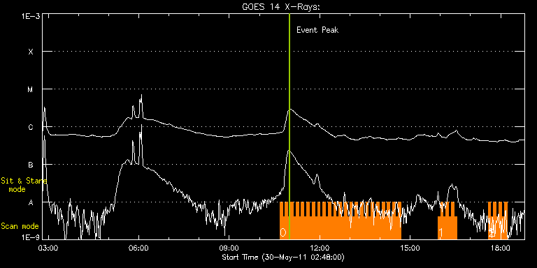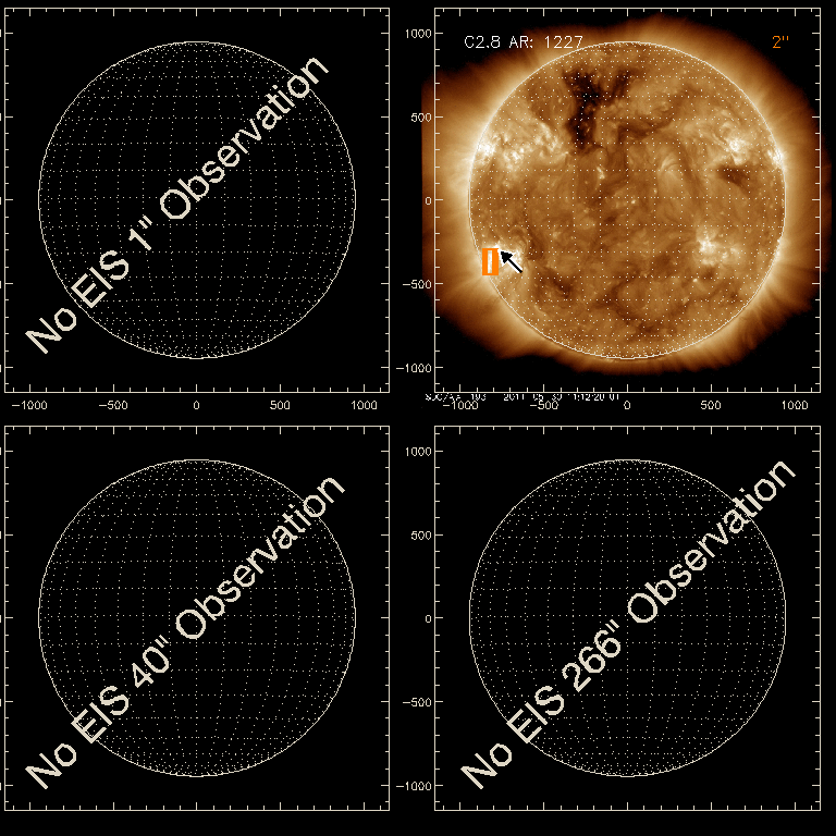 EIS Observation timeline overlay to GOES-Xray curve Code 1" 2" 40" 266" EIS Observations list for this event: STUDY ACRONYM ID DATE OBSERVED DESCRIPTION NOAA# TARGET 0 HH_Flare+AR_180x152 | 22427 | 2011/05/30 10:40:40 | AR observations | 1227 | Flare TIMELINE ID DATE OBSERVED FITS FILE XCEN (+W/-E) YCEN (+N/-S) DUR ----------------------------------------------------------------------------------------------------------------- 22427 | 2011/05/30 10:40:40.000 | eis_l0_20110530_104040.fits.gz | -827.94 | -371.06 | 5m18s 22427 | 2011/05/30 10:46:01.000 | eis_l0_20110530_104601.fits.gz | -827.40 | -371.06 | 5m18s 22427 | 2011/05/30 10:51:22.000 | eis_l0_20110530_105122.fits.gz | -827.02 | -370.90 | 5m17s 22427 | 2011/05/30 10:56:42.000 | eis_l0_20110530_105642.fits.gz | -826.55 | -371.13 | 5m18s 22427 | 2011/05/30 11:02:03.000 | eis_l0_20110530_110203.fits.gz | -826.09 | -371.06 | 5m18s 22427 | 2011/05/30 11:07:24.000 | eis_l0_20110530_110724.fits.gz | -825.70 | -370.98 | 5m18s 22427 | 2011/05/30 11:12:45.000 | eis_l0_20110530_111245.fits.gz | -825.16 | -371.13 | 5m18s 22427 | 2011/05/30 11:18:06.000 | eis_l0_20110530_111806.fits.gz | -824.70 | -371.13 | 5m18s 22427 | 2011/05/30 11:23:27.000 | eis_l0_20110530_112327.fits.gz | -824.23 | -371.06 | 5m17s 22427 | 2011/05/30 11:28:47.000 | eis_l0_20110530_112847.fits.gz | -823.77 | -371.06 | 5m19s 22427 | 2011/05/30 11:34:09.000 | eis_l0_20110530_113409.fits.gz | -823.23 | -371.29 | 5m18s 22427 | 2011/05/30 11:39:30.000 | eis_l0_20110530_113930.fits.gz | -822.69 | -371.21 | 5m17s 22427 | 2011/05/30 11:44:50.000 | eis_l0_20110530_114450.fits.gz | -822.30 | -371.13 | 5m17s 22427 | 2011/05/30 11:50:10.000 | eis_l0_20110530_115010.fits.gz | -821.92 | -371.06 | 5m17s 22427 | 2011/05/30 11:55:30.000 | eis_l0_20110530_115530.fits.gz | -821.38 | -370.98 | 5m18s 22427 | 2011/05/30 12:00:51.000 | eis_l0_20110530_120051.fits.gz | -820.91 | -371.06 | 5m17s 22427 | 2011/05/30 12:06:11.000 | eis_l0_20110530_120611.fits.gz | -820.45 | -371.06 | 5m18s 22427 | 2011/05/30 12:11:32.000 | eis_l0_20110530_121132.fits.gz | -820.14 | -370.83 | 5m18s 22427 | 2011/05/30 12:16:53.000 | eis_l0_20110530_121653.fits.gz | -819.52 | -370.90 | 5m18s 22427 | 2011/05/30 12:22:13.000 | eis_l0_20110530_122213.fits.gz | -819.06 | -370.98 | 5m18s 22427 | 2011/05/30 12:27:34.000 | eis_l0_20110530_122734.fits.gz | -818.52 | -371.13 | 5m19s 22427 | 2011/05/30 12:32:56.000 | eis_l0_20110530_123256.fits.gz | -818.05 | -371.06 | 5m18s 22427 | 2011/05/30 12:38:17.000 | eis_l0_20110530_123817.fits.gz | -817.67 | -371.06 | 5m18s 22427 | 2011/05/30 12:43:38.000 | eis_l0_20110530_124338.fits.gz | -817.21 | -371.06 | 5m17s 22427 | 2011/05/30 12:48:58.000 | eis_l0_20110530_124858.fits.gz | -816.74 | -370.98 | 5m18s 22427 | 2011/05/30 12:54:19.000 | eis_l0_20110530_125419.fits.gz | -816.20 | -371.13 | 5m18s 22427 | 2011/05/30 12:59:40.000 | eis_l0_20110530_125940.fits.gz | -815.74 | -371.13 | 5m18s 22427 | 2011/05/30 13:05:01.000 | eis_l0_20110530_130501.fits.gz | -815.27 | -371.06 | 5m18s 22427 | 2011/05/30 13:10:22.000 | eis_l0_20110530_131022.fits.gz | -814.66 | -370.98 | 5m18s 22427 | 2011/05/30 13:15:42.000 | eis_l0_20110530_131542.fits.gz | -814.27 | -371.06 | 5m18s 22427 | 2011/05/30 13:21:02.000 | eis_l0_20110530_132102.fits.gz | -813.73 | -371.06 | 5m18s 22427 | 2011/05/30 13:26:22.000 | eis_l0_20110530_132622.fits.gz | -813.19 | -370.98 | 5m18s 22427 | 2011/05/30 13:31:43.000 | eis_l0_20110530_133143.fits.gz | -812.88 | -370.98 | 5m18s 22427 | 2011/05/30 13:37:03.000 | eis_l0_20110530_133703.fits.gz | -812.34 | -370.98 | 5m18s 22427 | 2011/05/30 13:42:24.000 | eis_l0_20110530_134224.fits.gz | -811.95 | -370.83 | 5m18s 22427 | 2011/05/30 13:47:45.000 | eis_l0_20110530_134745.fits.gz | -811.41 | -370.90 | 5m18s 22427 | 2011/05/30 13:53:06.000 | eis_l0_20110530_135306.fits.gz | -810.95 | -370.83 | 5m18s 22427 | 2011/05/30 13:58:27.000 | eis_l0_20110530_135827.fits.gz | -810.41 | -370.83 | 5m18s 22427 | 2011/05/30 14:03:48.000 | eis_l0_20110530_140348.fits.gz | -810.02 | -370.98 | 5m18s 22427 | 2011/05/30 14:09:09.000 | eis_l0_20110530_140909.fits.gz | -809.48 | -370.90 | 5m18s 22427 | 2011/05/30 14:14:30.000 | eis_l0_20110530_141430.fits.gz | -809.02 | -371.06 | 5m17s 22427 | 2011/05/30 14:19:50.000 | eis_l0_20110530_141950.fits.gz | -808.63 | -370.90 | 5m18s 22427 | 2011/05/30 14:25:11.000 | eis_l0_20110530_142511.fits.gz | -808.17 | -370.90 | 5m18s 22427 | 2011/05/30 14:30:31.000 | eis_l0_20110530_143031.fits.gz | -807.63 | -370.98 | 5m18s 22427 | 2011/05/30 14:35:52.000 | eis_l0_20110530_143552.fits.gz | -807.09 | -370.90 | 5m19s 1 HH_Flare+AR_180x152 | 22434 | 2011/05/30 15:55:12 | AR observations | 1227 | Flare TIMELINE ID DATE OBSERVED FITS FILE XCEN (+W/-E) YCEN (+N/-S) DUR ----------------------------------------------------------------------------------------------------------------- 22434 | 2011/05/30 15:55:12.000 | eis_l0_20110530_155512.fits.gz | -829.28 | -370.98 | 5m18s 22434 | 2011/05/30 16:00:33.000 | eis_l0_20110530_160033.fits.gz | -828.89 | -370.83 | 5m19s 22434 | 2011/05/30 16:05:55.000 | eis_l0_20110530_160555.fits.gz | -828.43 | -370.90 | 5m17s 22434 | 2011/05/30 16:11:15.000 | eis_l0_20110530_161115.fits.gz | -827.89 | -370.90 | 5m17s 22434 | 2011/05/30 16:16:35.000 | eis_l0_20110530_161635.fits.gz | -827.42 | -370.83 | 5m18s 22434 | 2011/05/30 16:21:56.000 | eis_l0_20110530_162156.fits.gz | -826.80 | -370.90 | 5m17s 22434 | 2011/05/30 16:27:16.000 | eis_l0_20110530_162716.fits.gz | -826.34 | -370.83 | 5m18s 2 HH_Flare+AR_180x152 | 22435 | 2011/05/30 17:35:12 | AR observations | 1227 | Flare TIMELINE ID DATE OBSERVED FITS FILE XCEN (+W/-E) YCEN (+N/-S) DUR ----------------------------------------------------------------------------------------------------------------- 22435 | 2011/05/30 17:35:12.000 | eis_l0_20110530_173512.fits.gz | -829.82 | -370.83 | 5m18s 22435 | 2011/05/30 17:40:33.000 | eis_l0_20110530_174033.fits.gz | -829.36 | -370.90 | 5m18s 22435 | 2011/05/3