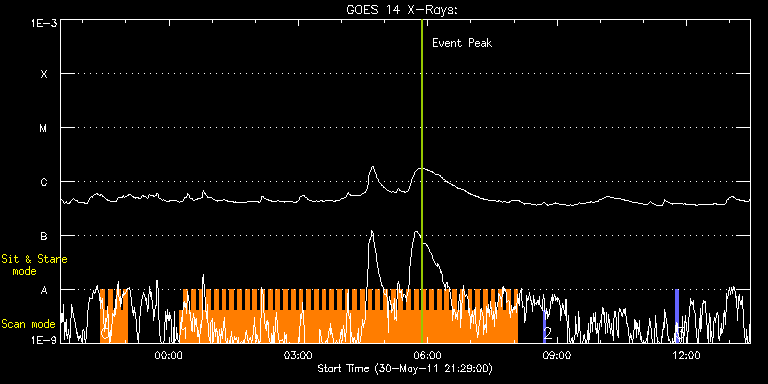 EIS Observation timeline overlay to GOES-Xray curve Code 1" 2" 40" 266" EIS Observations list for this event: STUDY ACRONYM ID DATE OBSERVED DESCRIPTION NOAA# TARGET 0 HH_Flare+AR_180x152 | 22438 | 2011/05/30 22:25:12 | AR observations | 1226 | Flare TIMELINE ID DATE OBSERVED FITS FILE XCEN (+W/-E) YCEN (+N/-S) DUR ----------------------------------------------------------------------------------------------------------------- 22438 | 2011/05/30 22:25:12.000 | eis_l0_20110530_222512.fits.gz | -761.23 | -370.67 | 5m18s 22438 | 2011/05/30 22:30:33.000 | eis_l0_20110530_223033.fits.gz | -760.69 | -370.59 | 5m19s 22438 | 2011/05/30 22:35:54.000 | eis_l0_20110530_223554.fits.gz | -760.15 | -370.59 | 5m18s 22438 | 2011/05/30 22:41:15.000 | eis_l0_20110530_224115.fits.gz | -759.76 | -370.52 | 5m17s 22438 | 2011/05/30 22:46:35.000 | eis_l0_20110530_224635.fits.gz | -759.14 | -370.67 | 5m18s 22438 | 2011/05/30 22:51:55.000 | eis_l0_20110530_225155.fits.gz | -758.53 | -370.67 | 5m19s 22438 | 2011/05/30 22:57:17.000 | eis_l0_20110530_225717.fits.gz | -757.99 | -370.59 | 5m18s 1 HH_Flare+AR_180x152 | 22428 | 2011/05/31 00:15:12 | AR observations + CH boundary | | Flare TIMELINE ID DATE OBSERVED FITS FILE XCEN (+W/-E) YCEN (+N/-S) DUR ----------------------------------------------------------------------------------------------------------------- 22428 | 2011/05/31 00:15:12.000 | eis_l0_20110531_001512.fits.gz | -731.62 | -370.83 | 5m17s 22428 | 2011/05/31 00:20:32.000 | eis_l0_20110531_002032.fits.gz | -731.16 | -370.75 | 5m18s 22428 | 2011/05/31 00:25:53.000 | eis_l0_20110531_002553.fits.gz | -730.54 | -370.67 | 5m19s 22428 | 2011/05/31 00:31:14.000 | eis_l0_20110531_003114.fits.gz | -730.07 | -370.59 | 5m18s 22428 | 2011/05/31 00:36:35.000 | eis_l0_20110531_003635.fits.gz | -729.46 | -370.59 | 5m17s 22428 | 2011/05/31 00:41:55.000 | eis_l0_20110531_004155.fits.gz | -728.91 | -370.59 | 5m18s 22428 | 2011/05/31 00:47:15.000 | eis_l0_20110531_004715.fits.gz | -728.37 | -370.59 | 5m18s 22428 | 2011/05/31 00:52:36.000 | eis_l0_20110531_005236.fits.gz | -727.83 | -370.67 | 5m17s 22428 | 2011/05/31 00:57:56.000 | eis_l0_20110531_005756.fits.gz | -727.37 | -370.67 | 5m17s 22428 | 2011/05/31 01:03:16.000 | eis_l0_20110531_010316.fits.gz | -726.75 | -370.59 | 5m18s 22428 | 2011/05/31 01:08:36.000 | eis_l0_20110531_010836.fits.gz | -726.29 | -370.52 | 5m18s 22428 | 2011/05/31 01:13:56.000 | eis_l0_20110531_011356.fits.gz | -725.75 | -370.52 | 5m19s 22428 | 2011/05/31 01:19:18.000 | eis_l0_20110531_011918.fits.gz | -725.28 | -370.36 | 5m18s 22428 | 2011/05/31 01:24:39.000 | eis_l0_20110531_012439.fits.gz | -724.67 | -370.44 | 5m18s 22428 | 2011/05/31 01:29:59.000 | eis_l0_20110531_012959.fits.gz | -724.12 | -370.52 | 5m19s 22428 | 2011/05/31 01:35:20.000 | eis_l0_20110531_013520.fits.gz | -723.66 | -370.52 | 5m19s 22428 | 2011/05/31 01:40:42.000 | eis_l0_20110531_014042.fits.gz | -723.12 | -370.67 | 5m17s 22428 | 2011/05/31 01:46:02.000 | eis_l0_20110531_014602.fits.gz | -722.50 | -370.67 | 5m17s 22428 | 2011/05/31 01:51:22.000 | eis_l0_20110531_015122.fits.gz | -722.12 | -370.44 | 5m18s 22428 | 2011/05/31 01:56:43.000 | eis_l0_20110531_015643.fits.gz | -721.42 | -370.67 | 5m17s 22428 | 2011/05/31 02:02:03.000 | eis_l0_20110531_020203.fits.gz | -720.96 | -370.59 | 5m17s 22428 | 2011/05/31 02:07:23.000 | eis_l0_20110531_020723.fits.gz | -720.34 | -370.59 | 5m18s 22428 | 2011/05/31 02:12:44.000 | eis_l0_20110531_021244.fits.gz | -719.88 | -370.44 | 5m19s 22428 | 2011/05/31 02:18:05.000 | eis_l0_20110531_021805.fits.gz | -719.26 | -370.59 | 5m19s 22428 | 2011/05/31 02:23:27.000 | eis_l0_20110531_022327.fits.gz | -718.79 | -370.59 | 5m18s 22428 | 2011/05/31 02:28:48.000 | eis_l0_20110531_022848.fits.gz | -718.25 | -370.59 | 5m17s 22428 | 2011/05/31 02:34:08.000 | eis_l0_20110531_023408.fits.gz | -717.64 | -370.59 | 5m17s 22428 | 2011/05/31 02:39:28.000 | eis_l0_20110531_023928.fits.gz | -717.17 | -370.44 | 5m18s 22428 | 2011/05/31 02:44:49.000 | eis_l0_20110531_024449.fits.gz | -716.55 | -370.59 | 5m18s 22428 | 2011/05/31 02:50:10.000 | eis_l0_20110531_025010.fits.gz | -716.01 | -370.59 | 5m18s 22428 | 2011/05/31 02:55:30.000 | eis_l0_20110531_025530.fits.gz | -715.47 | -370.52 | 5m18s 22428 | 2011/05/31 03:00:51.000 | eis_l0_20110531_030051.fits.gz | -715.01 | -370.52 | 5m18s 22428 | 2011/05/31 03:06:11.000 | eis_l0_20110531_030611.fits.gz | -714.47 | -370.36 | 5m18s 22428 | 2011/05/31 03:11:32.000 | eis_l0_20110531_031132.fits.gz | -713.85 | -370.52 | 5m18s 22428 | 2011/05/31 03:16:53.000 | eis_l0_20110531_031653.fits.gz | -713.23 | -370.44 | 5m18s 22428 | 2011/05/31 03:22:14.000 | eis_l0_20110531_032214.fits.gz | -712.77 | -370.52 | 5m18s 22428 | 2011/05/31 03:27:35.000 | eis_l0_20110531_032735.fits.gz | -712.23 | -370.59 | 5m17s 22428 | 2011/05/31 03:32:55.000 | eis_l0_20110531_033255.fits.gz | -711.77 | -370.44 | 5m18s 22428 | 2011/05/31 03:38:16.000 | eis_l0_20110531_033816.fits.gz | -711.15 | -370.59 | 5m18s 22428 | 2011/05/31 03:43:37.000 | eis_l0_20110531_034337.fits.gz | -710.61 | -370.67 | 5m18s 22428 | 2011/05/31 03:48:58.000 | eis_l0_20110531_034858.fits.gz | -710.07 | -370.44 | 5m18s 22428 | 2011/05/31 03:54:19.000 | eis_l0_20110531_035419.fits.gz | -709.37 | -370.59 | 5m17s 22428 | 2011/05/31 03:59:39.000 | eis_l0_20110531_035939.fits.gz | -708.91 | -370.59 | 5m17s 22428 | 2011/05/31 04:04:59.000 | eis_l0_20110531_040459.fits.gz | -708.37 | -370.52 | 5m18s 22428 | 2011/05/31 04:10:19.000 | eis_l0_20110531_041019.fits.gz | -707.83 | -370.67 | 5m18s 22428 | 2011/05/31 04:15:40.000 | eis_l0_20110531_041540.fits.gz | -707.36 | -370.52 | 5m17s 22428 | 2011/05/31 04:21:00.000 | eis_l0_20110531_042100.fits.gz | -706.67 | -370.44 | 5m19s 22428 | 2011/05/31 04:26:21.000 | eis_l0_20110531_042621.fits.gz | -706.20 | -370.44 | 5m18s 22428 | 2011/05/31 04:31:42.000 | eis_l0_20110531_043142.fits.gz | -705.66 | -370.44 | 5m18s 22428 | 2011/05/31 04:37:03.000 | eis_l0_20110531_043703.fits.gz | -705.20 | -370.28 | 