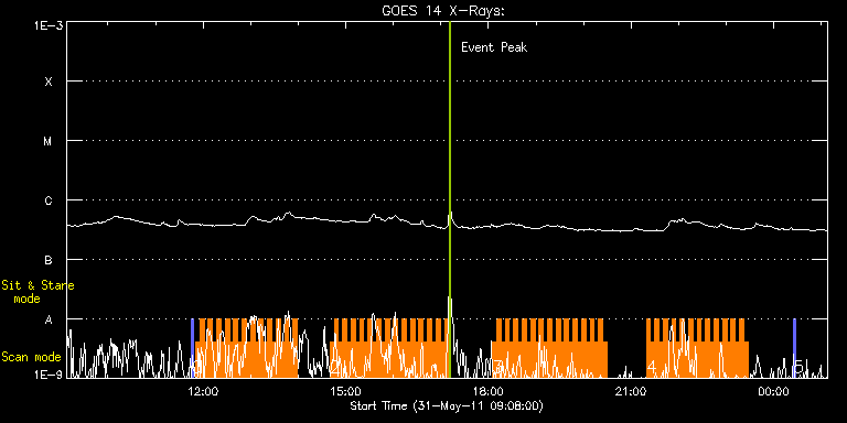 EIS Observation timeline overlay to GOES-Xray curve Code 1" 2" 40" 266" EIS Observations list for this event: STUDY ACRONYM ID DATE OBSERVED DESCRIPTION NOAA# TARGET 0 PRY_slot_contextLITE | 22439 | 2011/05/31 11:45:14 | AR observations | 1226 | Active Region TIMELINE ID DATE OBSERVED FITS FILE XCEN (+W/-E) YCEN (+N/-S) DUR ----------------------------------------------------------------------------------------------------------------- 22439 | 2011/05/31 11:45:14.000 | eis_l0_20110531_114514.fits.gz | -538.83 | -370.67 | 2m56s 1 HH_Flare+AR_180x152 | 22440 | 2011/05/31 11:50:34 | Flare hunting observation | 1226 | Flare TIMELINE ID DATE OBSERVED FITS FILE XCEN (+W/-E) YCEN (+N/-S) DUR ----------------------------------------------------------------------------------------------------------------- 22440 | 2011/05/31 11:50:34.000 | eis_l0_20110531_115034.fits.gz | -563.74 | -370.36 | 5m18s 22440 | 2011/05/31 11:55:55.000 | eis_l0_20110531_115555.fits.gz | -563.12 | -370.44 | 5m18s 22440 | 2011/05/31 12:01:16.000 | eis_l0_20110531_120116.fits.gz | -562.50 | -370.52 | 5m17s 22440 | 2011/05/31 12:06:36.000 | eis_l0_20110531_120636.fits.gz | -561.96 | -370.52 | 5m17s 22440 | 2011/05/31 12:11:56.000 | eis_l0_20110531_121156.fits.gz | -561.34 | -370.52 | 5m18s 22440 | 2011/05/31 12:17:17.000 | eis_l0_20110531_121717.fits.gz | -560.72 | -370.44 | 5m19s 22440 | 2011/05/31 12:22:39.000 | eis_l0_20110531_122239.fits.gz | -560.18 | -370.44 | 5m17s 22440 | 2011/05/31 12:27:59.000 | eis_l0_20110531_122759.fits.gz | -559.56 | -370.36 | 5m18s 22440 | 2011/05/31 12:33:19.000 | eis_l0_20110531_123319.fits.gz | -559.02 | -370.44 | 5m18s 22440 | 2011/05/31 12:38:39.000 | eis_l0_20110531_123839.fits.gz | -558.48 | -370.52 | 5m18s 22440 | 2011/05/31 12:44:00.000 | eis_l0_20110531_124400.fits.gz | -557.79 | -370.44 | 5m17s 22440 | 2011/05/31 12:49:20.000 | eis_l0_20110531_124920.fits.gz | -557.32 | -370.28 | 5m18s 22440 | 2011/05/31 12:54:41.000 | eis_l0_20110531_125441.fits.gz | -556.71 | -370.44 | 5m19s 22440 | 2011/05/31 13:00:03.000 | eis_l0_20110531_130003.fits.gz | -556.01 | -370.44 | 5m18s 22440 | 2011/05/31 13:05:23.000 | eis_l0_20110531_130523.fits.gz | -555.55 | -370.44 | 5m18s 22440 | 2011/05/31 13:10:44.000 | eis_l0_20110531_131044.fits.gz | -554.93 | -370.36 | 5m17s 22440 | 2011/05/31 13:16:04.000 | eis_l0_20110531_131604.fits.gz | -554.31 | -370.44 | 5m19s 22440 | 2011/05/31 13:21:26.000 | eis_l0_20110531_132126.fits.gz | -553.77 | -370.36 | 5m18s 22440 | 2011/05/31 13:26:47.000 | eis_l0_20110531_132647.fits.gz | -553.23 | -370.44 | 5m17s 22440 | 2011/05/31 13:32:07.000 | eis_l0_20110531_133207.fits.gz | -552.61 | -370.52 | 5m17s 22440 | 2011/05/31 13:37:27.000 | eis_l0_20110531_133727.fits.gz | -552.07 | -370.44 | 5m18s 22440 | 2011/05/31 13:42:47.000 | eis_l0_20110531_134247.fits.gz | -551.45 | -370.52 | 5m19s 22440 | 2011/05/31 13:48:09.000 | eis_l0_20110531_134809.fits.gz | -550.76 | -370.44 | 5m18s 22440 | 2011/05/31 13:53:30.000 | eis_l0_20110531_135330.fits.gz | -550.14 | -370.52 | 5m18s 2 HH_Flare+AR_180x152 | 22441 | 2011/05/31 14:40:14 | Flare hunting observation | 1226 | Flare TIMELINE ID DATE OBSERVED FITS FILE XCEN (+W/-E) YCEN (+N/-S) DUR ----------------------------------------------------------------------------------------------------------------- 22441 | 2011/05/31 14:40:14.000 | eis_l0_20110531_144014.fits.gz | -548.71 | -370.52 | 5m18s 22441 | 2011/05/31 14:45:34.000 | eis_l0_20110531_144534.fits.gz | -548.17 | -370.52 | 5m18s 22441 | 2011/05/31 14:50:55.000 | eis_l0_20110531_145055.fits.gz | -547.55 | -370.52 | 5m18s 22441 | 2011/05/31 14:56:16.000 | eis_l0_20110531_145616.fits.gz | -547.01 | -370.44 | 5m17s 22441 | 2011/05/31 15:01:36.000 | eis_l0_20110531_150136.fits.gz | -546.39 | -370.52 | 5m18s 22441 | 2011/05/31 15:06:57.000 | eis_l0_20110531_150657.fits.gz | -545.85 | -370.52 | 5m18s 22441 | 2011/05/31 15:12:18.000 | eis_l0_20110531_151218.fits.gz | -545.31 | -370.36 | 5m17s 22441 | 2011/05/31 15:17:38.000 | eis_l0_20110531_151738.fits.gz | -544.54 | -370.52 | 5m17s 22441 | 2011/05/31 15:22:58.000 | eis_l0_20110531_152258.fits.gz | -544.00 | -370.52 | 5m18s 22441 | 2011/05/31 15:28:19.000 | eis_l0_20110531_152819.fits.gz | -543.38 | -370.52 | 5m18s 22441 | 2011/05/31 15:33:40.000 | eis_l0_20110531_153340.fits.gz | -542.76 | -370.36 | 5m17s 22441 | 2011/05/31 15:39:00.000 | eis_l0_20110531_153900.fits.gz | -542.14 | -370.52 | 5m19s 22441 | 2011/05/31 15:44:22.000 | eis_l0_20110531_154422.fits.gz | -541.52 | -370.52 | 5m18s 22441 | 2011/05/31 15:49:43.000 | eis_l0_20110531_154943.fits.gz | -540.98 | -370.44 | 5m17s 22441 | 2011/05/31 15:55:03.000 | eis_l0_20110531_155503.fits.gz | -540.29 | -370.44 | 5m17s 22441 | 2011/05/31 16:00:23.000 | eis_l0_20110531_160023.fits.gz | -539.83 | -370.36 | 5m17s 22441 | 2011/05/31 16:05:43.000 | eis_l0_20110531_160543.fits.gz | -539.13 | -370.28 | 5m18s 22441 | 2011/05/31 16:11:04.000 | eis_l0_20110531_161104.fits.gz | -538.59 | -370.52 | 5m18s 22441 | 2011/05/31 16:16:25.000 | eis_l0_20110531_161625.fits.gz | -537.97 | -370.44 | 5m18s 22441 | 2011/05/31 16:21:46.000 | eis_l0_20110531_162146.fits.gz | -537.35 | -370.59 | 5m18s 22441 | 2011/05/31 16:27:07.000 | eis_l0_20110531_162707.fits.gz | -536.73 | -370.52 | 5m18s 22441 | 2011/05/31 16:32:28.000 | eis_l0_20110531_163228.fits.gz | -536.12 | -370.52 | 5m18s 22441 | 2011/05/31 16:37:49.000 | eis_l0_20110531_163749.fits.gz | -535.65 | -370.44 | 5m18s 22441 | 2011/05/31 16:43:10.000 | eis_l0_20110531_164310.fits.gz | -534.96 | -370.67 | 5m18s 22441 | 2011/05/31 16:48:31.000 | eis_l0_20110531_164831.fits.gz | -534.42 | -370.52 | 5m17s 22441 | 2011/05/31 16:53:51.000 | eis_l0_20110531_165351.fits.gz | -533.72 | -370.59 | 5m18s 22441 | 2011/05/31 16:59:11.000 | eis_l0_20110531_165911.fits.gz | -533.18 | -370.52 | 5m18s 22441 | 2011/05/31 17:04:32.000 | eis_l0_20110531_170432.fits.gz | -532.56 | -370.44 | 5m18s 3 HH_Flare+AR_180x152 | 22443 | 2011/05/31 18:05:14 | Flare hunting observation |