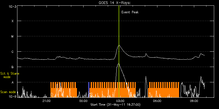 EIS Observation timeline overlay to GOES-Xray curve Code 1" 2" 40" 266" EIS Observations list for this event: STUDY ACRONYM ID DATE OBSERVED DESCRIPTION NOAA# TARGET 0 HH_Flare+AR_180x152 | 22445 | 2011/05/31 21:19:14 | Flare hunting observation | 1226 | Flare TIMELINE ID DATE OBSERVED FITS FILE XCEN (+W/-E) YCEN (+N/-S) DUR ----------------------------------------------------------------------------------------------------------------- 22445 | 2011/05/31 21:19:14.000 | eis_l0_20110531_211914.fits.gz | -503.69 | -370.52 | 5m19s 22445 | 2011/05/31 21:24:36.000 | eis_l0_20110531_212436.fits.gz | -503.00 | -370.44 | 5m18s 22445 | 2011/05/31 21:29:56.000 | eis_l0_20110531_212956.fits.gz | -502.38 | -370.52 | 5m18s 22445 | 2011/05/31 21:35:17.000 | eis_l0_20110531_213517.fits.gz | -501.76 | -370.59 | 5m17s 22445 | 2011/05/31 21:40:37.000 | eis_l0_20110531_214037.fits.gz | -501.22 | -370.52 | 5m17s 22445 | 2011/05/31 21:45:57.000 | eis_l0_20110531_214557.fits.gz | -500.52 | -370.67 | 5m18s 22445 | 2011/05/31 21:51:18.000 | eis_l0_20110531_215118.fits.gz | -499.98 | -370.52 | 5m18s 22445 | 2011/05/31 21:56:39.000 | eis_l0_20110531_215639.fits.gz | -499.29 | -370.52 | 5m19s 22445 | 2011/05/31 22:02:01.000 | eis_l0_20110531_220201.fits.gz | -498.59 | -370.52 | 5m17s 22445 | 2011/05/31 22:07:21.000 | eis_l0_20110531_220721.fits.gz | -497.97 | -370.59 | 5m17s 22445 | 2011/05/31 22:12:41.000 | eis_l0_20110531_221241.fits.gz | -497.51 | -370.44 | 5m18s 22445 | 2011/05/31 22:18:02.000 | eis_l0_20110531_221802.fits.gz | -496.74 | -370.36 | 5m18s 22445 | 2011/05/31 22:23:23.000 | eis_l0_20110531_222323.fits.gz | -496.20 | -370.44 | 5m18s 22445 | 2011/05/31 22:28:44.000 | eis_l0_20110531_222844.fits.gz | -495.58 | -370.44 | 5m18s 22445 | 2011/05/31 22:34:05.000 | eis_l0_20110531_223405.fits.gz | -494.89 | -370.36 | 5m18s 22445 | 2011/05/31 22:39:26.000 | eis_l0_20110531_223926.fits.gz | -494.34 | -370.36 | 5m17s 22445 | 2011/05/31 22:44:46.000 | eis_l0_20110531_224446.fits.gz | -493.65 | -370.52 | 5m18s 22445 | 2011/05/31 22:50:07.000 | eis_l0_20110531_225007.fits.gz | -493.11 | -370.28 | 5m18s 22445 | 2011/05/31 22:55:28.000 | eis_l0_20110531_225528.fits.gz | -492.49 | -370.44 | 5m18s 22445 | 2011/05/31 23:00:49.000 | eis_l0_20110531_230049.fits.gz | -491.80 | -370.44 | 5m17s 22445 | 2011/05/31 23:06:09.000 | eis_l0_20110531_230609.fits.gz | -491.18 | -370.52 | 5m18s 22445 | 2011/05/31 23:11:29.000 | eis_l0_20110531_231129.fits.gz | -490.64 | -370.52 | 5m18s 22445 | 2011/05/31 23:16:49.000 | eis_l0_20110531_231649.fits.gz | -490.02 | -370.52 | 5m18s 22445 | 2011/05/31 23:22:09.000 | eis_l0_20110531_232209.fits.gz | -489.32 | -370.59 | 5m18s 1 PRY_slot_contextLITE | 22447 | 2011/06/01 00:25:20 | AR observations | 1226 | Active Region TIMELINE ID DATE OBSERVED FITS FILE XCEN (+W/-E) YCEN (+N/-S) DUR ----------------------------------------------------------------------------------------------------------------- 22447 | 2011/06/01 00:25:20.000 | eis_l0_20110601_002520.fits.gz | -452.47 | -370.44 | 2m56s 2 HH_Flare+AR_180x152 | 22448 | 2011/06/01 00:30:34 | Flare hunting observation | 1226 | Flare TIMELINE ID DATE OBSERVED FITS FILE XCEN (+W/-E) YCEN (+N/-S) DUR ----------------------------------------------------------------------------------------------------------------- 22448 | 2011/06/01 00:30:34.000 | eis_l0_20110601_003034.fits.gz | -483.71 | -370.52 | 5m18s 22448 | 2011/06/01 00:35:54.000 | eis_l0_20110601_003554.fits.gz | -483.09 | -370.52 | 5m19s 22448 | 2011/06/01 00:41:16.000 | eis_l0_20110601_004116.fits.gz | -482.55 | -370.59 | 5m18s 22448 | 2011/06/01 00:46:37.000 | eis_l0_20110601_004637.fits.gz | -481.93 | -370.44 | 5m18s 22448 | 2011/06/01 00:51:58.000 | eis_l0_20110601_005158.fits.gz | -481.24 | -370.44 | 5m18s 22448 | 2011/06/01 00:57:19.000 | eis_l0_20110601_005719.fits.gz | -480.62 | -370.59 | 5m18s 22448 | 2011/06/01 01:02:40.000 | eis_l0_20110601_010240.fits.gz | -479.92 | -370.67 | 5m17s 22448 | 2011/06/01 01:08:00.000 | eis_l0_20110601_010800.fits.gz | -479.38 | -370.52 | 5m17s 22448 | 2011/06/01 01:13:20.000 | eis_l0_20110601_011320.fits.gz | -478.53 | -370.59 | 5m18s 22448 | 2011/06/01 01:18:40.000 | eis_l0_20110601_011840.fits.gz | -477.99 | -370.59 | 5m18s 22448 | 2011/06/01 01:24:01.000 | eis_l0_20110601_012401.fits.gz | -477.45 | -370.59 | 5m17s 22448 | 2011/06/01 01:29:21.000 | eis_l0_20110601_012921.fits.gz | -476.76 | -370.44 | 5m17s 22448 | 2011/06/01 01:34:41.000 | eis_l0_20110601_013441.fits.gz | -476.21 | -370.44 | 5m18s 22448 | 2011/06/01 01:40:02.000 | eis_l0_20110601_014002.fits.gz | -475.60 | -370.44 | 5m18s 22448 | 2011/06/01 01:45:23.000 | eis_l0_20110601_014523.fits.gz | -474.90 | -370.59 | 5m19s 22448 | 2011/06/01 01:50:45.000 | eis_l0_20110601_015045.fits.gz | -474.28 | -370.44 | 5m17s 22448 | 2011/06/01 01:56:05.000 | eis_l0_20110601_015605.fits.gz | -473.74 | -370.28 | 5m17s 22448 | 2011/06/01 02:01:25.000 | eis_l0_20110601_020125.fits.gz | -472.97 | -370.44 | 5m18s 22448 | 2011/06/01 02:06:45.000 | eis_l0_20110601_020645.fits.gz | -472.35 | -370.44 | 5m18s 22448 | 2011/06/01 02:12:05.000 | eis_l0_20110601_021205.fits.gz | -471.66 | -370.59 | 5m18s 22448 | 2011/06/01 02:17:26.000 | eis_l0_20110601_021726.fits.gz | -471.12 | -370.44 | 5m17s 22448 | 2011/06/01 02:22:46.000 | eis_l0_20110601_022246.fits.gz | -470.34 | -370.67 | 5m17s 22448 | 2011/06/01 02:28:06.000 | eis_l0_20110601_022806.fits.gz | -469.88 | -370.59 | 5m17s 22448 | 2011/06/01 02:33:26.000 | eis_l0_20110601_023326.fits.gz | -469.18 | -370.59 | 5m17s 22448 | 2011/06/01 02:38:46.000 | eis_l0_20110601_023846.fits.gz | -468.49 | -370.52 | 5m18s 22448 | 2011/06/01 02:44:07.000 | eis_l0_20110601_024407.fits.gz | -467.95 | -370.59 | 5m18s 22448 | 2011/06/01 02:49:27.000 | eis_l0_20110601_024927.fits.gz | -467.18 | -370.44 | 5m19s 22448 | 2011/06/01 02:54:49.000 | eis_l0_20110601_025449.fits.gz | -466.48 | -370.59 | 5m18s 22448 | 2011/06/01 03:00:10.000 | eis_l0_20110601_030010.fits.gz | -465.94 | -370