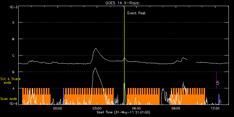EIS Observation timeline overlay to GOES-Xray curve Code 1" 2" 40" 266" EIS Observations list for this event: STUDY ACRONYM ID DATE OBSERVED DESCRIPTION NOAA# TARGET 0 HH_Flare+AR_180x152 | 22445 | 2011/05/31 21:19:14 | Flare hunting observation | 1226 | Flare TIMELINE ID DATE OBSERVED FITS FILE XCEN (+W/-E) YCEN (+N/-S) DUR ----------------------------------------------------------------------------------------------------------------- 22445 | 2011/05/31 21:19:14.000 | eis_l0_20110531_211914.fits.gz | -503.69 | -370.52 | 5m19s 22445 | 2011/05/31 21:24:36.000 | eis_l0_20110531_212436.fits.gz | -503.00 | -370.44 | 5m18s 22445 | 2011/05/31 21:29:56.000 | eis_l0_20110531_212956.fits.gz | -502.38 | -370.52 | 5m18s 22445 | 2011/05/31 21:35:17.000 | eis_l0_20110531_213517.fits.gz | -501.76 | -370.59 | 5m17s 22445 | 2011/05/31 21:40:37.000 | eis_l0_20110531_214037.fits.gz | -501.22 | -370.52 | 5m17s 22445 | 2011/05/31 21:45:57.000 | eis_l0_20110531_214557.fits.gz | -500.52 | -370.67 | 5m18s 22445 | 2011/05/31 21:51:18.000 | eis_l0_20110531_215118.fits.gz | -499.98 | -370.52 | 5m18s 22445 | 2011/05/31 21:56:39.000 | eis_l0_20110531_215639.fits.gz | -499.29 | -370.52 | 5m19s 22445 | 2011/05/31 22:02:01.000 | eis_l0_20110531_220201.fits.gz | -498.59 | -370.52 | 5m17s 22445 | 2011/05/31 22:07:21.000 | eis_l0_20110531_220721.fits.gz | -497.97 | -370.59 | 5m17s 22445 | 2011/05/31 22:12:41.000 | eis_l0_20110531_221241.fits.gz | -497.51 | -370.44 | 5m18s 22445 | 2011/05/31 22:18:02.000 | eis_l0_20110531_221802.fits.gz | -496.74 | -370.36 | 5m18s 22445 | 2011/05/31 22:23:23.000 | eis_l0_20110531_222323.fits.gz | -496.20 | -370.44 | 5m18s 22445 | 2011/05/31 22:28:44.000 | eis_l0_20110531_222844.fits.gz | -495.58 | -370.44 | 5m18s 22445 | 2011/05/31 22:34:05.000 | eis_l0_20110531_223405.fits.gz | -494.89 | -370.36 | 5m18s 22445 | 2011/05/31 22:39:26.000 | eis_l0_20110531_223926.fits.gz | -494.34 | -370.36 | 5m17s 22445 | 2011/05/31 22:44:46.000 | eis_l0_20110531_224446.fits.gz | -493.65 | -370.52 | 5m18s 22445 | 2011/05/31 22:50:07.000 | eis_l0_20110531_225007.fits.gz | -493.11 | -370.28 | 5m18s 22445 | 2011/05/31 22:55:28.000 | eis_l0_20110531_225528.fits.gz | -492.49 | -370.44 | 5m18s 22445 | 2011/05/31 23:00:49.000 | eis_l0_20110531_230049.fits.gz | -491.80 | -370.44 | 5m17s 22445 | 2011/05/31 23:06:09.000 | eis_l0_20110531_230609.fits.gz | -491.18 | -370.52 | 5m18s 22445 | 2011/05/31 23:11:29.000 | eis_l0_20110531_231129.fits.gz | -490.64 | -370.52 | 5m18s 22445 | 2011/05/31 23:16:49.000 | eis_l0_20110531_231649.fits.gz | -490.02 | -370.52 | 5m18s 22445 | 2011/05/31 23:22:09.000 | eis_l0_20110531_232209.fits.gz | -489.32 | -370.59 | 5m18s 1 PRY_slot_contextLITE | 22447 | 2011/06/01 00:25:20 | AR observations | 1226 | Active Region TIMELINE ID DATE OBSERVED FITS FILE XCEN (+W/-E) YCEN (+N/-S) DUR ----------------------------------------------------------------------------------------------------------------- 22447 | 2011/06/01 00:25:20.000 | eis_l0_20110601_002520.fits.gz | -452.47 | -370.44 | 2m56s 2 HH_Flare+AR_180x152 | 22448 | 2011/06/01 00:30:34 | Flare hunting observation | 1226 | Flare TIMELINE ID DATE OBSERVED FITS FILE XCEN (+W/-E) YCEN (+N/-S) DUR ----------------------------------------------------------------------------------------------------------------- 22448 | 2011/06/01 00:30:34.000 | eis_l0_20110601_003034.fits.gz | -483.71 | -370.52 | 5m18s 22448 | 2011/06/01 00:35:54.000 | eis_l0_20110601_003554.fits.gz | -483.09 | -370.52 | 5m19s 22448 | 2011/06/01 00:41:16.000 | eis_l0_20110601_004116.fits.gz | -482.55 | -370.59 | 5m18s 22448 | 2011/06/01 00:46:37.000 | eis_l0_20110601_004637.fits.gz | -481.93 | -370.44 | 5m18s 22448 | 2011/06/01 00:51:58.000 | eis_l0_20110601_005158.fits.gz | -481.24 | -370.44 | 5m18s 22448 | 2011/06/01 00:57:19.000 | eis_l0_20110601_005719.fits.gz | -480.62 | -370.59 | 5m18s 22448 | 2011/06/01 01:02:40.000 | eis_l0_20110601_010240.fits.gz | -479.92 | -370.67 | 5m17s 22448 | 2011/06/01 01:08:00.000 | eis_l0_20110601_010800.fits.gz | -479.38 | -370.52 | 5m17s 22448 | 2011/06/01 01:13:20.000 | eis_l0_20110601_011320.fits.gz | -478.53 | -370.59 | 5m18s 22448 | 2011/06/01 01:18:40.000 | eis_l0_20110601_011840.fits.gz | -477.99 | -370.59 | 5m18s 22448 | 2011/06/01 01:24:01.000 | eis_l0_20110601_012401.fits.gz | -477.45 | -370.59 | 5m17s 22448 | 2011/06/01 01:29:21.000 | eis_l0_20110601_012921.fits.gz | -476.76 | -370.44 | 5m17s 22448 | 2011/06/01 01:34:41.000 | eis_l0_20110601_013441.fits.gz | -476.21 | -370.44 | 5m18s 22448 | 2011/06/01 01:40:02.000 | eis_l0_20110601_014002.fits.gz | -475.60 | -370.44 | 5m18s 22448 | 2011/06/01 01:45:23.000 | eis_l0_20110601_014523.fits.gz | -474.90 | -370.59 | 5m19s 22448 | 2011/06/01 01:50:45.000 | eis_l0_20110601_015045.fits.gz | -474.28 | -370.44 | 5m17s 22448 | 2011/06/01 01:56:05.000 | eis_l0_20110601_015605.fits.gz | -473.74 | -370.28 | 5m17s 22448 | 2011/06/01 02:01:25.000 | eis_l0_20110601_020125.fits.gz | -472.97 | -370.44 | 5m18s 22448 | 2011/06/01 02:06:45.000 | eis_l0_20110601_020645.fits.gz | -472.35 | -370.44 | 5m18s 22448 | 2011/06/01 02:12:05.000 | eis_l0_20110601_021205.fits.gz | -471.66 | -370.59 | 5m18s 22448 | 2011/06/01 02:17:26.000 | eis_l0_20110601_021726.fits.gz | -471.12 | -370.44 | 5m17s 22448 | 2011/06/01 02:22:46.000 | eis_l0_20110601_022246.fits.gz | -470.34 | -370.67 | 5m17s 22448 | 2011/06/01 02:28:06.000 | eis_l0_20110601_022806.fits.gz | -469.88 | -370.59 | 5m17s 22448 | 2011/06/01 02:33:26.000 | eis_l0_20110601_023326.fits.gz | -469.18 | -370.59 | 5m17s 22448 | 2011/06/01 02:38:46.000 | eis_l0_20110601_023846.fits.gz | -468.49 | -370.52 | 5m18s 22448 | 2011/06/01 02:44:07.000 | eis_l0_20110601_024407.fits.gz | -467.95 | -370.59 | 5m18s 22448 | 2011/06/01 02:49:27.000 | eis_l0_20110601_024927.fits.gz | -467.18 | -370.44 | 5m19s 22448 | 2011/06/01 02:54:49.000 | eis_l0_20110601_025449.fits.gz | -466.48 | -370.59 | 5m18s 22448 | 2011/06/01 03:00:10.000 | eis_l0_20110601_030010.fits.gz | -465.94 | -370