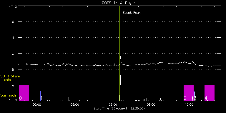 EIS Observation timeline overlay to GOES-Xray curve Code 1" 2" 40" 266" EIS Observations list for this event: STUDY ACRONYM ID DATE OBSERVED DESCRIPTION NOAA# TARGET 0 HPW021_VEL_120x512v2 | 22967 | 2011/06/26 22:36:39 | Detailed scan across active region (3 | 1239 | Active Region TIMELINE ID DATE OBSERVED FITS FILE XCEN (+W/-E) YCEN (+N/-S) DUR ----------------------------------------------------------------------------------------------------------------- 22967 | 2011/06/26 22:36:39.000 | eis_l0_20110626_223639.fits.gz | 765.87 | 214.33 | 46m52s 1 PRY_slot_context_v3 | 22968 | 2011/06/27 00:15:32 | Detailed scan across active region (co | 1236 | Active Region TIMELINE ID DATE OBSERVED FITS FILE XCEN (+W/-E) YCEN (+N/-S) DUR ----------------------------------------------------------------------------------------------------------------- 22968 | 2011/06/27 00:15:32.000 | eis_l0_20110627_001532.fits.gz | 859.82 | 214.56 | 2m57s 2 HPW021_VEL_120x512v2 | 22969 | 2011/06/27 11:34:19 | Detailed scan across active region (1 | | Active Region TIMELINE ID DATE OBSERVED FITS FILE XCEN (+W/-E) YCEN (+N/-S) DUR ----------------------------------------------------------------------------------------------------------------- 22969 | 2011/06/27 11:34:19.000 | eis_l0_20110627_113419.fits.gz | 983.45 | 214.33 | 46m55s 3 PRY_slot_context_v3 | 22970 | 2011/06/27 12:21:38 | Detailed scan across active region (co | 1236 | Active Region TIMELINE ID DATE OBSERVED FITS FILE XCEN (+W/-E) YCEN (+N/-S) DUR ----------------------------------------------------------------------------------------------------------------- 22970 | 2011/06/27 12:21:38.000 | eis_l0_20110627_122138.fits.gz | 859.89 | 214.40 | 2m56s 4 HPW021_VEL_120x512v2 | 22971 | 2011/06/27 13:12:49 | Detailed scan across active region (2 | 1236 | Active Region TIMELINE ID DATE OBSERVED FITS FILE XCEN (+W/-E) YCEN (+N/-S) DUR ----------------------------------------------------------------------------------------------------------------- 22971 | 2011/06/27 13:12:49.000 | eis_l0_20110627_131249.fits.gz | 874.54 | 214.48 | 46m54s : Check study information : Download file : View thumbnails For this event, also check for: