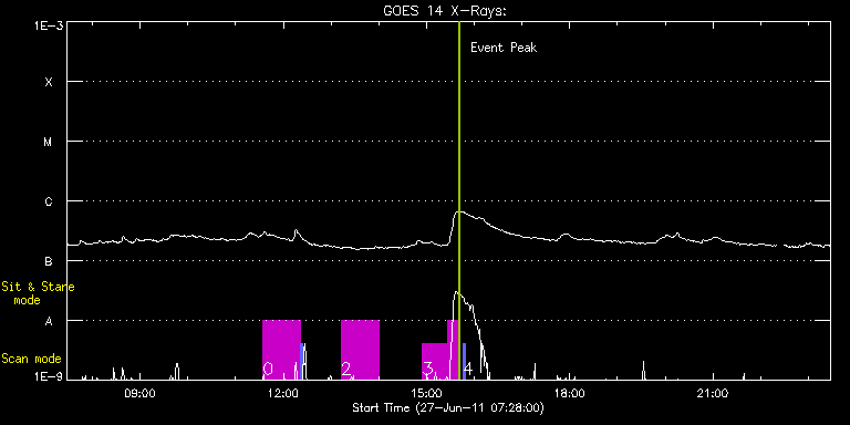EIS Observation timeline overlay to GOES-Xray curve Code 1" 2" 40" 266" EIS Observations list for this event: STUDY ACRONYM ID DATE OBSERVED DESCRIPTION NOAA# TARGET 0 HPW021_VEL_120x512v2 | 22969 | 2011/06/27 11:34:19 | Detailed scan across active region (1 | | Active Region TIMELINE ID DATE OBSERVED FITS FILE XCEN (+W/-E) YCEN (+N/-S) DUR ----------------------------------------------------------------------------------------------------------------- 22969 | 2011/06/27 11:34:19.000 | eis_l0_20110627_113419.fits.gz | 983.45 | 214.33 | 46m55s 1 PRY_slot_context_v3 | 22970 | 2011/06/27 12:21:38 | Detailed scan across active region (co | 1236 | Active Region TIMELINE ID DATE OBSERVED FITS FILE XCEN (+W/-E) YCEN (+N/-S) DUR ----------------------------------------------------------------------------------------------------------------- 22970 | 2011/06/27 12:21:38.000 | eis_l0_20110627_122138.fits.gz | 859.89 | 214.40 | 2m56s 2 HPW021_VEL_120x512v2 | 22971 | 2011/06/27 13:12:49 | Detailed scan across active region (2 | 1236 | Active Region TIMELINE ID DATE OBSERVED FITS FILE XCEN (+W/-E) YCEN (+N/-S) DUR ----------------------------------------------------------------------------------------------------------------- 22971 | 2011/06/27 13:12:49.000 | eis_l0_20110627_131249.fits.gz | 874.54 | 214.48 | 46m54s 3 HPW021_VEL_120x512v2 | 22972 | 2011/06/27 14:55:12 | Detailed scan across active region (3 | | Active Region TIMELINE ID DATE OBSERVED FITS FILE XCEN (+W/-E) YCEN (+N/-S) DUR ----------------------------------------------------------------------------------------------------------------- 22972 | 2011/06/27 14:55:12.000 | eis_l0_20110627_145512.fits.gz | 765.79 | 214.40 | 31m15s 22972 | 2011/06/27 15:26:28.000 | eis_l0_20110627_152628.fits.gz | 765.79 | 214.40 | 15m37s 4 PRY_slot_context_v3 | 22973 | 2011/06/27 15:45:47 | Detailed scan across active region (co | 1236 | Active Region TIMELINE ID DATE OBSERVED FITS FILE XCEN (+W/-E) YCEN (+N/-S) DUR ----------------------------------------------------------------------------------------------------------------- 22973 | 2011/06/27 15:45:47.000 | eis_l0_20110627_154547.fits.gz | 859.89 | 214.40 | 2m56s : Check study information : Download file : View thumbnails For this event, also check for:
