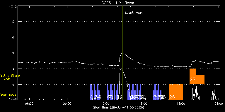 EIS Observation timeline overlay to GOES-Xray curve Code 1" 2" 40" 266" EIS Observations list for this event: STUDY ACRONYM ID DATE OBSERVED DESCRIPTION NOAA# TARGET 0 full_sun_slot_scan_1 | 22985 | 2011/06/28 10:50:34 | HOP 130 (1T of 15) | | Quiet Sun TIMELINE ID DATE OBSERVED FITS FILE XCEN (+W/-E) YCEN (+N/-S) DUR ----------------------------------------------------------------------------------------------------------------- 22985 | 2011/06/28 10:50:34.000 | eis_l0_20110628_105034.fits.gz | 920.84 | 185.65 | 5m27s 1 full_sun_slot_scan_1 | 22986 | 2011/06/28 10:56:06 | HOP 130 (1B of 15) | 1240 | Quiet Sun TIMELINE ID DATE OBSERVED FITS FILE XCEN (+W/-E) YCEN (+N/-S) DUR ----------------------------------------------------------------------------------------------------------------- 22986 | 2011/06/28 10:56:06.000 | eis_l0_20110628_105606.fits.gz | 920.69 | -286.35 | 5m27s 2 full_sun_slot_scan_1 | 22987 | 2011/06/28 11:06:14 | HOP 130 (2T of 15) | 1241 | Quiet Sun TIMELINE ID DATE OBSERVED FITS FILE XCEN (+W/-E) YCEN (+N/-S) DUR ----------------------------------------------------------------------------------------------------------------- 22987 | 2011/06/28 11:06:14.000 | eis_l0_20110628_110614.fits.gz | 452.64 | 185.50 | 5m27s 3 full_sun_slot_scan_1 | 22988 | 2011/06/28 11:11:46 | HOP 130 (2B of 15) | | Quiet Sun TIMELINE ID DATE OBSERVED FITS FILE XCEN (+W/-E) YCEN (+N/-S) DUR ----------------------------------------------------------------------------------------------------------------- 22988 | 2011/06/28 11:11:46.000 | eis_l0_20110628_111146.fits.gz | 452.64 | -286.42 | 5m27s 4 full_sun_slot_scan_1 | 22989 | 2011/06/28 11:22:14 | HOP 130 (3T of 15) | 1242 | Quiet Sun TIMELINE ID DATE OBSERVED FITS FILE XCEN (+W/-E) YCEN (+N/-S) DUR ----------------------------------------------------------------------------------------------------------------- 22989 | 2011/06/28 11:22:14.000 | eis_l0_20110628_112214.fits.gz | -15.32 | 185.50 | 5m27s 5 full_sun_slot_scan_1 | 22990 | 2011/06/28 11:27:46 | HOP 130 (3B of 15) | | Quiet Sun TIMELINE ID DATE OBSERVED FITS FILE XCEN (+W/-E) YCEN (+N/-S) DUR ----------------------------------------------------------------------------------------------------------------- 22990 | 2011/06/28 11:27:46.000 | eis_l0_20110628_112746.fits.gz | -15.32 | -286.42 | 5m27s 6 full_sun_slot_scan_1 | 22991 | 2011/06/28 12:08:44 | HOP 130 (4T of 15) | | Quiet Sun TIMELINE ID DATE OBSERVED FITS FILE XCEN (+W/-E) YCEN (+N/-S) DUR ----------------------------------------------------------------------------------------------------------------- 22991 | 2011/06/28 12:08:44.000 | eis_l0_20110628_120844.fits.gz | -483.29 | 185.58 | 5m27s 7 full_sun_slot_scan_1 | 22992 | 2011/06/28 12:14:16 | HOP 130 (4B of 15) | | Quiet Sun TIMELINE ID DATE OBSERVED FITS FILE XCEN (+W/-E) YCEN (+N/-S) DUR ----------------------------------------------------------------------------------------------------------------- 22992 | 2011/06/28 12:14:16.000 | eis_l0_20110628_121416.fits.gz | -483.21 | -286.50 | 5m27s 8 full_sun_slot_scan_1 | 22993 | 2011/06/28 12:24:44 | HOP 130 (5T of 15) | | Quiet Sun TIMELINE ID DATE OBSERVED FITS FILE XCEN (+W/-E) YCEN (+N/-S) DUR ----------------------------------------------------------------------------------------------------------------- 22993 | 2011/06/28 12:24:44.000 | eis_l0_20110628_122444.fits.gz | -9884.72 | -9777.20 | 5m27s 9 full_sun_slot_scan_1 | 22994 | 2011/06/28 12:30:16 | HOP 130 (5B of 15) | | Quiet Sun TIMELINE ID DATE OBSERVED FITS FILE XCEN (+W/-E) YCEN (+N/-S) DUR ----------------------------------------------------------------------------------------------------------------- 22994 | 2011/06/28 12:30:16.000 | eis_l0_20110628_123016.fits.gz | -9884.72 | -10249.20 | 5m26s 10 full_sun_slot_scan_1 | 22995 | 2011/06/28 12:40:44 | HOP 130 (6 of 15) | | Quiet Sun TIMELINE ID DATE OBSERVED FITS FILE XCEN (+W/-E) YCEN (+N/-S) DUR ----------------------------------------------------------------------------------------------------------------- 22995 | 2011/06/28 12:40:44.000 | eis_l0_20110628_124044.fits.gz | 736.91 | 655.71 | 5m27s 11 full_sun_slot_scan_1 | 22996 | 2011/06/28 12:50:44 | HOP 130 (7T of 15) | | Quiet Sun TIMELINE ID DATE OBSERVED FITS FILE XCEN (+W/-E) YCEN (+N/-S) DUR ----------------------------------------------------------------------------------------------------------------- 22996 | 2011/06/28 12:50:44.000 | eis_l0_20110628_125044.fits.gz | 395.79 | 1032.83 | 5m27s 12 full_sun_slot_scan_1 | 22997 | 2011/06/28 12:56:16 | HOP 130 (7B of 15) | | Quiet Sun TIMELINE ID DATE OBSERVED FITS FILE XCEN (+W/-E) YCEN (+N/-S) DUR ----------------------------------------------------------------------------------------------------------------- 22997 | 2011/06/28 12:56:16.000 | eis_l0_20110628_125616.fits.gz | 395.79 | 560.60 | 5m27s 13 full_sun_slot_scan_1 | 22998 | 2011/06/28 13:47:14 | HOP 130 (8T of 15) | | Quiet Sun TIMELINE ID DATE OBSERVED FITS FILE XCEN (+W/-E) YCEN (+N/-S) DUR ----------------------------------------------------------------------------------------------------------------- 22998 | 2011/06/28 13:47:14.000 | eis_l0_20110628_134714.fits.gz | -15.32 | 1126.69 | 5m27s 14 full_sun_slot_scan_1 | 22999 | 2011/06/28 13:52:46 | HOP 130 (8B of 15) | | Quiet Sun TIMELINE ID DATE OBSERVED FITS FILE XCEN (+W/-E) YCEN (+N/-S) DUR ----------------------------------------------------------------------------------------------------------------- 22999 | 2011/06/28 13:52:46.000 | eis_l0_20110628_135246.fits.gz | -15.25 | 654.53 | 5m26s 15 full_sun_slot_scan_1 | 23000 | 2011/06/28 14:03:14 | HOP 130 (9T of 15) | | Quiet Sun TIMELINE ID DATE OBSERVED FITS FILE XCEN (+W/-E) YCEN (+N/-S) DUR ----------------------------------------------------------------------------------------------------------------- 23000 | 2011/06/28 14:03:14.000 | eis_l0_20110628_140314.fits.gz | -426.11 | 1032.37 | 5m27s 16 full_sun_slot_scan_1 | 23001 | 2011/06/28 14:08:
