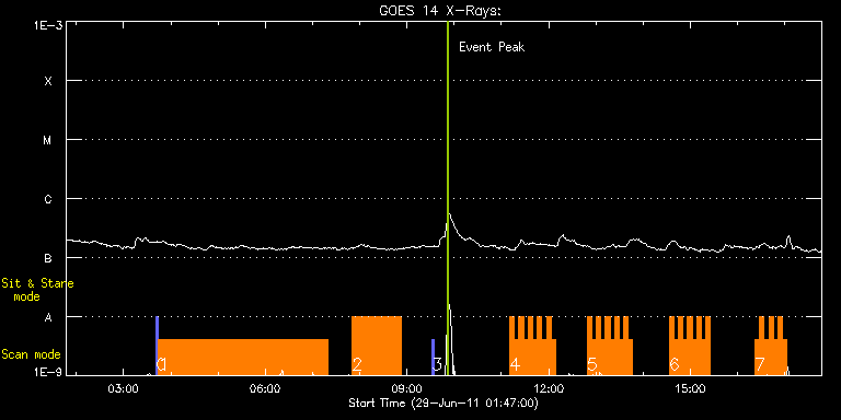 EIS Observation timeline overlay to GOES-Xray curve Code 1" 2" 40" 266" EIS Observations list for this event: STUDY ACRONYM ID DATE OBSERVED DESCRIPTION NOAA# TARGET 0 PRY_slot_contextLITE | 23013 | 2011/06/29 03:41:08 | context of interchange reconnection | 1242 | Active Region TIMELINE ID DATE OBSERVED FITS FILE XCEN (+W/-E) YCEN (+N/-S) DUR ----------------------------------------------------------------------------------------------------------------- 23013 | 2011/06/29 03:41:08.000 | eis_l0_20110629_034108.fits.gz | 116.00 | 368.43 | 2m57s 1 dhb_polar_scan_Q90 | 23014 | 2011/06/29 03:44:30 | interchange reconnection | | Quiet Sun TIMELINE ID DATE OBSERVED FITS FILE XCEN (+W/-E) YCEN (+N/-S) DUR ----------------------------------------------------------------------------------------------------------------- 23014 | 2011/06/29 03:44:30.000 | eis_l0_20110629_034430.fits.gz | 131.45 | 420.43 | 3h35m1s 2 Atlas_60 | 23016 | 2011/06/29 07:50:40 | EIS Spectral Atlas Synoptic obs. | | Quiet Sun TIMELINE ID DATE OBSERVED FITS FILE XCEN (+W/-E) YCEN (+N/-S) DUR ----------------------------------------------------------------------------------------------------------------- 23016 | 2011/06/29 07:50:40.000 | eis_l0_20110629_075040.fits.gz | 163.72 | 368.36 | 1h1m40s 3 PRY_slot_context_v3 | 23017 | 2011/06/29 09:31:50 | context of EIS spectral Atlas Synoptic | 1242 | Active Region TIMELINE ID DATE OBSERVED FITS FILE XCEN (+W/-E) YCEN (+N/-S) DUR ----------------------------------------------------------------------------------------------------------------- 23017 | 2011/06/29 09:31:50.000 | eis_l0_20110629_093150.fits.gz | 162.19 | 368.28 | 2m57s 4 HH_Flare_180x160_v2 | 23026 | 2011/06/29 11:10:34 | flare hunting | 1243 | Flare TIMELINE ID DATE OBSERVED FITS FILE XCEN (+W/-E) YCEN (+N/-S) DUR ----------------------------------------------------------------------------------------------------------------- 23026 | 2011/06/29 11:10:34.000 | eis_l0_20110629_111034.fits.gz | -769.21 | 240.52 | 5m46s 23026 | 2011/06/29 11:16:23.000 | eis_l0_20110629_111623.fits.gz | -768.67 | 240.44 | 5m46s 23026 | 2011/06/29 11:22:12.000 | eis_l0_20110629_112212.fits.gz | -768.21 | 240.29 | 5m46s 23026 | 2011/06/29 11:28:01.000 | eis_l0_20110629_112801.fits.gz | -767.74 | 240.37 | 5m47s 23026 | 2011/06/29 11:33:51.000 | eis_l0_20110629_113351.fits.gz | -767.43 | 240.21 | 5m47s 23026 | 2011/06/29 11:39:40.000 | eis_l0_20110629_113940.fits.gz | -766.89 | 240.44 | 5m47s 23026 | 2011/06/29 11:45:30.000 | eis_l0_20110629_114530.fits.gz | -766.51 | 240.29 | 5m46s 23026 | 2011/06/29 11:51:19.000 | eis_l0_20110629_115119.fits.gz | -765.89 | 240.06 | 5m47s 23026 | 2011/06/29 11:57:08.000 | eis_l0_20110629_115708.fits.gz | -765.50 | 240.21 | 5m47s 23026 | 2011/06/29 12:02:58.000 | eis_l0_20110629_120258.fits.gz | -764.88 | 240.13 | 5m46s 5 HH_Flare_180x160_v2 | 23027 | 2011/06/29 12:48:44 | flare hunting | 1243 | Flare TIMELINE ID DATE OBSERVED FITS FILE XCEN (+W/-E) YCEN (+N/-S) DUR ----------------------------------------------------------------------------------------------------------------- 23027 | 2011/06/29 12:48:44.000 | eis_l0_20110629_124844.fits.gz | -761.18 | 239.90 | 5m46s 23027 | 2011/06/29 12:54:33.000 | eis_l0_20110629_125433.fits.gz | -760.64 | 239.82 | 5m47s 23027 | 2011/06/29 13:00:23.000 | eis_l0_20110629_130023.fits.gz | -760.25 | 239.75 | 5m46s 23027 | 2011/06/29 13:06:12.000 | eis_l0_20110629_130612.fits.gz | -759.78 | 239.59 | 5m47s 23027 | 2011/06/29 13:12:02.000 | eis_l0_20110629_131202.fits.gz | -759.32 | 239.59 | 5m47s 23027 | 2011/06/29 13:17:52.000 | eis_l0_20110629_131752.fits.gz | -758.78 | 239.67 | 5m46s 23027 | 2011/06/29 13:23:41.000 | eis_l0_20110629_132341.fits.gz | -758.24 | 239.51 | 5m47s 23027 | 2011/06/29 13:29:31.000 | eis_l0_20110629_132931.fits.gz | -757.85 | 239.59 | 5m46s 23027 | 2011/06/29 13:35:20.000 | eis_l0_20110629_133520.fits.gz | -757.31 | 239.59 | 5m46s 23027 | 2011/06/29 13:41:09.000 | eis_l0_20110629_134109.fits.gz | -756.93 | 239.59 | 5m46s 6 HH_Flare_180x160_v2 | 23028 | 2011/06/29 14:33:13 | flare hunting | 1243 | Flare TIMELINE ID DATE OBSERVED FITS FILE XCEN (+W/-E) YCEN (+N/-S) DUR ----------------------------------------------------------------------------------------------------------------- 23028 | 2011/06/29 14:33:13.000 | eis_l0_20110629_143313.fits.gz | -752.45 | 239.21 | 5m47s 23028 | 2011/06/29 14:39:03.000 | eis_l0_20110629_143903.fits.gz | -751.98 | 239.13 | 5m46s 23028 | 2011/06/29 14:44:52.000 | eis_l0_20110629_144452.fits.gz | -751.52 | 239.13 | 5m47s 23028 | 2011/06/29 14:50:41.000 | eis_l0_20110629_145041.fits.gz | -751.06 | 239.13 | 5m47s 23028 | 2011/06/29 14:56:31.000 | eis_l0_20110629_145631.fits.gz | -750.52 | 238.97 | 5m46s 23028 | 2011/06/29 15:02:19.000 | eis_l0_20110629_150219.fits.gz | -750.13 | 239.21 | 5m47s 23028 | 2011/06/29 15:08:08.000 | eis_l0_20110629_150808.fits.gz | -749.59 | 239.05 | 5m47s 23028 | 2011/06/29 15:13:57.000 | eis_l0_20110629_151357.fits.gz | -749.05 | 239.05 | 5m46s 23028 | 2011/06/29 15:19:46.000 | eis_l0_20110629_151946.fits.gz | -748.58 | 238.90 | 5m47s 7 HH_Flare_180x160_v2 | 23029 | 2011/06/29 16:22:13 | flare hunting | 1243 | Flare TIMELINE ID DATE OBSERVED FITS FILE XCEN (+W/-E) YCEN (+N/-S) DUR ----------------------------------------------------------------------------------------------------------------- 23029 | 2011/06/29 16:22:13.000 | eis_l0_20110629_162213.fits.gz | -743.18 | 238.51 | 5m46s 23029 | 2011/06/29 16:28:02.000 | eis_l0_20110629_162802.fits.gz | -742.79 | 238.59 | 5m46s 23029 | 2011/06/29 16:33:51.000 | eis_l0_20110629_163351.fits.gz | -742.17 | 238.43 | 5m46s 23029 | 2011/06/29 16:39:40.000 | eis_l0_20110629_163940.fits.gz | -741.63 | 238.43 | 5m46s 23029 | 2011/06/29 16:45:29.000 | eis_l0_20110629_164529.fits.gz | -741.32 | 238.43 | 5m47s 23029 | 2011/06/29 16:51:18.000 | eis_l0_20110629_165118.fits.gz | -740.63 | 238.36 | 5m47s 23029 | 2011/06/29 16:57:08.000 | eis_l0_20110629_165708.fits.