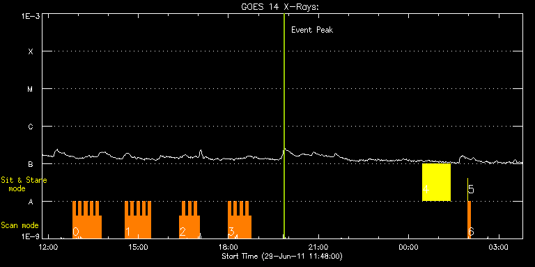 EIS Observation timeline overlay to GOES-Xray curve Code 1" 2" 40" 266" EIS Observations list for this event: STUDY ACRONYM ID DATE OBSERVED DESCRIPTION NOAA# TARGET 0 HH_Flare_180x160_v2 | 23027 | 2011/06/29 12:48:44 | flare hunting | 1243 | Flare TIMELINE ID DATE OBSERVED FITS FILE XCEN (+W/-E) YCEN (+N/-S) DUR ----------------------------------------------------------------------------------------------------------------- 23027 | 2011/06/29 12:48:44.000 | eis_l0_20110629_124844.fits.gz | -761.18 | 239.90 | 5m46s 23027 | 2011/06/29 12:54:33.000 | eis_l0_20110629_125433.fits.gz | -760.64 | 239.82 | 5m47s 23027 | 2011/06/29 13:00:23.000 | eis_l0_20110629_130023.fits.gz | -760.25 | 239.75 | 5m46s 23027 | 2011/06/29 13:06:12.000 | eis_l0_20110629_130612.fits.gz | -759.78 | 239.59 | 5m47s 23027 | 2011/06/29 13:12:02.000 | eis_l0_20110629_131202.fits.gz | -759.32 | 239.59 | 5m47s 23027 | 2011/06/29 13:17:52.000 | eis_l0_20110629_131752.fits.gz | -758.78 | 239.67 | 5m46s 23027 | 2011/06/29 13:23:41.000 | eis_l0_20110629_132341.fits.gz | -758.24 | 239.51 | 5m47s 23027 | 2011/06/29 13:29:31.000 | eis_l0_20110629_132931.fits.gz | -757.85 | 239.59 | 5m46s 23027 | 2011/06/29 13:35:20.000 | eis_l0_20110629_133520.fits.gz | -757.31 | 239.59 | 5m46s 23027 | 2011/06/29 13:41:09.000 | eis_l0_20110629_134109.fits.gz | -756.93 | 239.59 | 5m46s 1 HH_Flare_180x160_v2 | 23028 | 2011/06/29 14:33:13 | flare hunting | 1243 | Flare TIMELINE ID DATE OBSERVED FITS FILE XCEN (+W/-E) YCEN (+N/-S) DUR ----------------------------------------------------------------------------------------------------------------- 23028 | 2011/06/29 14:33:13.000 | eis_l0_20110629_143313.fits.gz | -752.45 | 239.21 | 5m47s 23028 | 2011/06/29 14:39:03.000 | eis_l0_20110629_143903.fits.gz | -751.98 | 239.13 | 5m46s 23028 | 2011/06/29 14:44:52.000 | eis_l0_20110629_144452.fits.gz | -751.52 | 239.13 | 5m47s 23028 | 2011/06/29 14:50:41.000 | eis_l0_20110629_145041.fits.gz | -751.06 | 239.13 | 5m47s 23028 | 2011/06/29 14:56:31.000 | eis_l0_20110629_145631.fits.gz | -750.52 | 238.97 | 5m46s 23028 | 2011/06/29 15:02:19.000 | eis_l0_20110629_150219.fits.gz | -750.13 | 239.21 | 5m47s 23028 | 2011/06/29 15:08:08.000 | eis_l0_20110629_150808.fits.gz | -749.59 | 239.05 | 5m47s 23028 | 2011/06/29 15:13:57.000 | eis_l0_20110629_151357.fits.gz | -749.05 | 239.05 | 5m46s 23028 | 2011/06/29 15:19:46.000 | eis_l0_20110629_151946.fits.gz | -748.58 | 238.90 | 5m47s 2 HH_Flare_180x160_v2 | 23029 | 2011/06/29 16:22:13 | flare hunting | 1243 | Flare TIMELINE ID DATE OBSERVED FITS FILE XCEN (+W/-E) YCEN (+N/-S) DUR ----------------------------------------------------------------------------------------------------------------- 23029 | 2011/06/29 16:22:13.000 | eis_l0_20110629_162213.fits.gz | -743.18 | 238.51 | 5m46s 23029 | 2011/06/29 16:28:02.000 | eis_l0_20110629_162802.fits.gz | -742.79 | 238.59 | 5m46s 23029 | 2011/06/29 16:33:51.000 | eis_l0_20110629_163351.fits.gz | -742.17 | 238.43 | 5m46s 23029 | 2011/06/29 16:39:40.000 | eis_l0_20110629_163940.fits.gz | -741.63 | 238.43 | 5m46s 23029 | 2011/06/29 16:45:29.000 | eis_l0_20110629_164529.fits.gz | -741.32 | 238.43 | 5m47s 23029 | 2011/06/29 16:51:18.000 | eis_l0_20110629_165118.fits.gz | -740.63 | 238.36 | 5m47s 23029 | 2011/06/29 16:57:08.000 | eis_l0_20110629_165708.fits.gz | -740.16 | 238.36 | 5m46s 3 HH_Flare_180x160_v2 | 23030 | 2011/06/29 17:59:13 | flare hunting | 1243 | Flare TIMELINE ID DATE OBSERVED FITS FILE XCEN (+W/-E) YCEN (+N/-S) DUR ----------------------------------------------------------------------------------------------------------------- 23030 | 2011/06/29 17:59:13.000 | eis_l0_20110629_175913.fits.gz | -734.83 | 237.89 | 5m46s 23030 | 2011/06/29 18:05:02.000 | eis_l0_20110629_180502.fits.gz | -734.22 | 238.05 | 5m46s 23030 | 2011/06/29 18:10:51.000 | eis_l0_20110629_181051.fits.gz | -733.68 | 237.89 | 5m46s 23030 | 2011/06/29 18:16:40.000 | eis_l0_20110629_181640.fits.gz | -733.29 | 237.89 | 5m47s 23030 | 2011/06/29 18:22:29.000 | eis_l0_20110629_182229.fits.gz | -732.75 | 237.89 | 5m47s 23030 | 2011/06/29 18:28:19.000 | eis_l0_20110629_182819.fits.gz | -732.13 | 237.82 | 5m47s 23030 | 2011/06/29 18:34:09.000 | eis_l0_20110629_183409.fits.gz | -731.59 | 237.58 | 5m47s 23030 | 2011/06/29 18:39:58.000 | eis_l0_20110629_183958.fits.gz | -731.13 | 237.66 | 5m47s 4 FLARE266_TEST1 | 23023 | 2011/06/30 00:27:33 | EIS flare trigger test (1 of 3) | | Active Region TIMELINE ID DATE OBSERVED FITS FILE XCEN (+W/-E) YCEN (+N/-S) DUR ----------------------------------------------------------------------------------------------------------------- 23023 | 2011/06/30 00:27:33.000 | eis_l0_20110630_002733.fits.gz | -829.91 | 200.73 | 56m 5 FLARE266_TEST1 | 23024 | 2011/06/30 01:58:13 | EIS flare trigger test (2 of 3) | | Active Region TIMELINE ID DATE OBSERVED FITS FILE XCEN (+W/-E) YCEN (+N/-S) DUR ----------------------------------------------------------------------------------------------------------------- 23024 | 2011/06/30 01:58:13.000 | eis_l0_20110630_015813.fits.gz | -821.11 | 200.11 | 5s 6 default_study | 3 | 2011/06/30 01:58:30 | default_study | | Quiet Sun TIMELINE ID DATE OBSERVED FITS FILE XCEN (+W/-E) YCEN (+N/-S) DUR ----------------------------------------------------------------------------------------------------------------- 3 | 2011/06/30 01:58:30.000 | eis_l0_20110630_015830.fits.gz | -776.37 | 183.04 | 5m18s : Check study information : Download file : View thumbnails For this event, also check for: