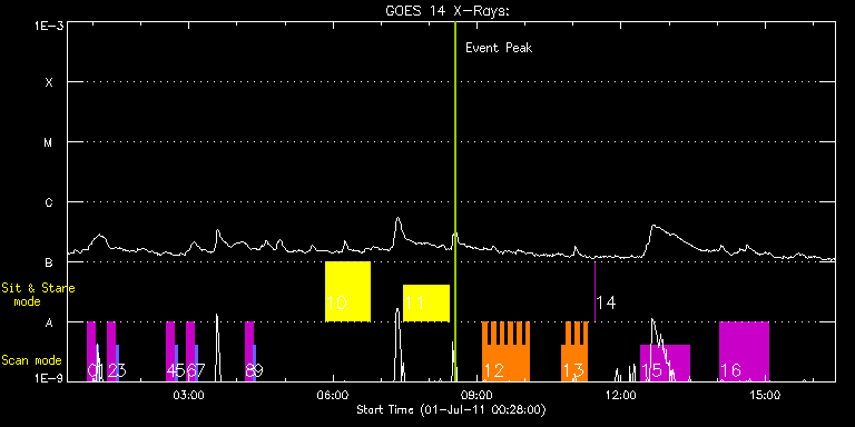 EIS Observation timeline overlay to GOES-Xray curve Code 1" 2" 40" 266" EIS Observations list for this event: STUDY ACRONYM ID DATE OBSERVED DESCRIPTION NOAA# TARGET 0 SK_DEEP_5x512_SLIT1 | 23062 | 2011/07/01 00:53:20 | HOP79: Synoptic SOT Irradiance Scans ( | | Quiet Sun TIMELINE ID DATE OBSERVED FITS FILE XCEN (+W/-E) YCEN (+N/-S) DUR ----------------------------------------------------------------------------------------------------------------- 23062 | 2011/07/01 00:53:20.000 | eis_l0_20110701_005320.fits.gz | -4.04 | 503.46 | 10m7s 1 PRY_slot_contextLITE | 23063 | 2011/07/01 01:03:53 | HOP79: context of Synoptic SOT Irradia | | Active Region TIMELINE ID DATE OBSERVED FITS FILE XCEN (+W/-E) YCEN (+N/-S) DUR ----------------------------------------------------------------------------------------------------------------- 23063 | 2011/07/01 01:03:53.000 | eis_l0_20110701_010353.fits.gz | -19.26 | 503.54 | 2m56s 2 SK_DEEP_5x512_SLIT1 | 23064 | 2011/07/01 01:18:20 | HOP79: Synoptic SOT Irradiance Scans ( | | Quiet Sun TIMELINE ID DATE OBSERVED FITS FILE XCEN (+W/-E) YCEN (+N/-S) DUR ----------------------------------------------------------------------------------------------------------------- 23064 | 2011/07/01 01:18:20.000 | eis_l0_20110701_011820.fits.gz | -4.04 | 603.73 | 10m7s 3 PRY_slot_contextLITE | 23065 | 2011/07/01 01:28:53 | HOP79: context of Synoptic SOT Irradia | | Active Region TIMELINE ID DATE OBSERVED FITS FILE XCEN (+W/-E) YCEN (+N/-S) DUR ----------------------------------------------------------------------------------------------------------------- 23065 | 2011/07/01 01:28:53.000 | eis_l0_20110701_012853.fits.gz | -19.26 | 603.58 | 2m56s 4 SK_DEEP_5x512_SLIT1 | 23066 | 2011/07/01 02:31:50 | HOP79: Synoptic SOT Irradiance Scans ( | | Quiet Sun TIMELINE ID DATE OBSERVED FITS FILE XCEN (+W/-E) YCEN (+N/-S) DUR ----------------------------------------------------------------------------------------------------------------- 23066 | 2011/07/01 02:31:50.000 | eis_l0_20110701_023150.fits.gz | -4.04 | 703.84 | 10m7s 5 PRY_slot_contextLITE | 23067 | 2011/07/01 02:42:23 | HOP79: context of Synoptic SOT Irradia | | Active Region TIMELINE ID DATE OBSERVED FITS FILE XCEN (+W/-E) YCEN (+N/-S) DUR ----------------------------------------------------------------------------------------------------------------- 23067 | 2011/07/01 02:42:23.000 | eis_l0_20110701_024223.fits.gz | -19.26 | 703.69 | 2m56s 6 SK_DEEP_5x512_SLIT1 | 23068 | 2011/07/01 02:56:50 | HOP79: Synoptic SOT Irradiance Scans ( | | Quiet Sun TIMELINE ID DATE OBSERVED FITS FILE XCEN (+W/-E) YCEN (+N/-S) DUR ----------------------------------------------------------------------------------------------------------------- 23068 | 2011/07/01 02:56:50.000 | eis_l0_20110701_025650.fits.gz | -4.04 | 803.42 | 10m7s 7 PRY_slot_contextLITE | 23069 | 2011/07/01 03:07:23 | HOP79: context of Synoptic SOT Irradia | | Active Region TIMELINE ID DATE OBSERVED FITS FILE XCEN (+W/-E) YCEN (+N/-S) DUR ----------------------------------------------------------------------------------------------------------------- 23069 | 2011/07/01 03:07:23.000 | eis_l0_20110701_030723.fits.gz | -19.34 | 803.42 | 2m56s 8 SK_DEEP_5x512_SLIT1 | 23070 | 2011/07/01 04:10:20 | HOP79: Synoptic SOT Irradiance Scans ( | | Quiet Sun TIMELINE ID DATE OBSERVED FITS FILE XCEN (+W/-E) YCEN (+N/-S) DUR ----------------------------------------------------------------------------------------------------------------- 23070 | 2011/07/01 04:10:20.000 | eis_l0_20110701_041020.fits.gz | -4.04 | 903.68 | 10m7s 9 PRY_slot_contextLITE | 23071 | 2011/07/01 04:20:53 | HOP79: context of Synoptic SOT Irradia | | Active Region TIMELINE ID DATE OBSERVED FITS FILE XCEN (+W/-E) YCEN (+N/-S) DUR ----------------------------------------------------------------------------------------------------------------- 23071 | 2011/07/01 04:20:53.000 | eis_l0_20110701_042053.fits.gz | -19.26 | 903.53 | 2m56s 10 FLARE266_TEST1 | 23073 | 2011/07/01 05:50:27 | Flare Trigger test (1 of 3) | | Active Region TIMELINE ID DATE OBSERVED FITS FILE XCEN (+W/-E) YCEN (+N/-S) DUR ----------------------------------------------------------------------------------------------------------------- 23073 | 2011/07/01 05:50:27.000 | eis_l0_20110701_055027.fits.gz | -636.10 | 191.00 | 56m 11 FLARE266_TEST1 | 23074 | 2011/07/01 07:28:43 | Flare Trigger test (2 of 3) | | Active Region TIMELINE ID DATE OBSERVED FITS FILE XCEN (+W/-E) YCEN (+N/-S) DUR ----------------------------------------------------------------------------------------------------------------- 23074 | 2011/07/01 07:28:43.000 | eis_l0_20110701_072843.fits.gz | -623.97 | 190.61 | 56m 12 HH_Flare+AR_180x152 | 23076 | 2011/07/01 09:07:20 | EIS flare hunting | | Flare TIMELINE ID DATE OBSERVED FITS FILE XCEN (+W/-E) YCEN (+N/-S) DUR ----------------------------------------------------------------------------------------------------------------- 23076 | 2011/07/01 09:07:20.000 | eis_l0_20110701_090720.fits.gz | -481.59 | 209.91 | 5m8s 23076 | 2011/07/01 09:12:52.000 | eis_l0_20110701_091252.fits.gz | -480.90 | 210.07 | 5m7s 23076 | 2011/07/01 09:18:02.000 | eis_l0_20110701_091802.fits.gz | -480.28 | 209.91 | 5m18s 23076 | 2011/07/01 09:23:23.000 | eis_l0_20110701_092323.fits.gz | -479.58 | 209.84 | 5m17s 23076 | 2011/07/01 09:28:43.000 | eis_l0_20110701_092843.fits.gz | -478.97 | 209.76 | 5m18s 23076 | 2011/07/01 09:34:03.000 | eis_l0_20110701_093403.fits.gz | -478.35 | 209.84 | 5m19s 23076 | 2011/07/01 09:39:25.000 | eis_l0_20110701_093925.fits.gz | -477.65 | 209.84 | 5m18s 23076 | 2011/07/01 09:44:46.000 | eis_l0_20110701_094446.fits.gz | -476.88 | 209.84 | 5m18s 23076 | 2011/07/01 09:50:07.000 | eis_l0_20110701_095007.fits.gz | -476.26 | 209.84 | 5m17s 23076 | 2011/07/01 09:55:27.000 | eis_l0_20110701_095527.fits.gz | -475.57 | 209.84 | 5m17s 23076 | 2011/07/01 10:00:47.000 | eis_l0_20110701_100047.fits.gz | -474.95 | 209.84 | 5m17s 13 HH_Flare+AR_180x152 | 2307