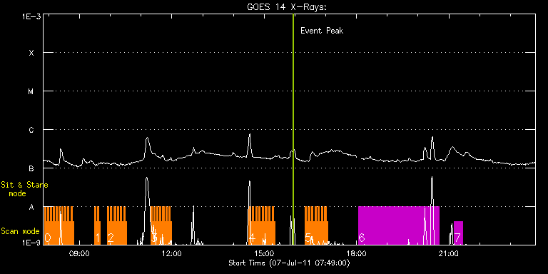EIS Observation timeline overlay to GOES-Xray curve Code 1" 2" 40" 266" EIS Observations list for this event: STUDY ACRONYM ID DATE OBSERVED DESCRIPTION NOAA# TARGET 0 HH_Flare_60x152f | 23185 | 2011/07/07 07:51:26 | Active Region observations - Aoki | 1243 | Flare TIMELINE ID DATE OBSERVED FITS FILE XCEN (+W/-E) YCEN (+N/-S) DUR ----------------------------------------------------------------------------------------------------------------- 23185 | 2011/07/07 07:51:26.000 | eis_l0_20110707_075126.fits.gz | 673.09 | 190.46 | 2m47s 23185 | 2011/07/07 07:54:16.000 | eis_l0_20110707_075416.fits.gz | 673.40 | 190.69 | 2m47s 23185 | 2011/07/07 07:57:06.000 | eis_l0_20110707_075706.fits.gz | 673.63 | 190.61 | 2m48s 23185 | 2011/07/07 07:59:57.000 | eis_l0_20110707_075957.fits.gz | 673.94 | 190.53 | 2m47s 23185 | 2011/07/07 08:02:47.000 | eis_l0_20110707_080247.fits.gz | 674.17 | 190.46 | 2m48s 23185 | 2011/07/07 08:05:38.000 | eis_l0_20110707_080538.fits.gz | 674.48 | 190.61 | 2m47s 23185 | 2011/07/07 08:08:28.000 | eis_l0_20110707_080828.fits.gz | 674.79 | 190.61 | 2m49s 23185 | 2011/07/07 08:11:19.000 | eis_l0_20110707_081119.fits.gz | 675.10 | 190.53 | 2m48s 23185 | 2011/07/07 08:14:10.000 | eis_l0_20110707_081410.fits.gz | 675.33 | 190.61 | 2m48s 23185 | 2011/07/07 08:17:01.000 | eis_l0_20110707_081701.fits.gz | 675.57 | 190.61 | 2m47s 23185 | 2011/07/07 08:19:51.000 | eis_l0_20110707_081951.fits.gz | 675.87 | 190.53 | 2m48s 23185 | 2011/07/07 08:22:42.000 | eis_l0_20110707_082242.fits.gz | 676.18 | 190.61 | 2m48s 23185 | 2011/07/07 08:25:33.000 | eis_l0_20110707_082533.fits.gz | 676.41 | 190.76 | 2m48s 23185 | 2011/07/07 08:28:24.000 | eis_l0_20110707_082824.fits.gz | 676.65 | 190.76 | 2m48s 23185 | 2011/07/07 08:31:15.000 | eis_l0_20110707_083115.fits.gz | 676.96 | 190.76 | 2m48s 23185 | 2011/07/07 08:34:05.000 | eis_l0_20110707_083405.fits.gz | 677.26 | 190.69 | 2m48s 23185 | 2011/07/07 08:36:56.000 | eis_l0_20110707_083656.fits.gz | 677.50 | 190.69 | 2m48s 23185 | 2011/07/07 08:39:46.000 | eis_l0_20110707_083946.fits.gz | 677.96 | 190.69 | 2m49s 23185 | 2011/07/07 08:42:37.000 | eis_l0_20110707_084237.fits.gz | 678.19 | 190.84 | 2m48s 23185 | 2011/07/07 08:45:28.000 | eis_l0_20110707_084528.fits.gz | 678.42 | 190.76 | 2m48s 1 HH_Flare_60x152f | 23186 | 2011/07/07 09:29:12 | Active Region observations - Aoki | 1243 | Flare TIMELINE ID DATE OBSERVED FITS FILE XCEN (+W/-E) YCEN (+N/-S) DUR ----------------------------------------------------------------------------------------------------------------- 23186 | 2011/07/07 09:29:12.000 | eis_l0_20110707_092912.fits.gz | 682.67 | 191.07 | 2m49s 23186 | 2011/07/07 09:32:04.000 | eis_l0_20110707_093204.fits.gz | 683.06 | 191.15 | 2m48s 23186 | 2011/07/07 09:34:54.000 | eis_l0_20110707_093454.fits.gz | 683.29 | 191.15 | 2m49s 23186 | 2011/07/07 09:37:46.000 | eis_l0_20110707_093746.fits.gz | 683.60 | 191.00 | 2m48s 2 HH_Flare_60x152f | 23187 | 2011/07/07 09:54:12 | Active Region observations - Aoki | 1243 | Flare TIMELINE ID DATE OBSERVED FITS FILE XCEN (+W/-E) YCEN (+N/-S) DUR ----------------------------------------------------------------------------------------------------------------- 23187 | 2011/07/07 09:54:12.000 | eis_l0_20110707_095412.fits.gz | 685.22 | 191.15 | 2m48s 23187 | 2011/07/07 09:57:03.000 | eis_l0_20110707_095703.fits.gz | 685.38 | 191.23 | 2m48s 23187 | 2011/07/07 09:59:54.000 | eis_l0_20110707_095954.fits.gz | 685.76 | 191.15 | 2m48s 23187 | 2011/07/07 10:02:45.000 | eis_l0_20110707_100245.fits.gz | 685.99 | 191.23 | 2m49s 23187 | 2011/07/07 10:05:37.000 | eis_l0_20110707_100537.fits.gz | 686.30 | 191.31 | 21s 23187 | 2011/07/07 10:06:05.000 | eis_l0_20110707_100605.fits.gz | 686.38 | 191.15 | 2m20s 23187 | 2011/07/07 10:08:28.000 | eis_l0_20110707_100828.fits.gz | 686.53 | 191.31 | 2m48s 23187 | 2011/07/07 10:11:18.000 | eis_l0_20110707_101118.fits.gz | 686.77 | 191.31 | 2m48s 23187 | 2011/07/07 10:14:09.000 | eis_l0_20110707_101409.fits.gz | 687.08 | 191.31 | 2m48s 23187 | 2011/07/07 10:16:59.000 | eis_l0_20110707_101659.fits.gz | 687.46 | 191.38 | 2m48s 23187 | 2011/07/07 10:19:50.000 | eis_l0_20110707_101950.fits.gz | 687.69 | 191.31 | 2m48s 23187 | 2011/07/07 10:22:41.000 | eis_l0_20110707_102241.fits.gz | 687.92 | 191.31 | 2m48s 23187 | 2011/07/07 10:25:32.000 | eis_l0_20110707_102532.fits.gz | 688.16 | 191.46 | 2m48s 23187 | 2011/07/07 10:28:23.000 | eis_l0_20110707_102823.fits.gz | 688.47 | 191.46 | 2m48s 3 HH_Flare_60x152f | 23202 | 2011/07/07 11:19:15 | Active Region observations - Aoki | | Flare TIMELINE ID DATE OBSERVED FITS FILE XCEN (+W/-E) YCEN (+N/-S) DUR ----------------------------------------------------------------------------------------------------------------- 23202 | 2011/07/07 11:19:15.000 | eis_l0_20110707_111915.fits.gz | 694.03 | 224.53 | 2m49s 23202 | 2011/07/07 11:22:07.000 | eis_l0_20110707_112207.fits.gz | 694.27 | 224.53 | 2m48s 23202 | 2011/07/07 11:24:58.000 | eis_l0_20110707_112458.fits.gz | 694.50 | 224.45 | 2m48s 23202 | 2011/07/07 11:27:48.000 | eis_l0_20110707_112748.fits.gz | 694.81 | 224.45 | 2m49s 23202 | 2011/07/07 11:30:39.000 | eis_l0_20110707_113039.fits.gz | 695.04 | 224.37 | 2m48s 23202 | 2011/07/07 11:33:30.000 | eis_l0_20110707_113330.fits.gz | 695.12 | 224.45 | 2m48s 23202 | 2011/07/07 11:36:20.000 | eis_l0_20110707_113620.fits.gz | 695.35 | 224.53 | 2m48s 23202 | 2011/07/07 11:39:11.000 | eis_l0_20110707_113911.fits.gz | 695.66 | 224.45 | 2m48s 23202 | 2011/07/07 11:42:02.000 | eis_l0_20110707_114202.fits.gz | 695.97 | 224.60 | 2m48s 23202 | 2011/07/07 11:44:53.000 | eis_l0_20110707_114453.fits.gz | 696.20 | 224.60 | 2m48s 23202 | 2011/07/07 11:47:44.000 | eis_l0_20110707_114744.fits.gz | 696.51 | 224.53 | 2m47s 23202 | 2011/07/07 11:50:34.000 | eis_l0_20110707_115034.fits.gz | 696.66 | 224.60 | 2m48s 23202 | 2011/07/07 11:53:25.000 | eis_l0_20110707_115325.fits.gz | 696.89 | 224.60 | 2m48s 23202 | 2011/07/07 11:56:16.000 | eis_l0_20110707_115616.fits.gz | 697.20 | 224.