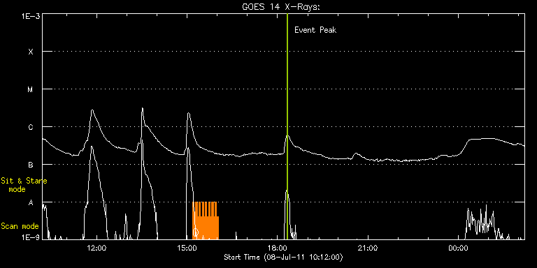 EIS Observation timeline overlay to GOES-Xray curve Code 1" 2" 40" 266" EIS Observations list for this event: STUDY ACRONYM ID DATE OBSERVED DESCRIPTION NOAA# TARGET 0 qub_hi-cad_flare_v1 | 23198 | 2011/07/08 15:10:40 | HOP 188: Joint Obs. with ROSA-IBIS | | Flare TIMELINE ID DATE OBSERVED FITS FILE XCEN (+W/-E) YCEN (+N/-S) DUR ----------------------------------------------------------------------------------------------------------------- 23198 | 2011/07/08 15:10:40.000 | eis_l0_20110708_151040.fits.gz | -703.23 | 154.54 | 3m10s 23198 | 2011/07/08 15:13:53.000 | eis_l0_20110708_151353.fits.gz | -703.00 | 154.46 | 3m10s 23198 | 2011/07/08 15:17:05.000 | eis_l0_20110708_151705.fits.gz | -702.69 | 154.69 | 3m10s 23198 | 2011/07/08 15:20:18.000 | eis_l0_20110708_152018.fits.gz | -702.38 | 154.46 | 3m10s 23198 | 2011/07/08 15:23:31.000 | eis_l0_20110708_152331.fits.gz | -702.07 | 154.54 | 3m10s 23198 | 2011/07/08 15:26:43.000 | eis_l0_20110708_152643.fits.gz | -701.76 | 154.38 | 3m10s 23198 | 2011/07/08 15:29:56.000 | eis_l0_20110708_152956.fits.gz | -701.53 | 154.38 | 3m10s 23198 | 2011/07/08 15:33:08.000 | eis_l0_20110708_153308.fits.gz | -701.22 | 154.46 | 3m10s 23198 | 2011/07/08 15:36:21.000 | eis_l0_20110708_153621.fits.gz | -700.83 | 154.30 | 3m9s 23198 | 2011/07/08 15:39:33.000 | eis_l0_20110708_153933.fits.gz | -700.52 | 154.30 | 3m10s 23198 | 2011/07/08 15:42:45.000 | eis_l0_20110708_154245.fits.gz | -700.22 | 154.30 | 3m10s 23198 | 2011/07/08 15:45:58.000 | eis_l0_20110708_154558.fits.gz | -699.91 | 154.23 | 3m10s 23198 | 2011/07/08 15:49:11.000 | eis_l0_20110708_154911.fits.gz | -699.60 | 154.30 | 3m9s 23198 | 2011/07/08 15:52:22.000 | eis_l0_20110708_155222.fits.gz | -699.21 | 154.23 | 3m11s 23198 | 2011/07/08 15:55:35.000 | eis_l0_20110708_155535.fits.gz | -698.98 | 154.23 | 3m10s 23198 | 2011/07/08 15:58:47.000 | eis_l0_20110708_155847.fits.gz | -698.67 | 154.23 | 3m10s : Check study information : Download file : View thumbnails For this event, also check for: