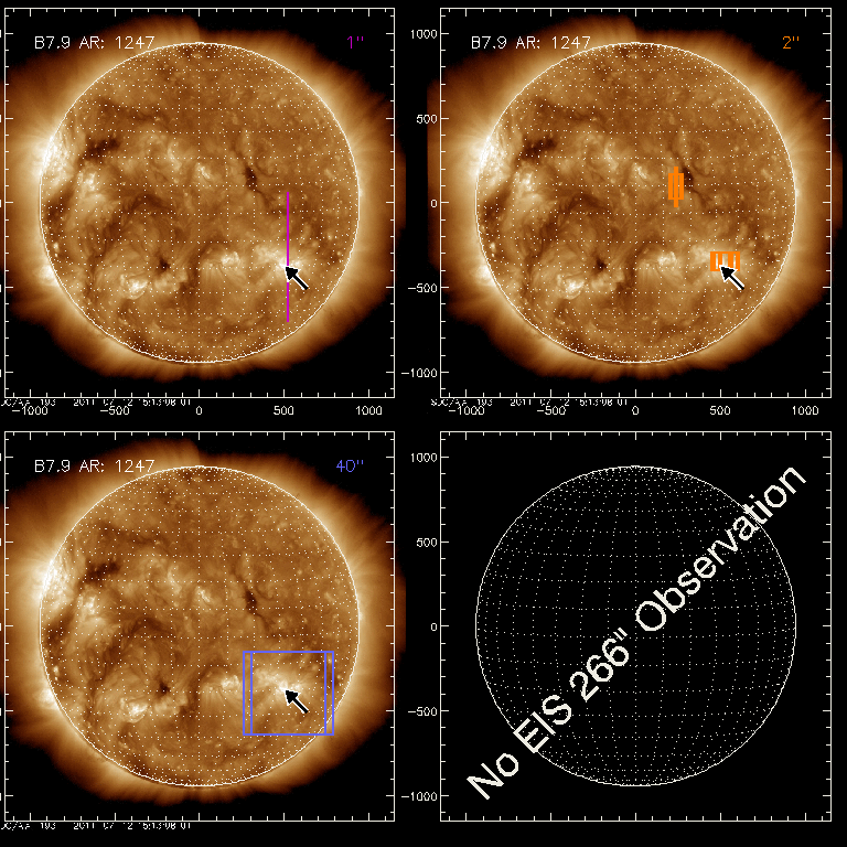 EIS Observation timeline overlay to GOES-Xray curve Code 1" 2" 40" 266" EIS Observations list for this event: STUDY ACRONYM ID DATE OBSERVED DESCRIPTION NOAA# TARGET 0 regcal070 | 23253 | 2011/07/12 12:37:43 | | | Engineering TIMELINE ID DATE OBSERVED FITS FILE XCEN (+W/-E) YCEN (+N/-S) DUR ----------------------------------------------------------------------------------------------------------------- 23253 | 2011/07/12 12:37:43.000 | eis_l0_20110712_123743.fits.gz | 522.34 | -192.79 | 2s 1 regcal076 | 23280 | 2011/07/12 13:00:12 | Flatfield, 1 exposure, led 100ms, ccd | | Engineering TIMELINE ID DATE OBSERVED FITS FILE XCEN (+W/-E) YCEN (+N/-S) DUR ----------------------------------------------------------------------------------------------------------------- 23280 | 2011/07/12 13:00:12.000 | eis_l0_20110712_130012.fits.gz | 524.81 | -448.63 | 1s 2 PRY_slot_context_v3 | 23254 | 2011/07/12 14:22:20 | Context for HOP 188 | 1247 | Active Region TIMELINE ID DATE OBSERVED FITS FILE XCEN (+W/-E) YCEN (+N/-S) DUR ----------------------------------------------------------------------------------------------------------------- 23254 | 2011/07/12 14:22:20.000 | eis_l0_20110712_142220.fits.gz | 504.40 | -398.25 | 2m56s 3 qub_hi-cad_flare_v1 | 23255 | 2011/07/12 14:25:42 | HOP 188: Joint Solar Flare Observation | | Flare TIMELINE ID DATE OBSERVED FITS FILE XCEN (+W/-E) YCEN (+N/-S) DUR ----------------------------------------------------------------------------------------------------------------- 23255 | 2011/07/12 14:25:42.000 | eis_l0_20110712_142542.fits.gz | 503.05 | -351.33 | 3m10s 23255 | 2011/07/12 14:28:54.000 | eis_l0_20110712_142854.fits.gz | 503.36 | -351.33 | 3m10s 23255 | 2011/07/12 14:32:07.000 | eis_l0_20110712_143207.fits.gz | 503.75 | -351.33 | 3m10s 23255 | 2011/07/12 14:35:20.000 | eis_l0_20110712_143520.fits.gz | 504.05 | -351.17 | 3m10s 23255 | 2011/07/12 14:38:33.000 | eis_l0_20110712_143833.fits.gz | 504.44 | -351.09 | 3m9s 23255 | 2011/07/12 14:41:45.000 | eis_l0_20110712_144145.fits.gz | 504.83 | -351.25 | 3m9s 23255 | 2011/07/12 14:44:57.000 | eis_l0_20110712_144457.fits.gz | 505.21 | -351.09 | 3m9s 23255 | 2011/07/12 14:48:09.000 | eis_l0_20110712_144809.fits.gz | 505.45 | -351.02 | 3m10s 23255 | 2011/07/12 14:51:21.000 | eis_l0_20110712_145121.fits.gz | 505.91 | -351.17 | 3m10s 23255 | 2011/07/12 14:54:34.000 | eis_l0_20110712_145434.fits.gz | 506.22 | -351.17 | 3m10s 23255 | 2011/07/12 14:57:47.000 | eis_l0_20110712_145747.fits.gz | 506.53 | -351.02 | 3m10s 23255 | 2011/07/12 15:00:59.000 | eis_l0_20110712_150059.fits.gz | 506.91 | -351.02 | 3m10s 23255 | 2011/07/12 15:04:11.000 | eis_l0_20110712_150411.fits.gz | 507.30 | -350.94 | 3m10s 23255 | 2011/07/12 15:07:24.000 | eis_l0_20110712_150724.fits.gz | 507.69 | -351.09 | 3m9s 23255 | 2011/07/12 15:10:36.000 | eis_l0_20110712_151036.fits.gz | 508.07 | -351.02 | 3m9s 23255 | 2011/07/12 15:13:48.000 | eis_l0_20110712_151348.fits.gz | 508.38 | -350.94 | 3m10s 4 qub_hi-cad_flare_v1 | 23256 | 2011/07/12 15:54:44 | HOP 188: Joint Solar Flare Observation | | Flare TIMELINE ID DATE OBSERVED FITS FILE XCEN (+W/-E) YCEN (+N/-S) DUR ----------------------------------------------------------------------------------------------------------------- 23256 | 2011/07/12 15:54:44.000 | eis_l0_20110712_155444.fits.gz | 512.78 | -350.86 | 3m9s 23256 | 2011/07/12 15:57:56.000 | eis_l0_20110712_155756.fits.gz | 513.33 | -350.78 | 3m10s 23256 | 2011/07/12 16:01:08.000 | eis_l0_20110712_160108.fits.gz | 513.63 | -350.63 | 3m10s 23256 | 2011/07/12 16:04:21.000 | eis_l0_20110712_160421.fits.gz | 513.94 | -350.71 | 3m9s 23256 | 2011/07/12 16:07:33.000 | eis_l0_20110712_160733.fits.gz | 514.33 | -350.71 | 3m10s 23256 | 2011/07/12 16:10:45.000 | eis_l0_20110712_161045.fits.gz | 514.72 | -350.71 | 3m10s 23256 | 2011/07/12 16:13:58.000 | eis_l0_20110712_161358.fits.gz | 515.02 | -350.71 | 3m10s 23256 | 2011/07/12 16:17:10.000 | eis_l0_20110712_161710.fits.gz | 515.33 | -350.71 | 3m10s 23256 | 2011/07/12 16:20:22.000 | eis_l0_20110712_162022.fits.gz | 515.72 | -350.63 | 3m10s 23256 | 2011/07/12 16:23:35.000 | eis_l0_20110712_162335.fits.gz | 516.18 | -350.63 | 3m10s 23256 | 2011/07/12 16:26:47.000 | eis_l0_20110712_162647.fits.gz | 516.41 | -350.55 | 3m10s 23256 | 2011/07/12 16:30:00.000 | eis_l0_20110712_163000.fits.gz | 516.80 | -350.63 | 3m10s 23256 | 2011/07/12 16:33:12.000 | eis_l0_20110712_163312.fits.gz | 517.19 | -350.55 | 3m10s 23256 | 2011/07/12 16:36:25.000 | eis_l0_20110712_163625.fits.gz | 517.50 | -350.55 | 3m9s 23256 | 2011/07/12 16:39:36.000 | eis_l0_20110712_163936.fits.gz | 517.80 | -350.48 | 3m10s 23256 | 2011/07/12 16:42:49.000 | eis_l0_20110712_164249.fits.gz | 518.19 | -350.48 | 3m10s 5 Cool_loop_response | 23257 | 2011/07/12 18:02:41 | HOP 191: Joint Obs. with BBSO | | Active Region TIMELINE ID DATE OBSERVED FITS FILE XCEN (+W/-E) YCEN (+N/-S) DUR ----------------------------------------------------------------------------------------------------------------- 23257 | 2011/07/12 18:02:41.000 | eis_l0_20110712_180241.fits.gz | 233.67 | 91.50 | 10m48s 6 madj_qs_sns_15m | 23258 | 2011/07/12 18:13:33 | HOP 191: Joint Obs. with BBSO | | Quiet Sun TIMELINE ID DATE OBSERVED FITS FILE XCEN (+W/-E) YCEN (+N/-S) DUR ----------------------------------------------------------------------------------------------------------------- 23258 | 2011/07/12 18:13:33.000 | eis_l0_20110712_181333.fits.gz | 235.87 | 91.42 | 13m8s 7 madj_qs_sns_15m | 23259 | 2011/07/12 19:26:13 | HOP 191: Joint Obs. with BBSO | | Quiet Sun TIMELINE ID DATE OBSERVED FITS FILE XCEN (+W/-E) YCEN (+N/-S) DUR ----------------------------------------------------------------------------------------------------------------- 23259 | 2011/07/12 19:26:13.000 | eis_l0_20110712_192613.fits.gz | 246.38 | 91.66 | 13m9s 8 Cool_loop_response | 23260 | 2011/07/12 19:39:26 | HOP 191: Joint Obs. with BBSO | | Active Region TIMELINE ID DATE OBSERVED FITS FILE XCEN (+W/-E) YCEN (+N/-S) DUR 