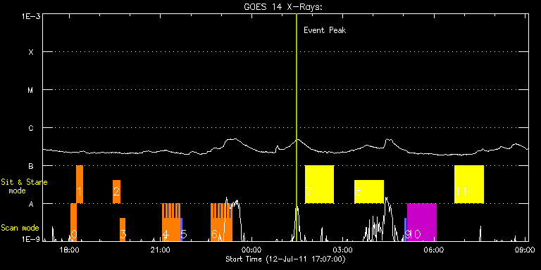 EIS Observation timeline overlay to GOES-Xray curve Code 1" 2" 40" 266" EIS Observations list for this event: STUDY ACRONYM ID DATE OBSERVED DESCRIPTION NOAA# TARGET 0 Cool_loop_response | 23257 | 2011/07/12 18:02:41 | HOP 191: Joint Obs. with BBSO | | Active Region TIMELINE ID DATE OBSERVED FITS FILE XCEN (+W/-E) YCEN (+N/-S) DUR ----------------------------------------------------------------------------------------------------------------- 23257 | 2011/07/12 18:02:41.000 | eis_l0_20110712_180241.fits.gz | 233.67 | 91.50 | 10m48s 1 madj_qs_sns_15m | 23258 | 2011/07/12 18:13:33 | HOP 191: Joint Obs. with BBSO | | Quiet Sun TIMELINE ID DATE OBSERVED FITS FILE XCEN (+W/-E) YCEN (+N/-S) DUR ----------------------------------------------------------------------------------------------------------------- 23258 | 2011/07/12 18:13:33.000 | eis_l0_20110712_181333.fits.gz | 235.87 | 91.42 | 13m8s 2 madj_qs_sns_15m | 23259 | 2011/07/12 19:26:13 | HOP 191: Joint Obs. with BBSO | | Quiet Sun TIMELINE ID DATE OBSERVED FITS FILE XCEN (+W/-E) YCEN (+N/-S) DUR ----------------------------------------------------------------------------------------------------------------- 23259 | 2011/07/12 19:26:13.000 | eis_l0_20110712_192613.fits.gz | 246.38 | 91.66 | 13m9s 3 Cool_loop_response | 23260 | 2011/07/12 19:39:26 | HOP 191: Joint Obs. with BBSO | | Active Region TIMELINE ID DATE OBSERVED FITS FILE XCEN (+W/-E) YCEN (+N/-S) DUR ----------------------------------------------------------------------------------------------------------------- 23260 | 2011/07/12 19:39:26.000 | eis_l0_20110712_193926.fits.gz | 247.81 | 91.66 | 10m49s 4 qub_hi-cad_flare_v1 | 23275 | 2011/07/12 21:03:43 | Hi-cadence flare hunt on AR 11247 | 1247 | Flare TIMELINE ID DATE OBSERVED FITS FILE XCEN (+W/-E) YCEN (+N/-S) DUR ----------------------------------------------------------------------------------------------------------------- 23275 | 2011/07/12 21:03:43.000 | eis_l0_20110712_210343.fits.gz | 546.22 | -351.16 | 3m10s 23275 | 2011/07/12 21:06:56.000 | eis_l0_20110712_210656.fits.gz | 546.52 | -351.08 | 3m9s 23275 | 2011/07/12 21:10:08.000 | eis_l0_20110712_211008.fits.gz | 546.91 | -351.08 | 3m9s 23275 | 2011/07/12 21:13:20.000 | eis_l0_20110712_211320.fits.gz | 547.30 | -351.08 | 3m10s 23275 | 2011/07/12 21:16:32.000 | eis_l0_20110712_211632.fits.gz | 547.60 | -351.08 | 3m10s 23275 | 2011/07/12 21:19:45.000 | eis_l0_20110712_211945.fits.gz | 547.91 | -351.01 | 3m10s 23275 | 2011/07/12 21:22:57.000 | eis_l0_20110712_212257.fits.gz | 548.22 | -351.08 | 3m10s 23275 | 2011/07/12 21:26:10.000 | eis_l0_20110712_212610.fits.gz | 548.61 | -351.01 | 3m10s 23275 | 2011/07/12 21:29:23.000 | eis_l0_20110712_212923.fits.gz | 548.92 | -351.08 | 3m10s 23275 | 2011/07/12 21:32:35.000 | eis_l0_20110712_213235.fits.gz | 549.30 | -351.01 | 3m10s 23275 | 2011/07/12 21:35:48.000 | eis_l0_20110712_213548.fits.gz | 549.54 | -351.01 | 3m10s 5 PRY_slot_context_v3 | 23277 | 2011/07/12 21:39:08 | | 1247 | Active Region TIMELINE ID DATE OBSERVED FITS FILE XCEN (+W/-E) YCEN (+N/-S) DUR ----------------------------------------------------------------------------------------------------------------- 23277 | 2011/07/12 21:39:08.000 | eis_l0_20110712_213908.fits.gz | 551.98 | -395.85 | 2m57s 6 qub_hi-cad_flare_v1 | 23278 | 2011/07/12 22:40:04 | Hi-cadence flare hunt on AR 11247 | 1247 | Flare TIMELINE ID DATE OBSERVED FITS FILE XCEN (+W/-E) YCEN (+N/-S) DUR ----------------------------------------------------------------------------------------------------------------- 23278 | 2011/07/12 22:40:04.000 | eis_l0_20110712_224004.fits.gz | 556.41 | -350.54 | 3m10s 23278 | 2011/07/12 22:43:16.000 | eis_l0_20110712_224316.fits.gz | 556.80 | -350.47 | 3m10s 23278 | 2011/07/12 22:46:29.000 | eis_l0_20110712_224629.fits.gz | 557.18 | -350.54 | 3m10s 23278 | 2011/07/12 22:49:42.000 | eis_l0_20110712_224942.fits.gz | 557.49 | -350.47 | 3m10s 23278 | 2011/07/12 22:52:54.000 | eis_l0_20110712_225254.fits.gz | 557.80 | -350.54 | 3m10s 23278 | 2011/07/12 22:56:07.000 | eis_l0_20110712_225607.fits.gz | 558.11 | -350.47 | 3m9s 23278 | 2011/07/12 22:59:19.000 | eis_l0_20110712_225919.fits.gz | 558.50 | -350.47 | 3m10s 23278 | 2011/07/12 23:02:32.000 | eis_l0_20110712_230232.fits.gz | 558.73 | -350.54 | 3m10s 23278 | 2011/07/12 23:05:44.000 | eis_l0_20110712_230544.fits.gz | 559.11 | -350.54 | 3m9s 23278 | 2011/07/12 23:08:56.000 | eis_l0_20110712_230856.fits.gz | 559.42 | -350.31 | 3m10s 23278 | 2011/07/12 23:12:08.000 | eis_l0_20110712_231208.fits.gz | 559.81 | -350.47 | 3m10s 23278 | 2011/07/12 23:15:21.000 | eis_l0_20110712_231521.fits.gz | 560.20 | -350.23 | 3m9s 23278 | 2011/07/12 23:18:33.000 | eis_l0_20110712_231833.fits.gz | 560.51 | -350.31 | 3m10s 7 FLARE266_TEST1 | 23248 | 2011/07/13 01:45:34 | EIS Flare Trigger Testing (control cas | 1247 | Active Region TIMELINE ID DATE OBSERVED FITS FILE XCEN (+W/-E) YCEN (+N/-S) DUR ----------------------------------------------------------------------------------------------------------------- 23248 | 2011/07/13 01:45:34.000 | eis_l0_20110713_014534.fits.gz | 460.36 | -394.39 | 55m59s 8 FLARE266_TEST1 | 23249 | 2011/07/13 03:23:43 | EIS Flare Trigger Testing | 1247 | Active Region TIMELINE ID DATE OBSERVED FITS FILE XCEN (+W/-E) YCEN (+N/-S) DUR ----------------------------------------------------------------------------------------------------------------- 23249 | 2011/07/13 03:23:43.000 | eis_l0_20110713_032343.fits.gz | 470.32 | -393.85 | 56m47s 9 PRY_slot_context_v2 | 23281 | 2011/07/13 05:02:27 | | 1247 | Active Region TIMELINE ID DATE OBSERVED FITS FILE XCEN (+W/-E) YCEN (+N/-S) DUR ----------------------------------------------------------------------------------------------------------------- 23281 | 2011/07/13 05:02:27.000 | eis_l0_20110713_050227.fits.gz | 593.74 | -393.23 | 2m33s 10 HPW008_FULLCCD_RAST | 23279 | 2011/07/13 05:07:20 | Full AR spectrum with 1" slit (William | 1247 | Active Region TIMELINE ID DATE OBSERV