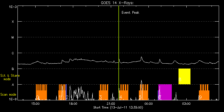 EIS Observation timeline overlay to GOES-Xray curve Code 1" 2" 40" 266" EIS Observations list for this event: STUDY ACRONYM ID DATE OBSERVED DESCRIPTION NOAA# TARGET 0 qub_hi-cad_flare_v1 | 23266 | 2011/07/13 15:02:40 | HOP 188: Joint Solar Flare Observation | | Flare TIMELINE ID DATE OBSERVED FITS FILE XCEN (+W/-E) YCEN (+N/-S) DUR ----------------------------------------------------------------------------------------------------------------- 23266 | 2011/07/13 15:02:40.000 | eis_l0_20110713_150240.fits.gz | 652.68 | -342.21 | 3m10s 23266 | 2011/07/13 15:05:53.000 | eis_l0_20110713_150553.fits.gz | 652.91 | -342.29 | 2m36s 23266 | 2011/07/13 15:08:34.000 | eis_l0_20110713_150834.fits.gz | 653.22 | -342.13 | 28s 23266 | 2011/07/13 15:09:05.000 | eis_l0_20110713_150905.fits.gz | 653.30 | -342.21 | 3m10s 23266 | 2011/07/13 15:12:17.000 | eis_l0_20110713_151217.fits.gz | 653.45 | -342.06 | 3m10s 23266 | 2011/07/13 15:15:30.000 | eis_l0_20110713_151530.fits.gz | 653.76 | -342.21 | 3m9s 23266 | 2011/07/13 15:18:42.000 | eis_l0_20110713_151842.fits.gz | 654.07 | -341.98 | 3m10s 23266 | 2011/07/13 15:21:54.000 | eis_l0_20110713_152154.fits.gz | 654.38 | -342.06 | 3m11s 23266 | 2011/07/13 15:25:07.000 | eis_l0_20110713_152507.fits.gz | 654.69 | -342.13 | 3m9s 23266 | 2011/07/13 15:28:19.000 | eis_l0_20110713_152819.fits.gz | 654.92 | -342.06 | 2m52s 23266 | 2011/07/13 15:31:16.000 | eis_l0_20110713_153116.fits.gz | 655.15 | -341.82 | 13s 23266 | 2011/07/13 15:31:32.000 | eis_l0_20110713_153132.fits.gz | 655.23 | -342.06 | 31s 23266 | 2011/07/13 15:32:12.000 | eis_l0_20110713_153212.fits.gz | 655.31 | -341.90 | 2m29s 23266 | 2011/07/13 15:34:44.000 | eis_l0_20110713_153444.fits.gz | 655.46 | -341.90 | 2m29s 23266 | 2011/07/13 15:37:18.000 | eis_l0_20110713_153718.fits.gz | 655.69 | -341.82 | 14s 23266 | 2011/07/13 15:37:37.000 | eis_l0_20110713_153737.fits.gz | 655.69 | -341.90 | 17s 23266 | 2011/07/13 15:37:56.000 | eis_l0_20110713_153756.fits.gz | 655.77 | -341.90 | 3m10s 23266 | 2011/07/13 15:41:09.000 | eis_l0_20110713_154109.fits.gz | 656.16 | -342.06 | 3m9s 23266 | 2011/07/13 15:44:21.000 | eis_l0_20110713_154421.fits.gz | 656.39 | -341.75 | 3m9s 23266 | 2011/07/13 15:47:33.000 | eis_l0_20110713_154733.fits.gz | 656.62 | -341.90 | 3m10s 23266 | 2011/07/13 15:50:46.000 | eis_l0_20110713_155046.fits.gz | 656.93 | -341.75 | 3m9s 1 qub_hi-cad_flare_v1 | 23267 | 2011/07/13 16:49:13 | HOP 188: Joint Solar Flare Observation | | Flare TIMELINE ID DATE OBSERVED FITS FILE XCEN (+W/-E) YCEN (+N/-S) DUR ----------------------------------------------------------------------------------------------------------------- 23267 | 2011/07/13 16:49:13.000 | eis_l0_20110713_164913.fits.gz | 662.03 | -341.36 | 3m10s 23267 | 2011/07/13 16:52:25.000 | eis_l0_20110713_165225.fits.gz | 662.34 | -341.36 | 3m10s 23267 | 2011/07/13 16:55:38.000 | eis_l0_20110713_165538.fits.gz | 662.65 | -341.52 | 3m9s 23267 | 2011/07/13 16:58:50.000 | eis_l0_20110713_165850.fits.gz | 662.88 | -341.36 | 3m10s 23267 | 2011/07/13 17:02:03.000 | eis_l0_20110713_170203.fits.gz | 663.26 | -341.36 | 3m10s 23267 | 2011/07/13 17:05:16.000 | eis_l0_20110713_170516.fits.gz | 663.49 | -341.36 | 3m9s 23267 | 2011/07/13 17:08:28.000 | eis_l0_20110713_170828.fits.gz | 663.80 | -341.44 | 3m10s 23267 | 2011/07/13 17:11:41.000 | eis_l0_20110713_171141.fits.gz | 664.03 | -341.28 | 3m9s 23267 | 2011/07/13 17:14:53.000 | eis_l0_20110713_171453.fits.gz | 664.27 | -341.44 | 3m10s 23267 | 2011/07/13 17:18:05.000 | eis_l0_20110713_171805.fits.gz | 664.65 | -341.13 | 3m10s 23267 | 2011/07/13 17:21:17.000 | eis_l0_20110713_172117.fits.gz | 664.96 | -341.21 | 3m10s 2 PRY_slot_context_v3 | 23268 | 2011/07/13 17:24:38 | | 1247 | Active Region TIMELINE ID DATE OBSERVED FITS FILE XCEN (+W/-E) YCEN (+N/-S) DUR ----------------------------------------------------------------------------------------------------------------- 23268 | 2011/07/13 17:24:38.000 | eis_l0_20110713_172438.fits.gz | 667.01 | -388.13 | 2m57s 3 HH_Flare+AR_180x152 | 23269 | 2011/07/13 20:03:33 | Flare hunting | 1247 | Flare TIMELINE ID DATE OBSERVED FITS FILE XCEN (+W/-E) YCEN (+N/-S) DUR ----------------------------------------------------------------------------------------------------------------- 23269 | 2011/07/13 20:03:33.000 | eis_l0_20110713_200333.fits.gz | 683.19 | -352.05 | 5m19s 23269 | 2011/07/13 20:08:54.000 | eis_l0_20110713_200854.fits.gz | 683.57 | -351.89 | 5m18s 23269 | 2011/07/13 20:14:15.000 | eis_l0_20110713_201415.fits.gz | 683.96 | -351.97 | 5m17s 23269 | 2011/07/13 20:19:35.000 | eis_l0_20110713_201935.fits.gz | 684.58 | -351.97 | 5m18s 23269 | 2011/07/13 20:24:55.000 | eis_l0_20110713_202455.fits.gz | 684.96 | -351.89 | 5m19s 23269 | 2011/07/13 20:30:17.000 | eis_l0_20110713_203017.fits.gz | 685.27 | -351.82 | 5m18s 23269 | 2011/07/13 20:35:38.000 | eis_l0_20110713_203538.fits.gz | 685.81 | -351.74 | 5m18s 23269 | 2011/07/13 20:40:58.000 | eis_l0_20110713_204058.fits.gz | 686.35 | -351.66 | 5m18s 4 HH_Flare+AR_180x152 | 23270 | 2011/07/13 21:40:13 | Flare hunting | 1247 | Flare TIMELINE ID DATE OBSERVED FITS FILE XCEN (+W/-E) YCEN (+N/-S) DUR ----------------------------------------------------------------------------------------------------------------- 23270 | 2011/07/13 21:40:13.000 | eis_l0_20110713_214013.fits.gz | 691.30 | -351.27 | 5m18s 23270 | 2011/07/13 21:45:34.000 | eis_l0_20110713_214534.fits.gz | 691.68 | -351.27 | 5m18s 23270 | 2011/07/13 21:50:55.000 | eis_l0_20110713_215055.fits.gz | 692.07 | -351.12 | 5m18s 23270 | 2011/07/13 21:56:16.000 | eis_l0_20110713_215616.fits.gz | 692.53 | -351.12 | 5m17s 23270 | 2011/07/13 22:01:36.000 | eis_l0_20110713_220136.fits.gz | 693.00 | -351.12 | 5m18s 23270 | 2011/07/13 22:06:57.000 | eis_l0_20110713_220657.fits.gz | 693.38 | -351.20 | 5m18s 23270 | 2011/07/13 22:12:18.000 | eis_l0_20110713_221218.fits.gz | 693.85 | -351.04 | 5m18s 23270 | 2011/07/13 22:17:39.000 | eis_l0_20110713_221739.fits.gz | 694.31 | -350.97 | 5