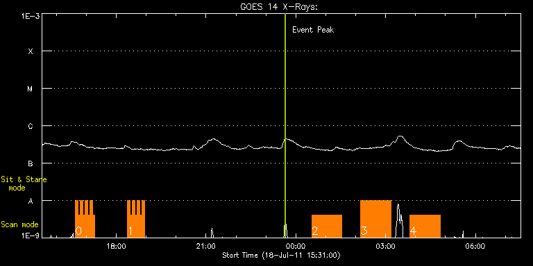 EIS Observation timeline overlay to GOES-Xray curve Code 1" 2" 40" 266" EIS Observations list for this event: STUDY ACRONYM ID DATE OBSERVED DESCRIPTION NOAA# TARGET 0 AR_filament | 23334 | 2011/07/18 16:38:12 | The Formation and Evolution of Filamen | 1256 | Active Region TIMELINE ID DATE OBSERVED FITS FILE XCEN (+W/-E) YCEN (+N/-S) DUR ----------------------------------------------------------------------------------------------------------------- 23334 | 2011/07/18 16:38:12.000 | eis_l0_20110718_163812.fits.gz | 11.20 | 35.03 | 4m50s 23334 | 2011/07/18 16:43:05.000 | eis_l0_20110718_164305.fits.gz | 11.82 | 35.11 | 4m51s 23334 | 2011/07/18 16:47:58.000 | eis_l0_20110718_164758.fits.gz | 12.67 | 35.03 | 4m51s 23334 | 2011/07/18 16:52:52.000 | eis_l0_20110718_165252.fits.gz | 13.28 | 35.03 | 4m50s 23334 | 2011/07/18 16:57:44.000 | eis_l0_20110718_165744.fits.gz | 14.06 | 34.96 | 4m51s 23334 | 2011/07/18 17:02:38.000 | eis_l0_20110718_170238.fits.gz | 14.75 | 35.11 | 4m50s 23334 | 2011/07/18 17:07:31.000 | eis_l0_20110718_170731.fits.gz | 15.53 | 34.96 | 4m50s 23334 | 2011/07/18 17:12:24.000 | eis_l0_20110718_171224.fits.gz | 16.30 | 35.03 | 4m51s 1 AR_filament | 23335 | 2011/07/18 18:22:12 | The Formation and Evolution of Filamen | 1256 | Active Region TIMELINE ID DATE OBSERVED FITS FILE XCEN (+W/-E) YCEN (+N/-S) DUR ----------------------------------------------------------------------------------------------------------------- 23335 | 2011/07/18 18:22:12.000 | eis_l0_20110718_182212.fits.gz | 27.03 | 34.96 | 4m50s 23335 | 2011/07/18 18:27:05.000 | eis_l0_20110718_182705.fits.gz | 27.65 | 34.96 | 4m50s 23335 | 2011/07/18 18:31:58.000 | eis_l0_20110718_183158.fits.gz | 28.35 | 34.80 | 4m50s 23335 | 2011/07/18 18:36:51.000 | eis_l0_20110718_183651.fits.gz | 29.20 | 34.96 | 4m51s 23335 | 2011/07/18 18:41:44.000 | eis_l0_20110718_184144.fits.gz | 29.89 | 34.88 | 4m51s 23335 | 2011/07/18 18:46:38.000 | eis_l0_20110718_184638.fits.gz | 30.59 | 34.96 | 4m50s 23335 | 2011/07/18 18:51:31.000 | eis_l0_20110718_185131.fits.gz | 31.59 | 34.88 | 4m51s 2 dhb_atlas_120m_30" | 23341 | 2011/07/19 00:31:42 | Raster stitched spectral atlas of AR/C | 1258 | Quiet Sun TIMELINE ID DATE OBSERVED FITS FILE XCEN (+W/-E) YCEN (+N/-S) DUR ----------------------------------------------------------------------------------------------------------------- 23341 | 2011/07/19 00:31:42.000 | eis_l0_20110719_003142.fits.gz | 549.99 | 136.63 | 1h0m49s 3 dhb_atlas_120m_30" | 23342 | 2011/07/19 02:10:12 | Raster stitched spectral atlas of AR/C | 1251 | Quiet Sun TIMELINE ID DATE OBSERVED FITS FILE XCEN (+W/-E) YCEN (+N/-S) DUR ----------------------------------------------------------------------------------------------------------------- 23342 | 2011/07/19 02:10:12.000 | eis_l0_20110719_021012.fits.gz | 503.61 | 137.02 | 1h0m49s 4 dhb_atlas_120m_30" | 23343 | 2011/07/19 03:48:42 | Raster stitched spectral atlas of AR/C | | Quiet Sun TIMELINE ID DATE OBSERVED FITS FILE XCEN (+W/-E) YCEN (+N/-S) DUR ----------------------------------------------------------------------------------------------------------------- 23343 | 2011/07/19 03:48:42.000 | eis_l0_20110719_034842.fits.gz | 457.07 | 137.40 | 1h0m49s : Check study information : Download file : View thumbnails For this event, also check for: