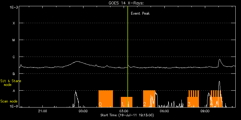 EIS Observation timeline overlay to GOES-Xray curve Code 1" 2" 40" 266" EIS Observations list for this event: STUDY ACRONYM ID DATE OBSERVED DESCRIPTION NOAA# TARGET 0 Large_CH_Map | 23356 | 2011/07/20 01:08:42 | Interchange reconnection at CH boundar | | Quiet Sun TIMELINE ID DATE OBSERVED FITS FILE XCEN (+W/-E) YCEN (+N/-S) DUR ----------------------------------------------------------------------------------------------------------------- 23356 | 2011/07/20 01:08:42.000 | eis_l0_20110720_010842.fits.gz | 636.05 | -305.63 | 1h1m53s 1 YKK_ARabund01 | 23357 | 2011/07/20 02:47:12 | Interchange reconnection at CH boundar | | Active Region TIMELINE ID DATE OBSERVED FITS FILE XCEN (+W/-E) YCEN (+N/-S) DUR ----------------------------------------------------------------------------------------------------------------- 23357 | 2011/07/20 02:47:12.000 | eis_l0_20110720_024712.fits.gz | 628.55 | -321.94 | 50m32s 2 EUNIS_EIS_CrossCal | 23358 | 2011/07/20 04:25:42 | Interchange reconnection at CH boundar | | Quiet Sun TIMELINE ID DATE OBSERVED FITS FILE XCEN (+W/-E) YCEN (+N/-S) DUR ----------------------------------------------------------------------------------------------------------------- 23358 | 2011/07/20 04:25:42.000 | eis_l0_20110720_042542.fits.gz | 633.80 | -297.09 | 52m45s 3 AR_filament | 23359 | 2011/07/20 07:42:42 | Vector Magnetic Field Structure Within | | Active Region TIMELINE ID DATE OBSERVED FITS FILE XCEN (+W/-E) YCEN (+N/-S) DUR ----------------------------------------------------------------------------------------------------------------- 23359 | 2011/07/20 07:42:42.000 | eis_l0_20110720_074242.fits.gz | 346.07 | 202.12 | 4m50s 23359 | 2011/07/20 07:47:35.000 | eis_l0_20110720_074735.fits.gz | 346.76 | 202.04 | 4m50s 23359 | 2011/07/20 07:52:28.000 | eis_l0_20110720_075228.fits.gz | 347.46 | 201.97 | 4m50s 23359 | 2011/07/20 07:57:21.000 | eis_l0_20110720_075721.fits.gz | 348.15 | 202.04 | 4m51s 23359 | 2011/07/20 08:02:15.000 | eis_l0_20110720_080215.fits.gz | 348.77 | 202.04 | 4m50s 23359 | 2011/07/20 08:07:08.000 | eis_l0_20110720_080708.fits.gz | 349.39 | 202.04 | 4m51s 23359 | 2011/07/20 08:12:02.000 | eis_l0_20110720_081202.fits.gz | 350.08 | 202.12 | 4m50s 23359 | 2011/07/20 08:16:55.000 | eis_l0_20110720_081655.fits.gz | 350.62 | 202.04 | 4m50s 23359 | 2011/07/20 08:21:48.000 | eis_l0_20110720_082148.fits.gz | 351.32 | 202.12 | 4m50s 23359 | 2011/07/20 08:26:41.000 | eis_l0_20110720_082641.fits.gz | 352.02 | 202.20 | 4m50s 4 AR_filament | 23360 | 2011/07/20 09:21:12 | Vector Magnetic Field Structure Within | | Active Region TIMELINE ID DATE OBSERVED FITS FILE XCEN (+W/-E) YCEN (+N/-S) DUR ----------------------------------------------------------------------------------------------------------------- 23360 | 2011/07/20 09:21:12.000 | eis_l0_20110720_092112.fits.gz | 359.20 | 202.51 | 4m50s 23360 | 2011/07/20 09:26:05.000 | eis_l0_20110720_092605.fits.gz | 359.89 | 202.35 | 4m50s 23360 | 2011/07/20 09:30:58.000 | eis_l0_20110720_093058.fits.gz | 360.51 | 202.35 | 4m51s 23360 | 2011/07/20 09:35:52.000 | eis_l0_20110720_093552.fits.gz | 361.13 | 202.35 | 4m50s 23360 | 2011/07/20 09:40:45.000 | eis_l0_20110720_094045.fits.gz | 361.83 | 202.27 | 4m51s 23360 | 2011/07/20 09:45:38.000 | eis_l0_20110720_094538.fits.gz | 362.52 | 202.43 | 4m51s 23360 | 2011/07/20 09:50:32.000 | eis_l0_20110720_095032.fits.gz | 363.06 | 202.51 | 4m49s 23360 | 2011/07/20 09:55:24.000 | eis_l0_20110720_095524.fits.gz | 363.83 | 202.43 | 4m51s 23360 | 2011/07/20 10:00:18.000 | eis_l0_20110720_100018.fits.gz | 364.45 | 202.51 | 4m50s 23360 | 2011/07/20 10:05:11.000 | eis_l0_20110720_100511.fits.gz | 365.15 | 202.43 | 4m51s 23360 | 2011/07/20 10:10:05.000 | eis_l0_20110720_101005.fits.gz | 365.69 | 202.58 | 4m50s : Check study information : Download file : View thumbnails For this event, also check for: