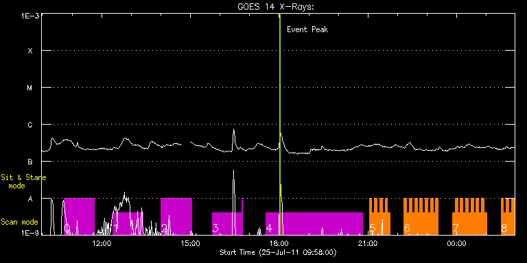 EIS Observation timeline overlay to GOES-Xray curve Code 1" 2" 40" 266" EIS Observations list for this event: STUDY ACRONYM ID DATE OBSERVED DESCRIPTION NOAA# TARGET 0 HPW021_VEL_120x512v1 | 23444 | 2011/07/25 10:43:43 | Active Region Temperatures and Flows O | | Active Region TIMELINE ID DATE OBSERVED FITS FILE XCEN (+W/-E) YCEN (+N/-S) DUR ----------------------------------------------------------------------------------------------------------------- 23444 | 2011/07/25 10:43:43.000 | eis_l0_20110725_104343.fits.gz | 217.71 | 276.82 | 1h1m53s 1 HPW021_VEL_120x512v1 | 23445 | 2011/07/25 12:22:13 | Active Region Temperatures and Flows O | | Active Region TIMELINE ID DATE OBSERVED FITS FILE XCEN (+W/-E) YCEN (+N/-S) DUR ----------------------------------------------------------------------------------------------------------------- 23445 | 2011/07/25 12:22:13.000 | eis_l0_20110725_122213.fits.gz | 230.84 | 277.20 | 1h1m53s 2 HPW021_VEL_120x512v1 | 23446 | 2011/07/25 14:00:43 | Active Region Temperatures and Flows O | | Active Region TIMELINE ID DATE OBSERVED FITS FILE XCEN (+W/-E) YCEN (+N/-S) DUR ----------------------------------------------------------------------------------------------------------------- 23446 | 2011/07/25 14:00:43.000 | eis_l0_20110725_140043.fits.gz | 244.12 | 277.36 | 1h1m53s 3 HPW021_VEL_120x512v1 | 23447 | 2011/07/25 15:44:13 | Active Region Temperatures and Flows O | | Active Region TIMELINE ID DATE OBSERVED FITS FILE XCEN (+W/-E) YCEN (+N/-S) DUR ----------------------------------------------------------------------------------------------------------------- 23447 | 2011/07/25 15:44:13.000 | eis_l0_20110725_154413.fits.gz | 257.80 | 277.51 | 59m49s 23447 | 2011/07/25 16:44:03.000 | eis_l0_20110725_164403.fits.gz | 265.83 | 277.59 | 2m3s 4 SYNOP006 | 23448 | 2011/07/25 17:33:12 | weekly synoptic | | Quiet Sun TIMELINE ID DATE OBSERVED FITS FILE XCEN (+W/-E) YCEN (+N/-S) DUR ----------------------------------------------------------------------------------------------------------------- 23448 | 2011/07/25 17:33:12.000 | eis_l0_20110725_173312.fits.gz | -6.43 | -0.11 | 3h15m35s 5 HH_Flare+AR_180x152 | 23449 | 2011/07/25 21:02:26 | AR observation | 1259 | Flare TIMELINE ID DATE OBSERVED FITS FILE XCEN (+W/-E) YCEN (+N/-S) DUR ----------------------------------------------------------------------------------------------------------------- 23449 | 2011/07/25 21:02:26.000 | eis_l0_20110725_210226.fits.gz | 297.85 | 278.44 | 5m17s 23449 | 2011/07/25 21:07:46.000 | eis_l0_20110725_210746.fits.gz | 298.55 | 278.67 | 5m18s 23449 | 2011/07/25 21:13:06.000 | eis_l0_20110725_211306.fits.gz | 299.24 | 278.60 | 5m18s 23449 | 2011/07/25 21:18:27.000 | eis_l0_20110725_211827.fits.gz | 300.02 | 278.52 | 5m17s 23449 | 2011/07/25 21:23:47.000 | eis_l0_20110725_212347.fits.gz | 300.71 | 278.60 | 5m18s 23449 | 2011/07/25 21:29:08.000 | eis_l0_20110725_212908.fits.gz | 301.41 | 278.60 | 5m18s 23449 | 2011/07/25 21:34:29.000 | eis_l0_20110725_213429.fits.gz | 302.18 | 278.67 | 5m17s 23449 | 2011/07/25 21:39:49.000 | eis_l0_20110725_213949.fits.gz | 302.80 | 278.60 | 5m17s 6 HH_Flare+AR_180x152 | 23450 | 2011/07/25 22:13:09 | AR observation | 1259 | Flare TIMELINE ID DATE OBSERVED FITS FILE XCEN (+W/-E) YCEN (+N/-S) DUR ----------------------------------------------------------------------------------------------------------------- 23450 | 2011/07/25 22:13:09.000 | eis_l0_20110725_221309.fits.gz | 307.05 | 278.98 | 5m18s 23450 | 2011/07/25 22:18:30.000 | eis_l0_20110725_221830.fits.gz | 307.74 | 278.90 | 5m17s 23450 | 2011/07/25 22:23:50.000 | eis_l0_20110725_222350.fits.gz | 308.51 | 278.90 | 5m18s 23450 | 2011/07/25 22:29:11.000 | eis_l0_20110725_222911.fits.gz | 309.21 | 278.83 | 5m17s 23450 | 2011/07/25 22:34:31.000 | eis_l0_20110725_223431.fits.gz | 309.90 | 278.90 | 5m18s 23450 | 2011/07/25 22:39:52.000 | eis_l0_20110725_223952.fits.gz | 310.60 | 278.98 | 5m19s 23450 | 2011/07/25 22:45:13.000 | eis_l0_20110725_224513.fits.gz | 311.30 | 278.90 | 5m18s 23450 | 2011/07/25 22:50:34.000 | eis_l0_20110725_225034.fits.gz | 311.99 | 278.98 | 5m17s 23450 | 2011/07/25 22:55:54.000 | eis_l0_20110725_225554.fits.gz | 312.68 | 278.90 | 5m17s 23450 | 2011/07/25 23:01:14.000 | eis_l0_20110725_230114.fits.gz | 313.23 | 279.06 | 5m18s 23450 | 2011/07/25 23:06:35.000 | eis_l0_20110725_230635.fits.gz | 314.08 | 278.98 | 5m18s 23450 | 2011/07/25 23:11:56.000 | eis_l0_20110725_231156.fits.gz | 314.77 | 278.98 | 5m18s 23450 | 2011/07/25 23:17:17.000 | eis_l0_20110725_231717.fits.gz | 315.47 | 278.90 | 5m18s 7 HH_Flare+AR_180x152 | 23451 | 2011/07/25 23:51:12 | AR observation | 1259 | Flare TIMELINE ID DATE OBSERVED FITS FILE XCEN (+W/-E) YCEN (+N/-S) DUR ----------------------------------------------------------------------------------------------------------------- 23451 | 2011/07/25 23:51:12.000 | eis_l0_20110725_235112.fits.gz | 319.71 | 279.21 | 5m19s 23451 | 2011/07/25 23:56:34.000 | eis_l0_20110725_235634.fits.gz | 320.41 | 279.21 | 5m18s 23451 | 2011/07/26 00:01:55.000 | eis_l0_20110726_000155.fits.gz | 321.26 | 279.21 | 5m17s 23451 | 2011/07/26 00:07:15.000 | eis_l0_20110726_000715.fits.gz | 321.88 | 279.14 | 5m18s 23451 | 2011/07/26 00:12:36.000 | eis_l0_20110726_001236.fits.gz | 322.57 | 279.21 | 5m17s 23451 | 2011/07/26 00:17:56.000 | eis_l0_20110726_001756.fits.gz | 323.27 | 279.21 | 5m19s 23451 | 2011/07/26 00:23:17.000 | eis_l0_20110726_002317.fits.gz | 323.89 | 279.21 | 5m18s 23451 | 2011/07/26 00:28:38.000 | eis_l0_20110726_002838.fits.gz | 324.58 | 279.21 | 5m18s 23451 | 2011/07/26 00:33:59.000 | eis_l0_20110726_003359.fits.gz | 325.28 | 279.21 | 5m18s 23451 | 2011/07/26 00:39:20.000 | eis_l0_20110726_003920.fits.gz | 325.82 | 279.37 | 5m18s 23451 | 2011/07/26 00:44:40.000 | eis_l0_20110726_004440.fits.gz | 326.74 | 279.37 | 5m19s 23451 | 2011/07/26 00:50:02.000 | eis_l0_20110726_005002.fits.gz | 327.44 | 279.37 | 5m18s 23451 | 2011/07/26 00:55:23.000 | eis_l0_20110726_005523.fits.gz 